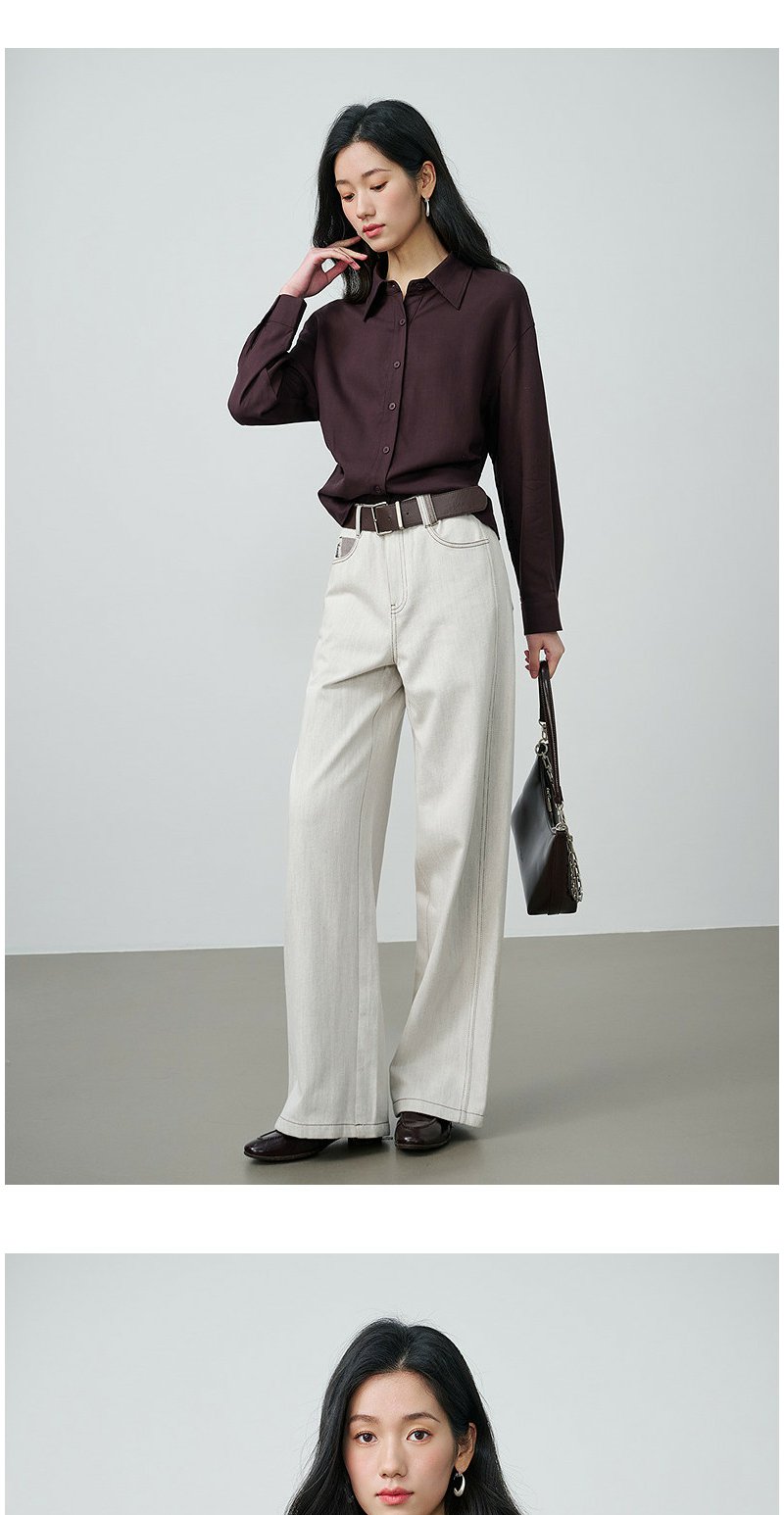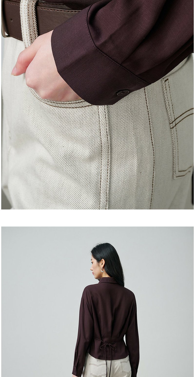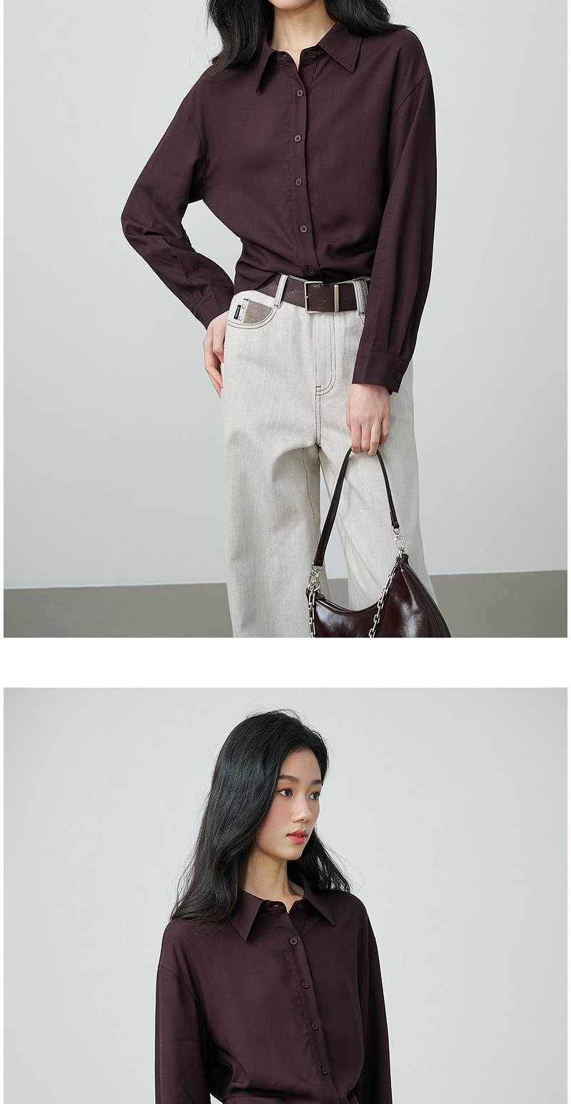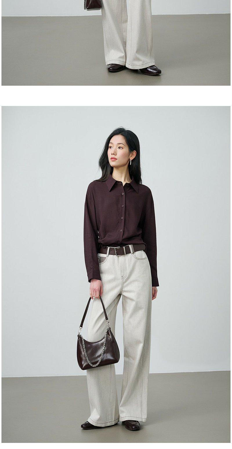 NEELLY纳俪商场同款春季新款休闲百搭翻领衬衫女复古通勤外套N26014B05503