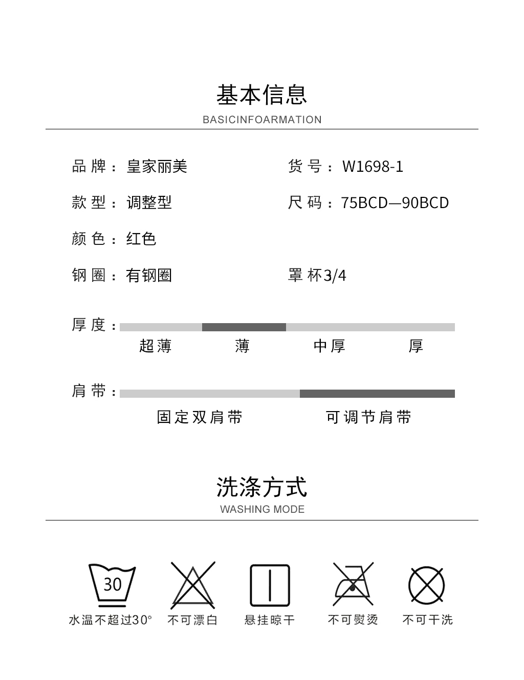 皇家丽美薄杯调整型文胸大胸显小收副乳内衣W1698-1