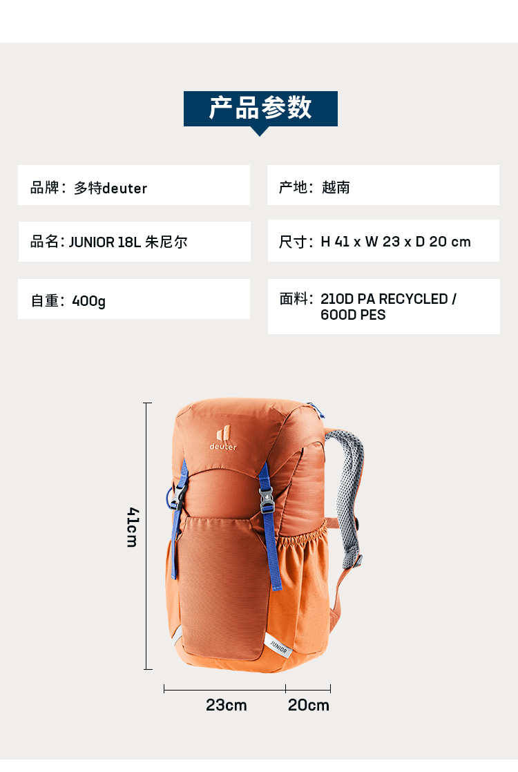 【开学季!小童书包399起!】德国多特deuter进口Junior朱尼尔双肩包轻便儿童背包护脊学生书包