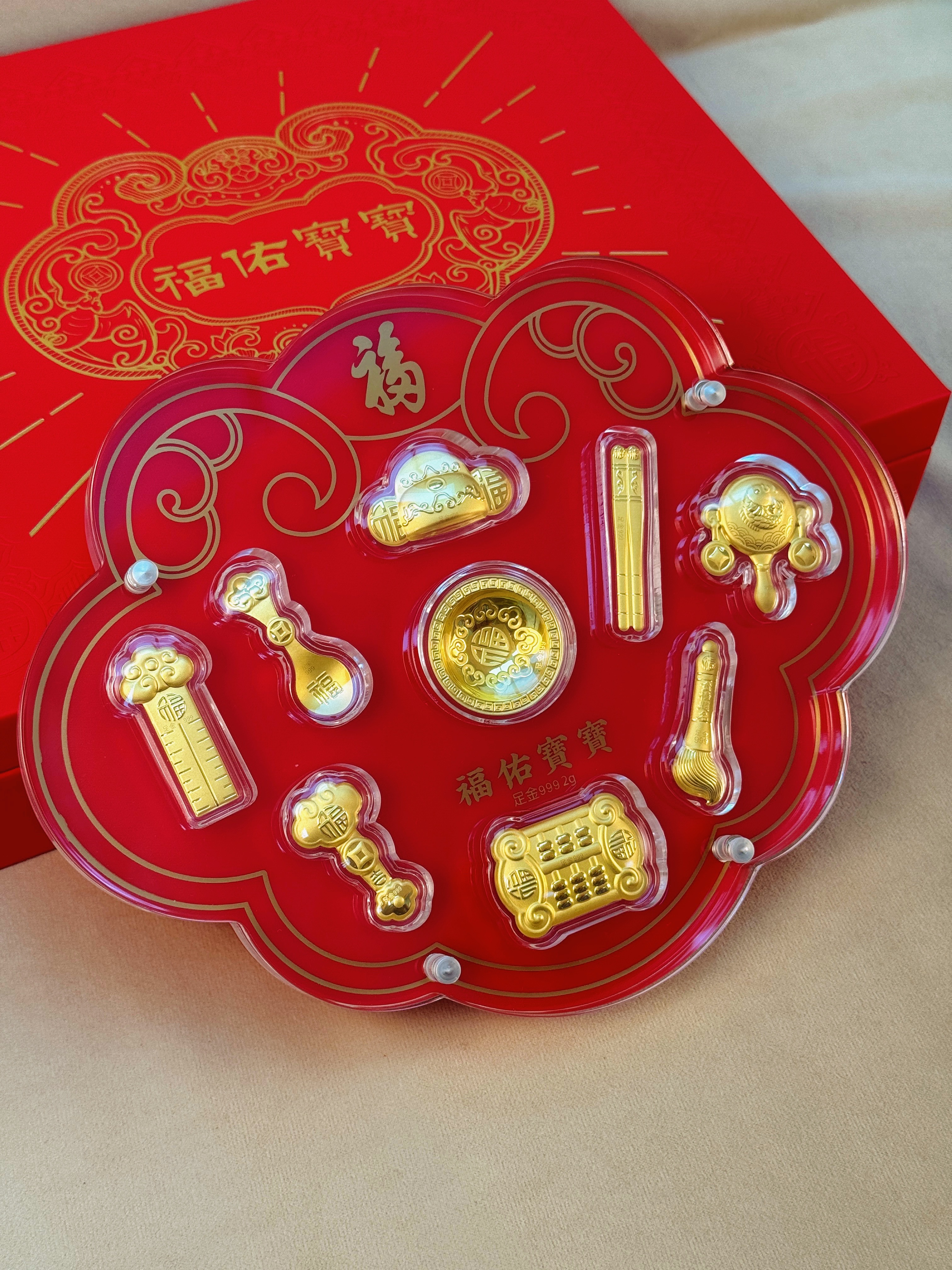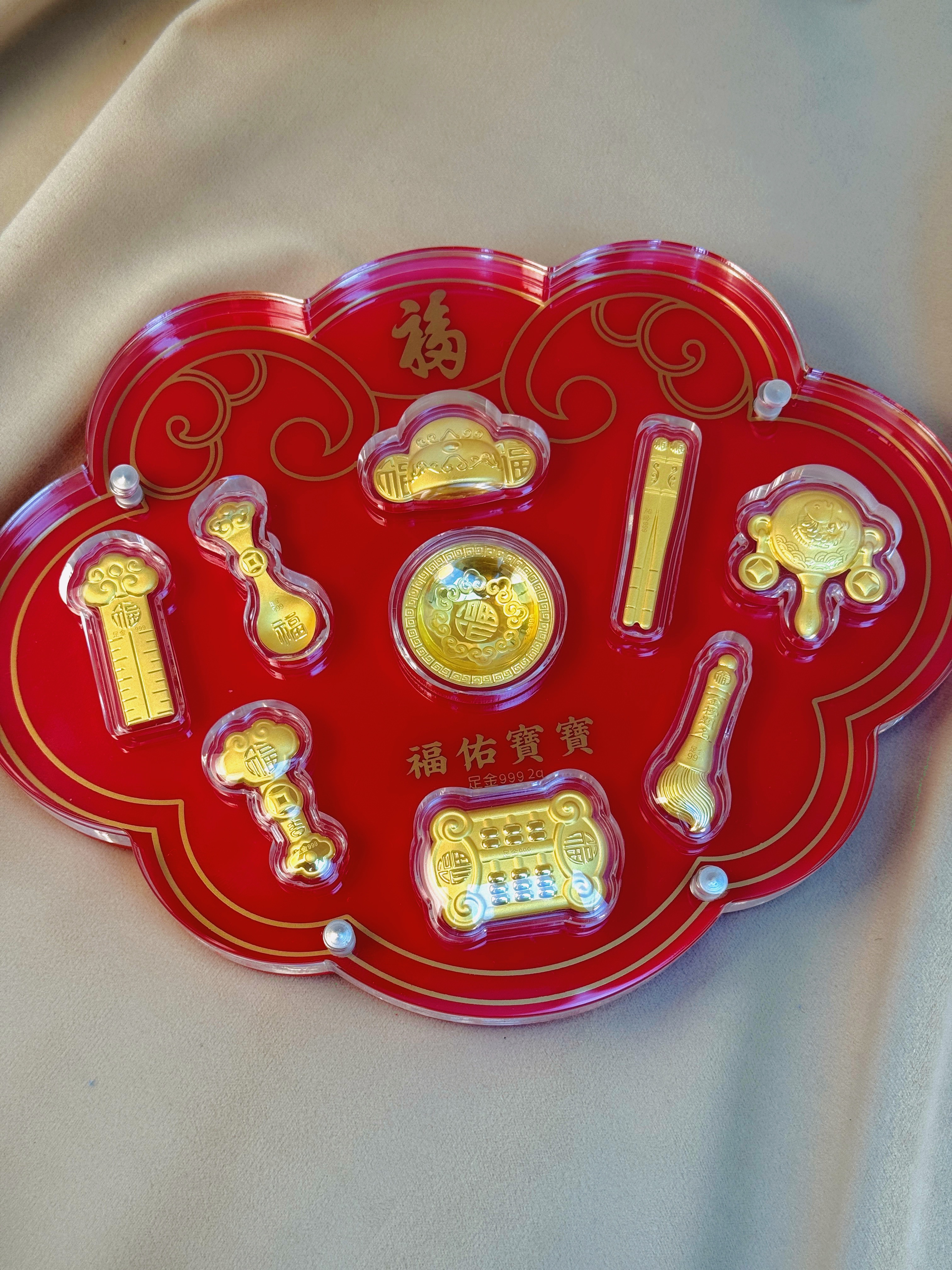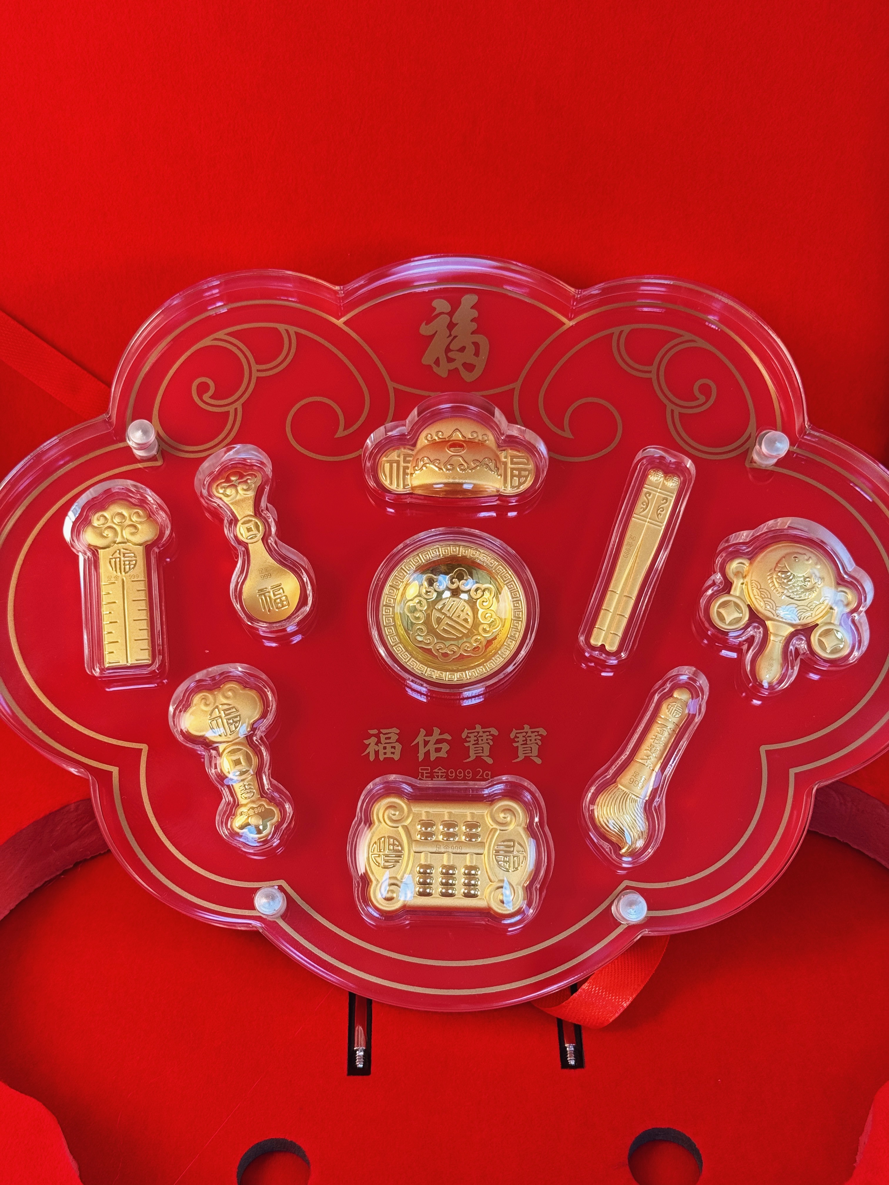 【现货】足金999福佑宝宝周岁百日八宝黄金满月送礼抓周创意礼物【金重约2g】【一物一证书】