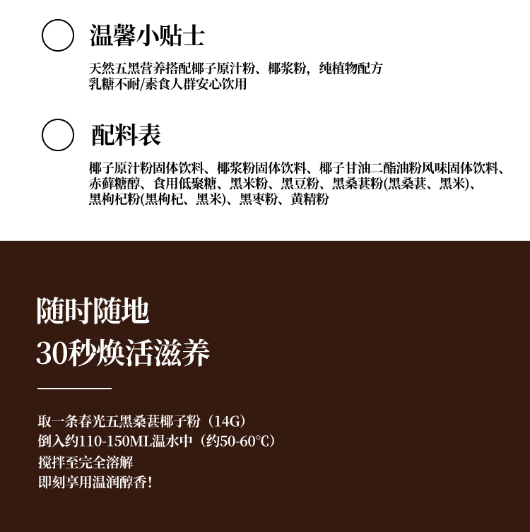 140g五黑桑葚椰子粉 零蔗糖冲调饮品食补【店长推荐 】