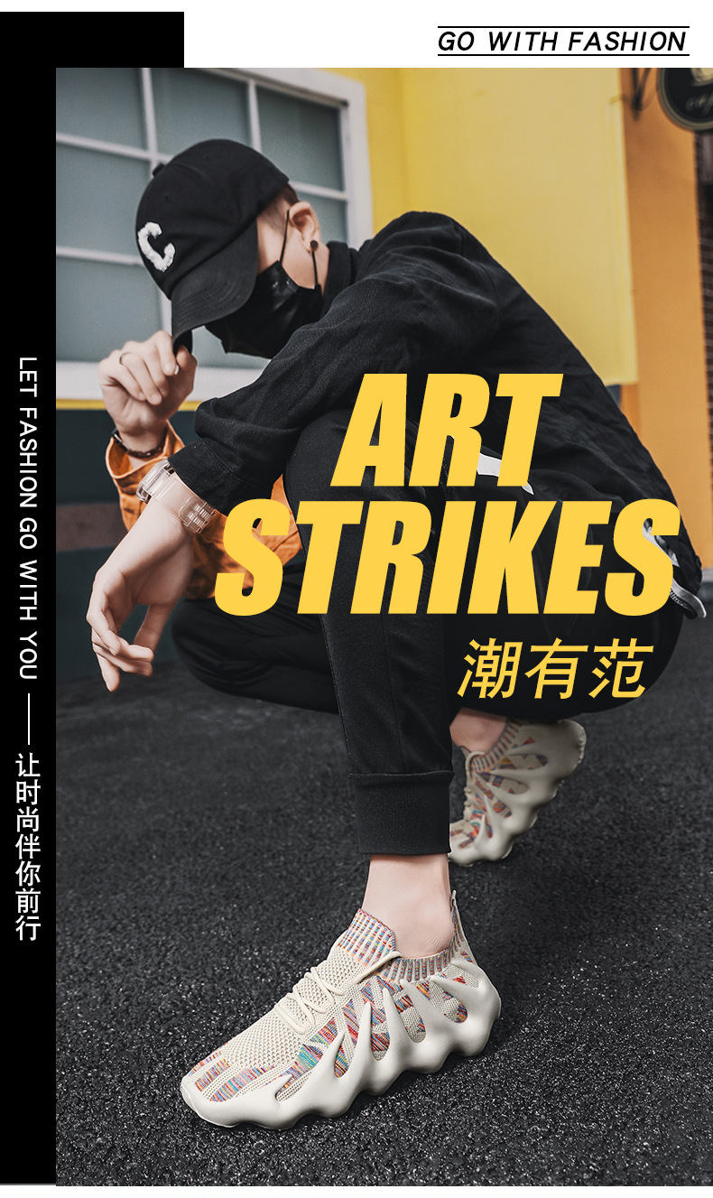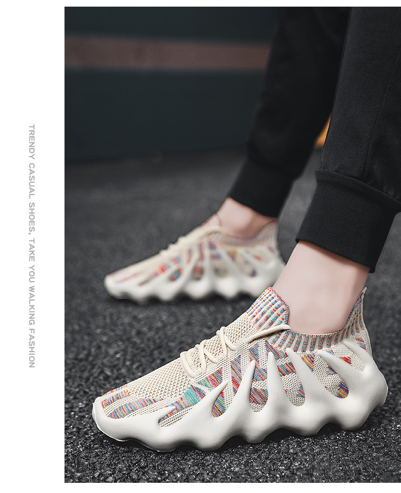 八爪鱼情侣夏季新款飞织鞋运动休闲鞋 透气网面椰子跑步潮鞋