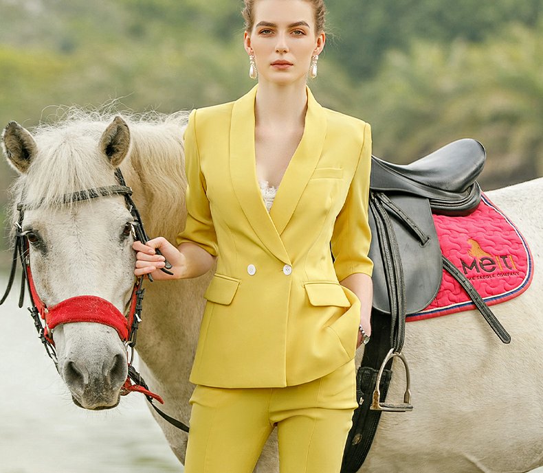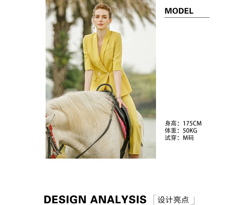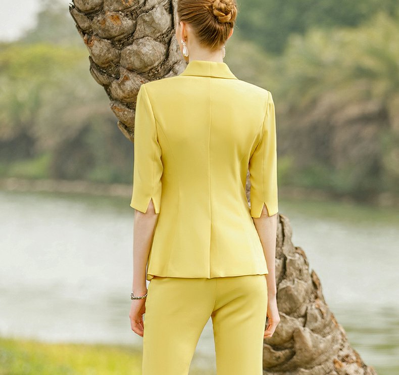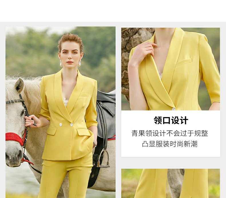 IWY/黄色气质时尚职业套装女新款五分袖薄款短袖显瘦小西装OLCP9175