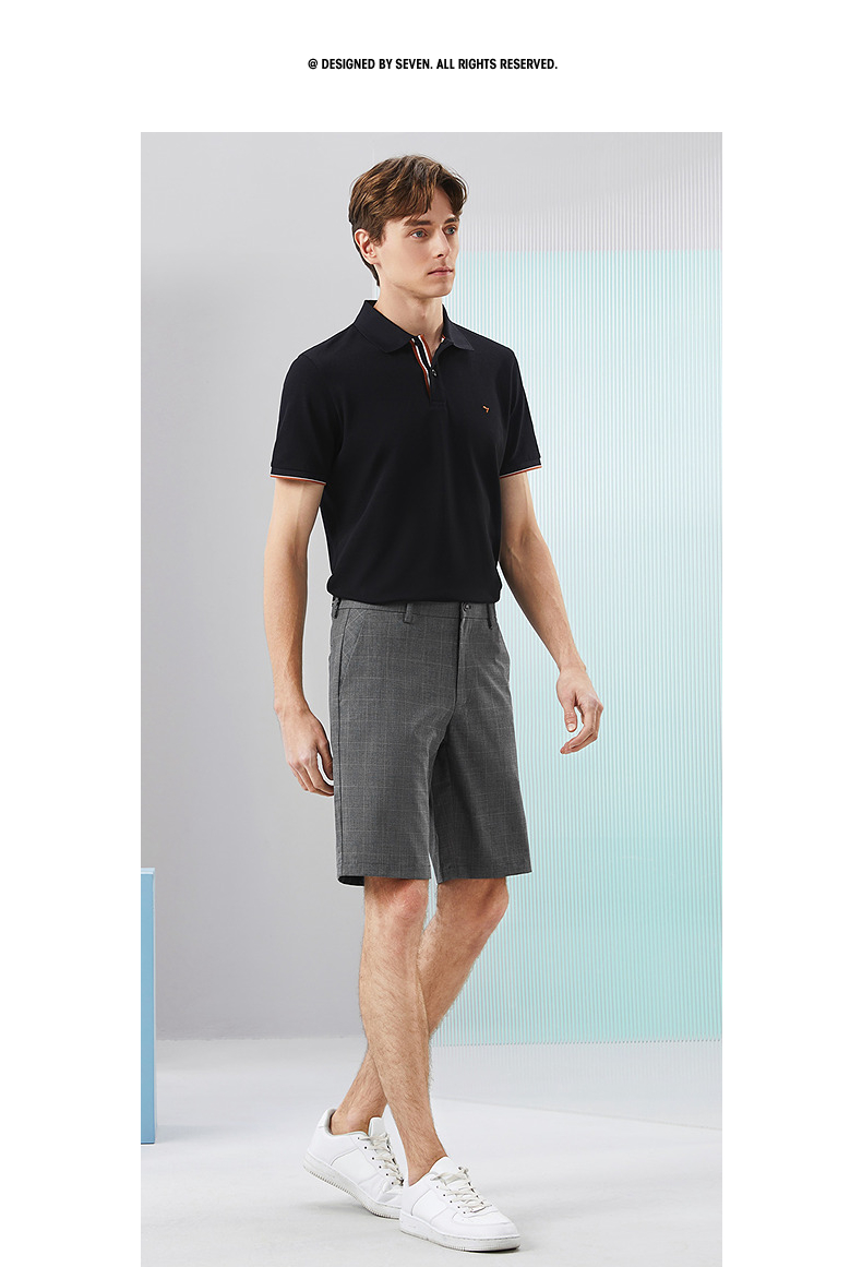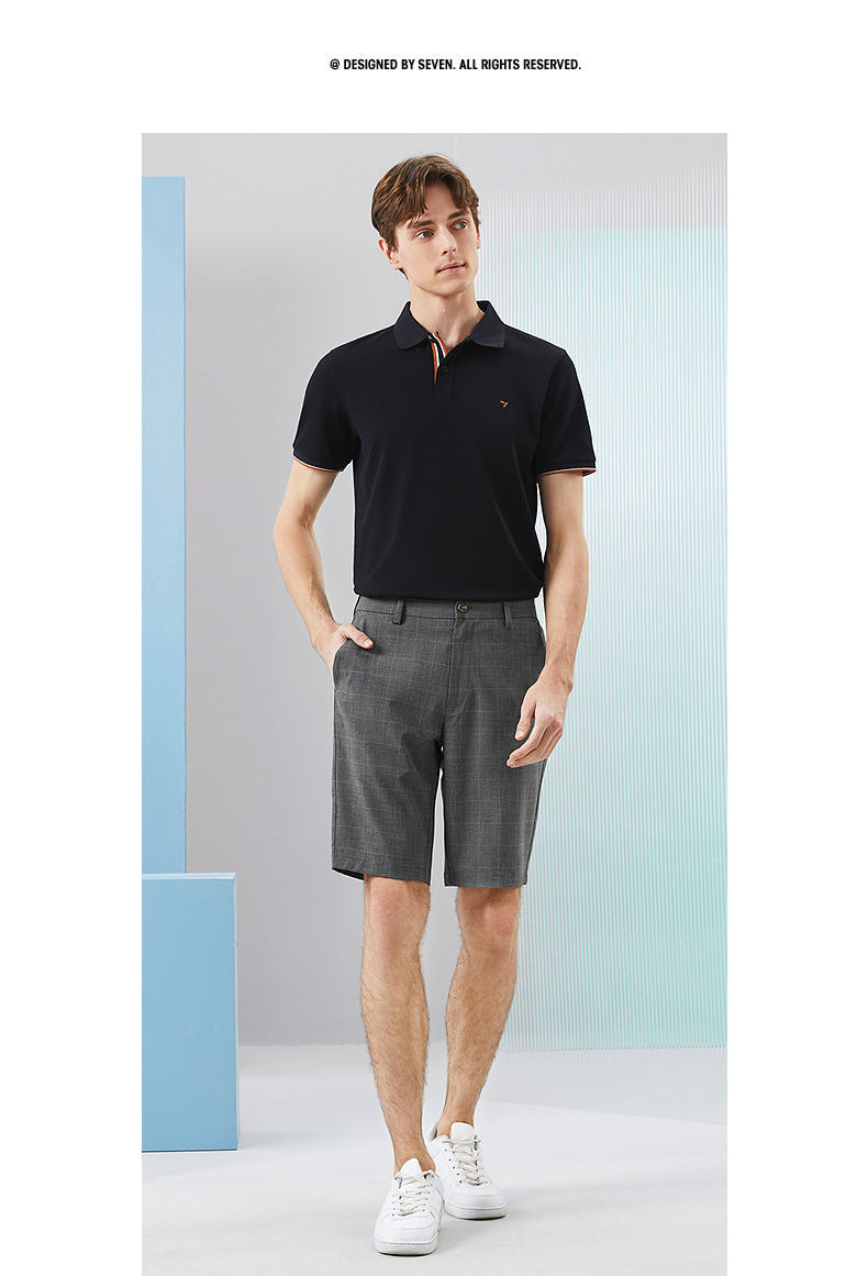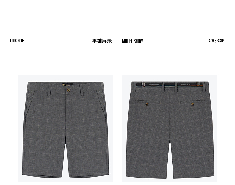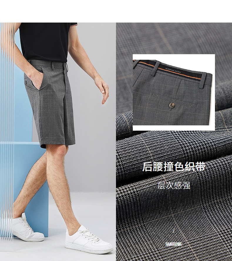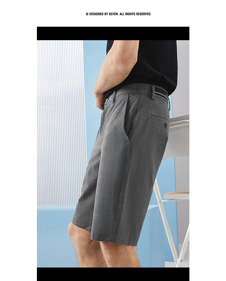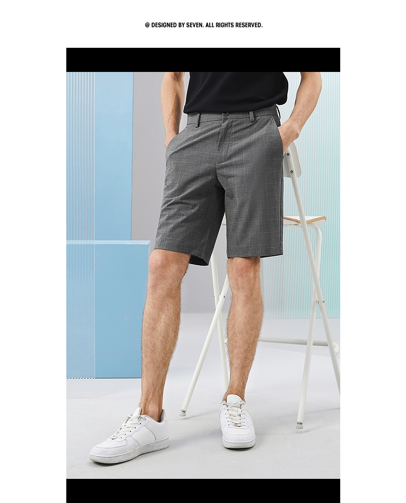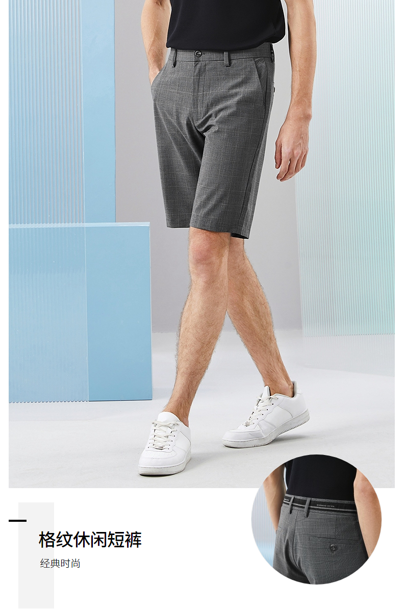 柒牌男士休闲短裤2024夏季新新款时尚潮流青年灰色格纹中腰直筒裤 126H70680