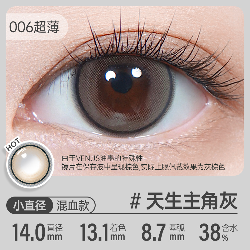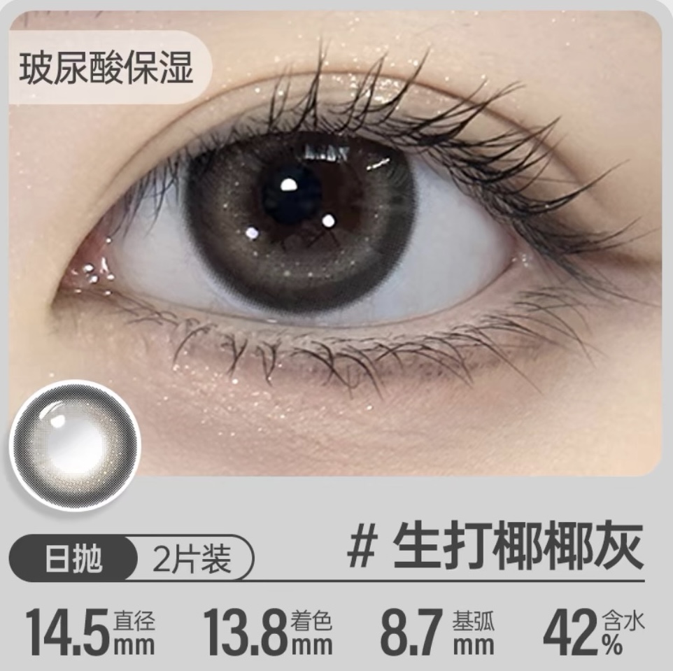 【新】巨目黑桃灰大直径近视美瞳年抛隐形眼镜0~800度