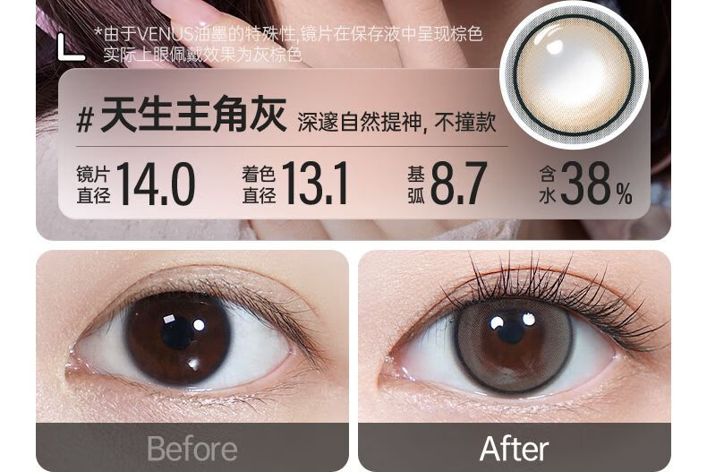 【盒装】可啦啦·新款玻璃糖棕/黑珍珠/天生主角灰/天生主角棕~日抛抛0-800度数美瞳