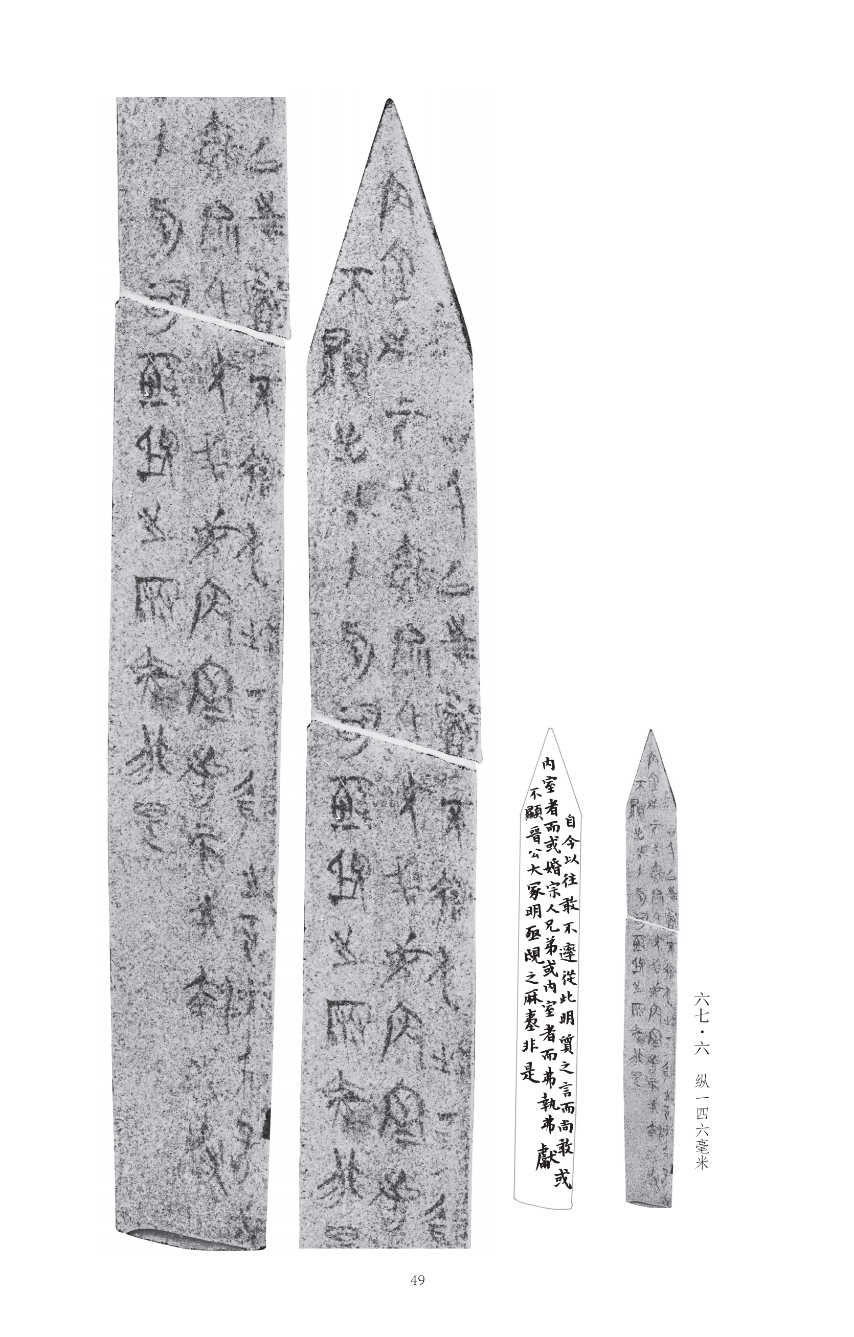 新田是晋国最后的都城,在今山西侯马。一九六五年侯马盟誓遗址发掘了埋葬有牛、羊、马等牺牲的祭祀坑三二六座,其中盟书坑四二座,出土了书写朱书盟辞玉石片一五OO余件。