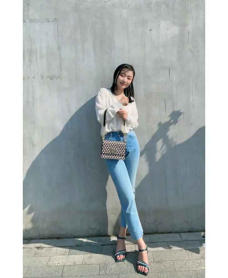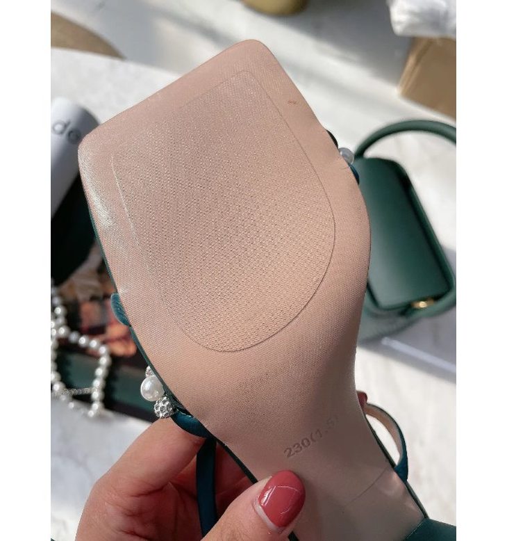 市面上有很多带珍珠的一字凉鞋,但是这款非常的特别,两条带子呈30度角左右,细节处满满的设计感。