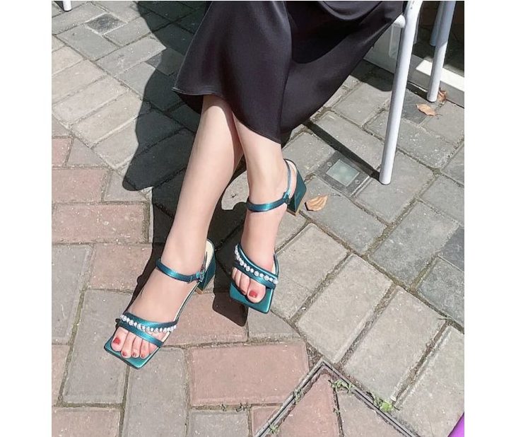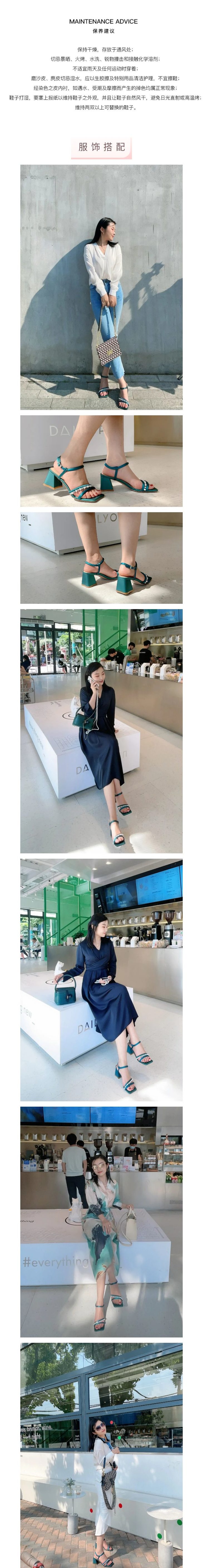 孔雀蓝的复古颜色是今年流行的款式,显得肤白,而且和我们介面的衣服非常的搭,方头的设计也是今年时尚界的宠儿。