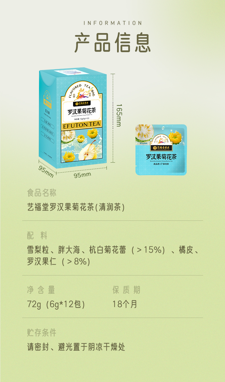 艺福堂 罗汉果菊花茶 胖大海橘皮花草茶 清润养生茶 72g/盒