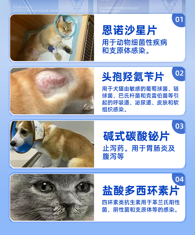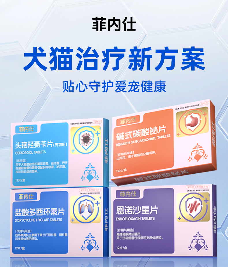 菲内仕 盐酸多西环素片\恩诺沙星\碱式碳酸泌片\头孢 宠物药品
