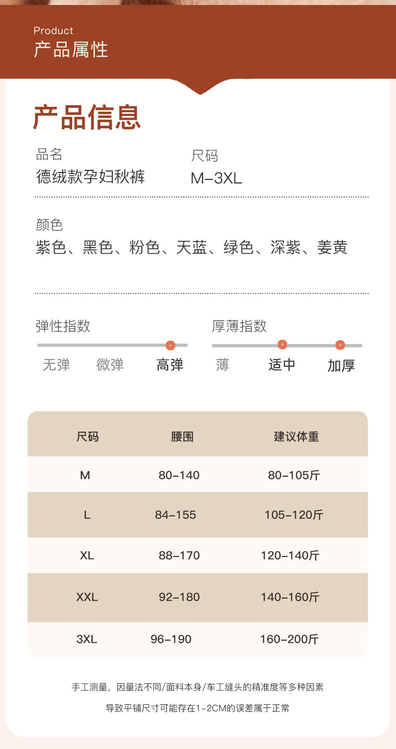 【孕妇秋裤德绒保暖裤】秋冬季舒适月子裤 修身高腰不勒肚托腹打底裤