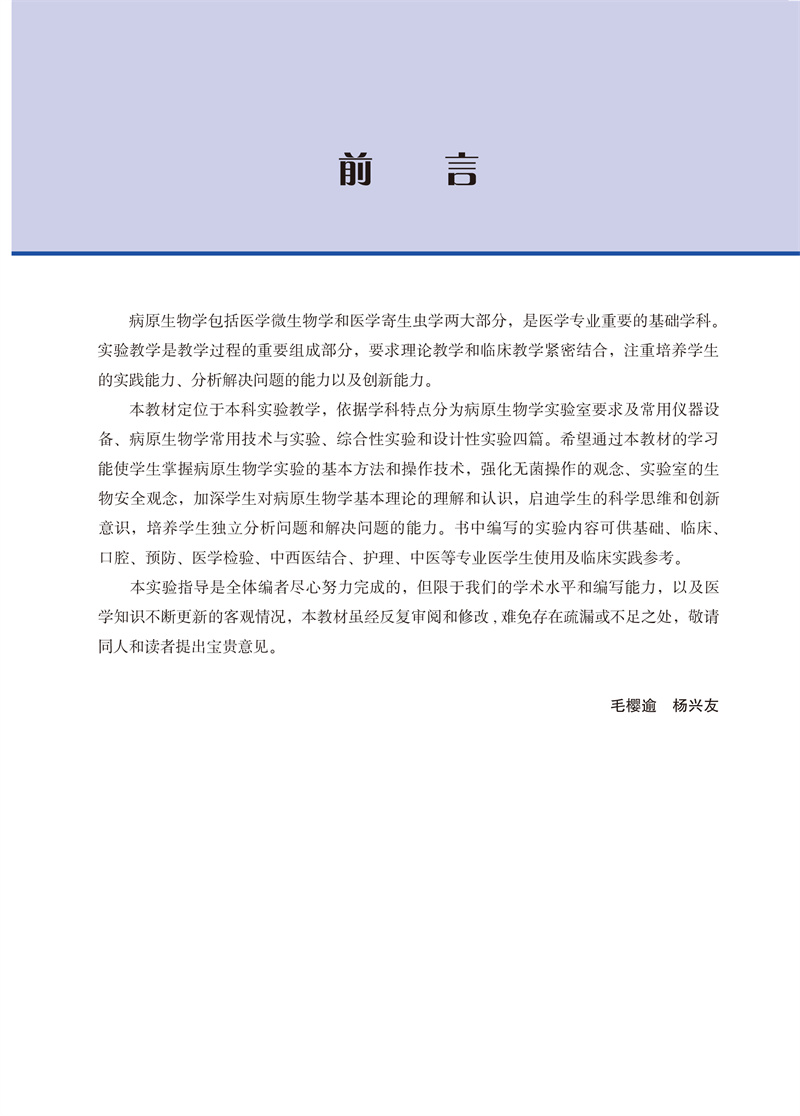 病原生物学实验指导 高等医学院校实验教材 毛樱逾等 供基础临床口腔预防护理中医中西医结合医学检验等专业用北京大学医学出版社