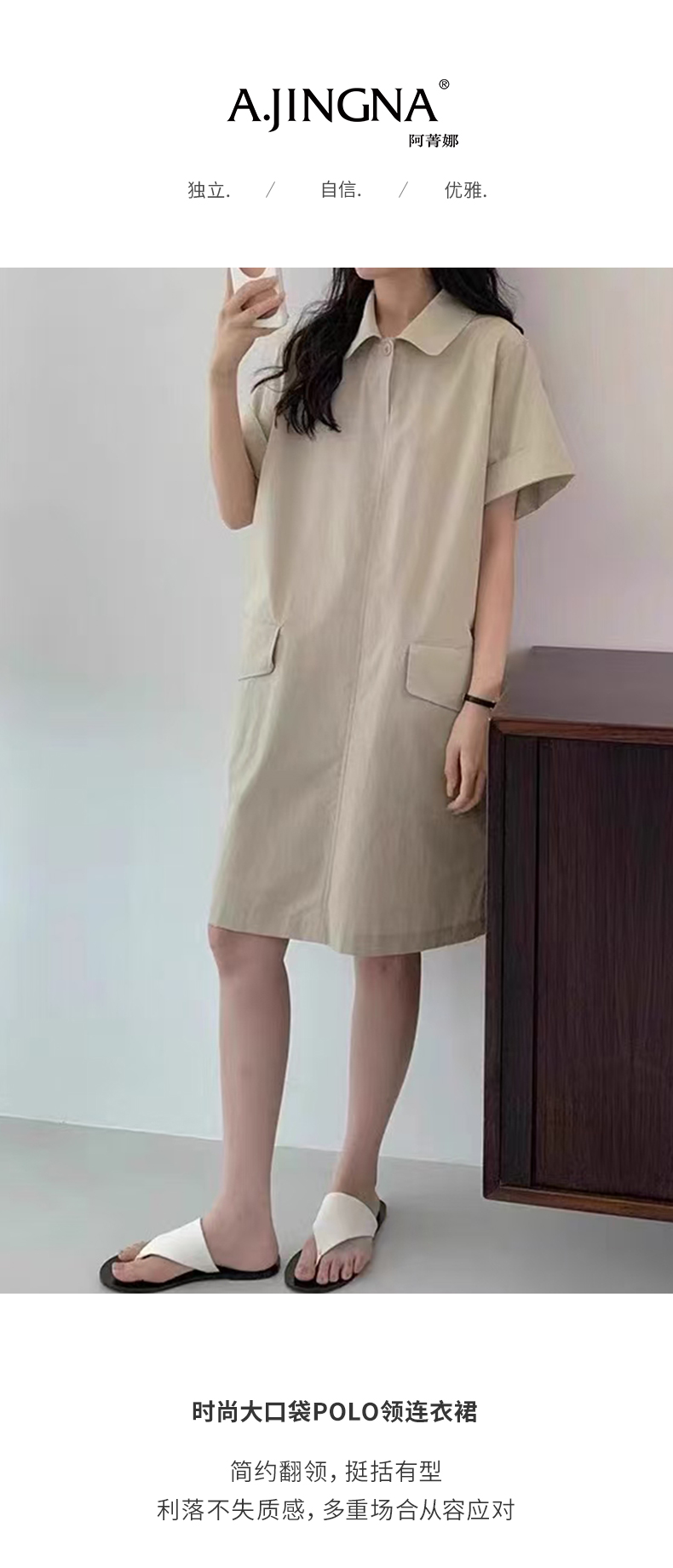 【挺括有型】阿菁娜时尚大口袋POLO领连衣裙F30X212090