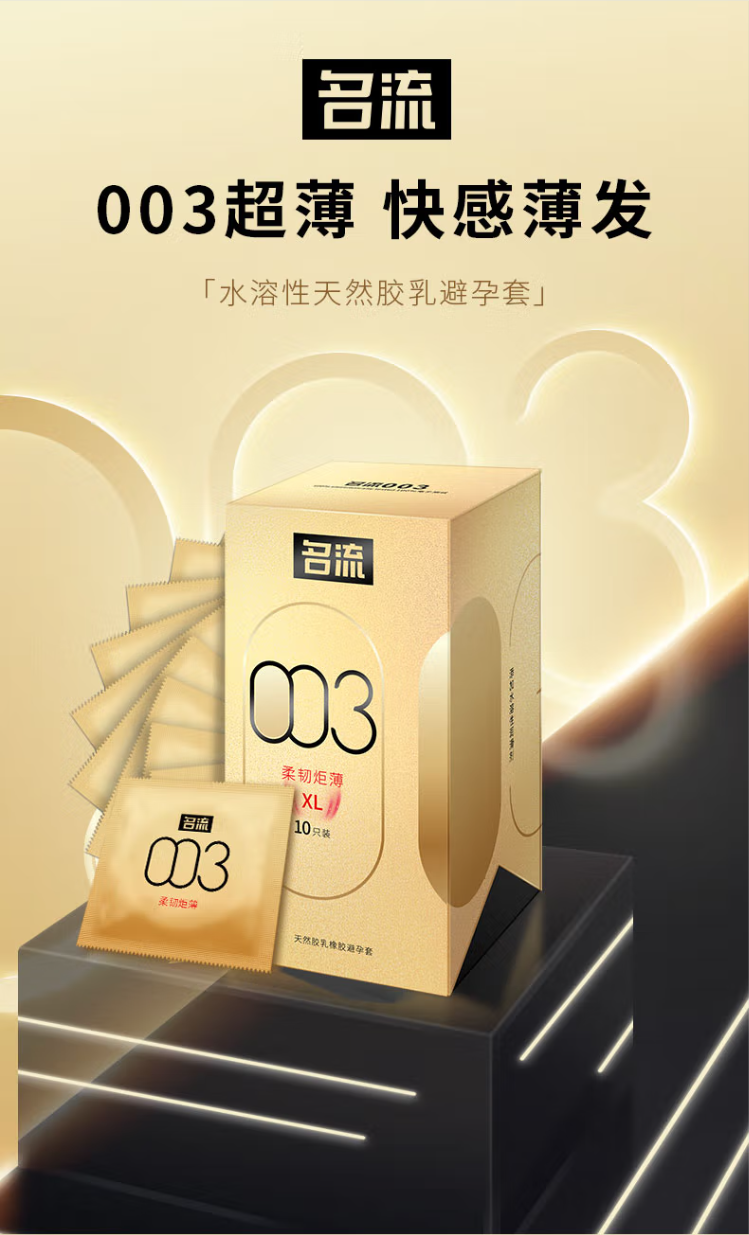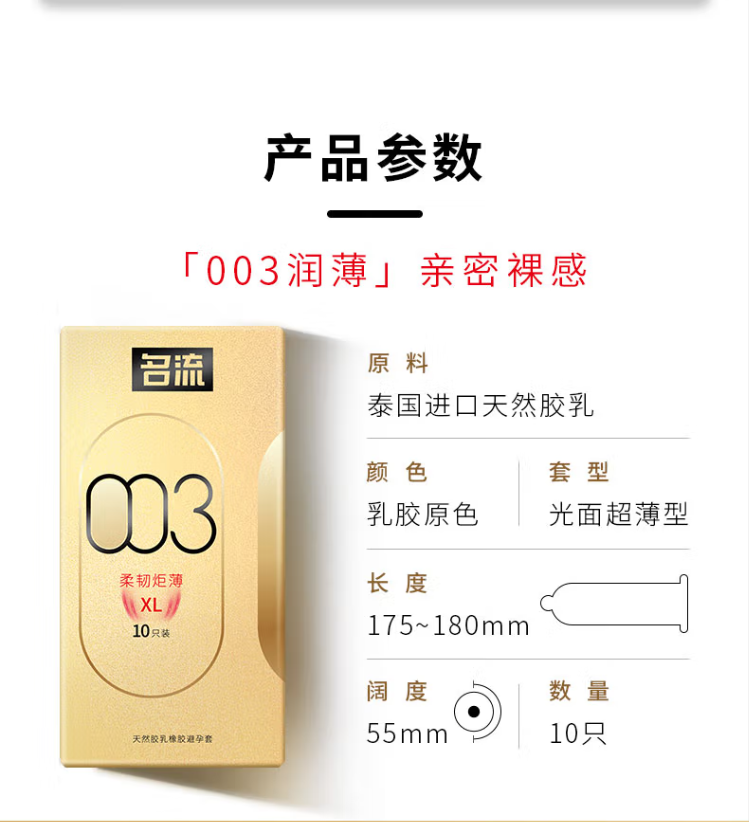 名流大号玻尿酸避孕套光面超薄003安全套套男用55mm成人用品柔韧30只装