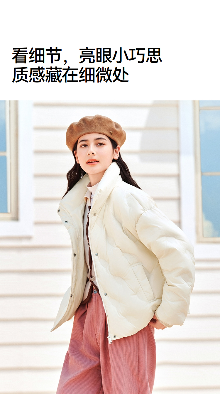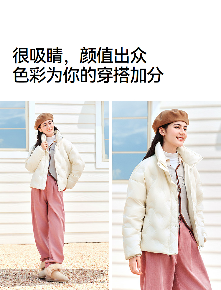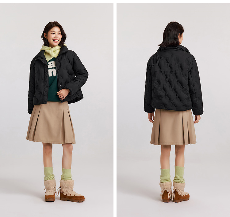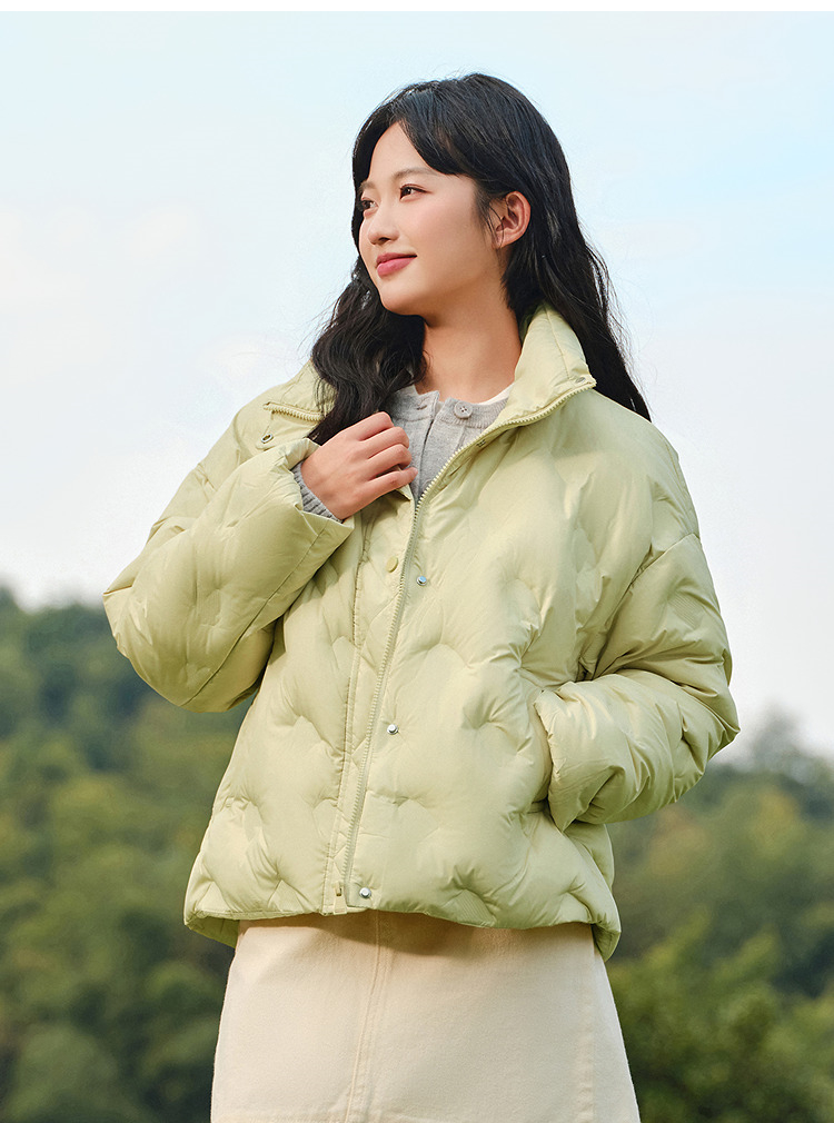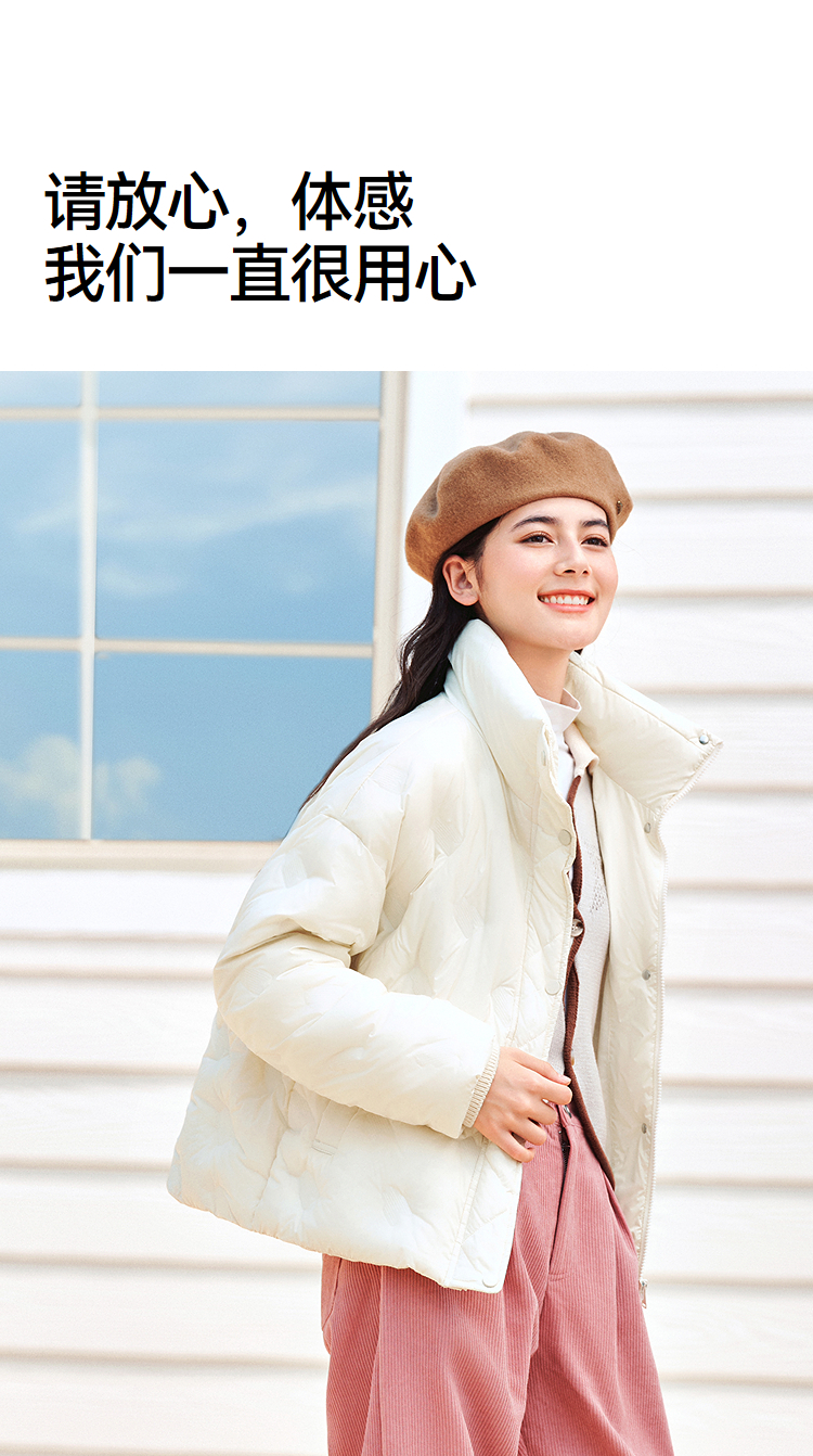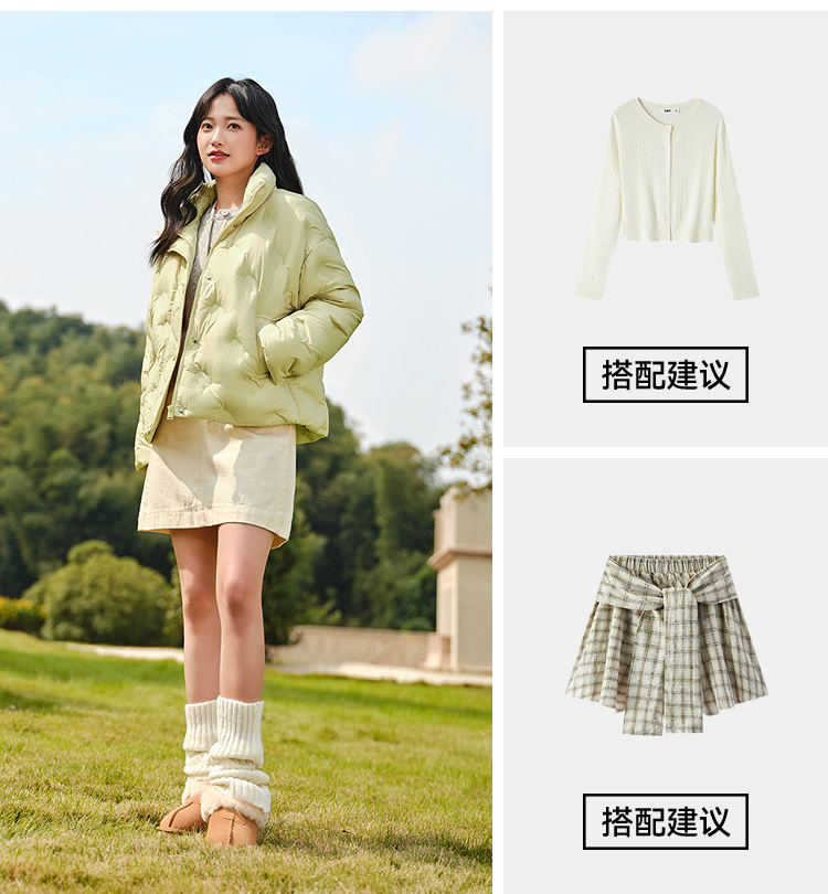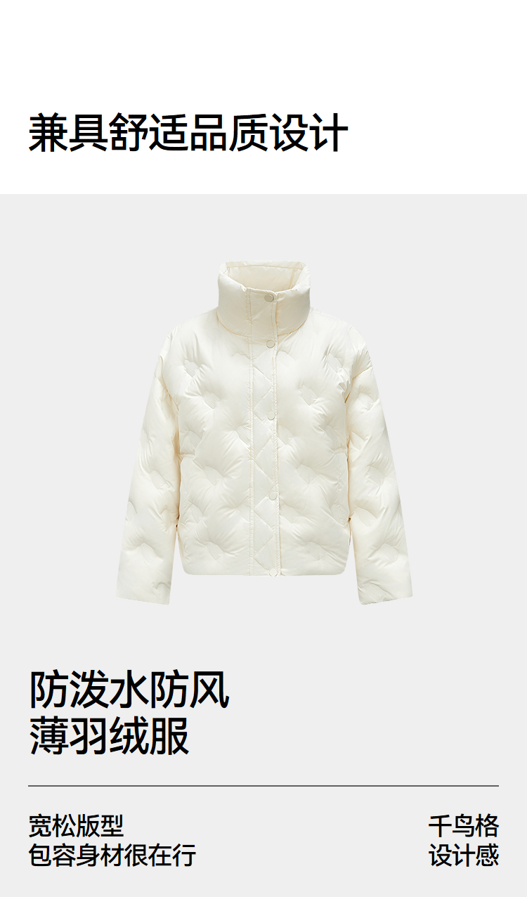 森马羽绒服女冬季薄款90绒子防泼水防风宽松千鸟格立领设计感外套
