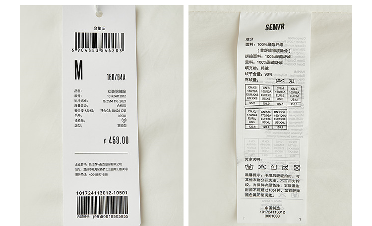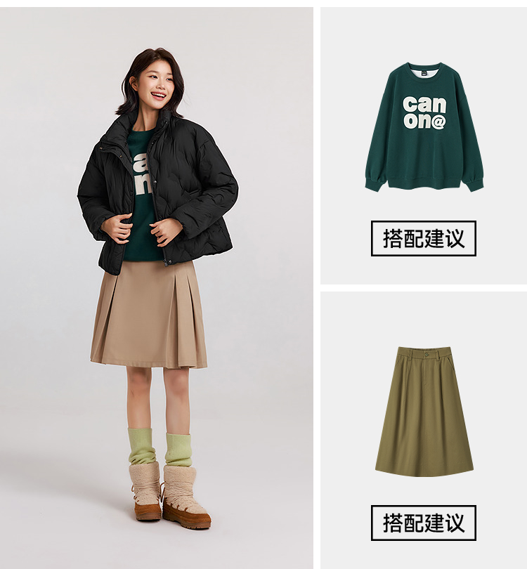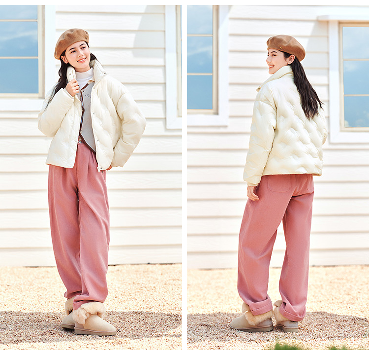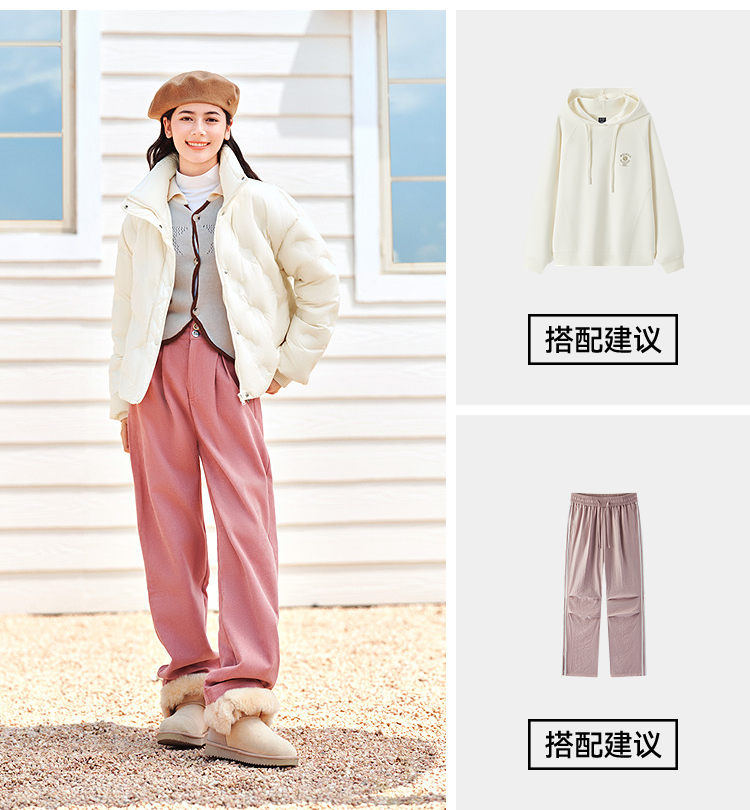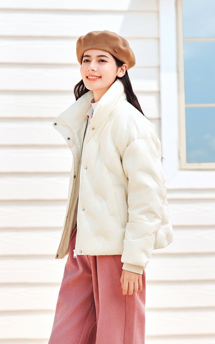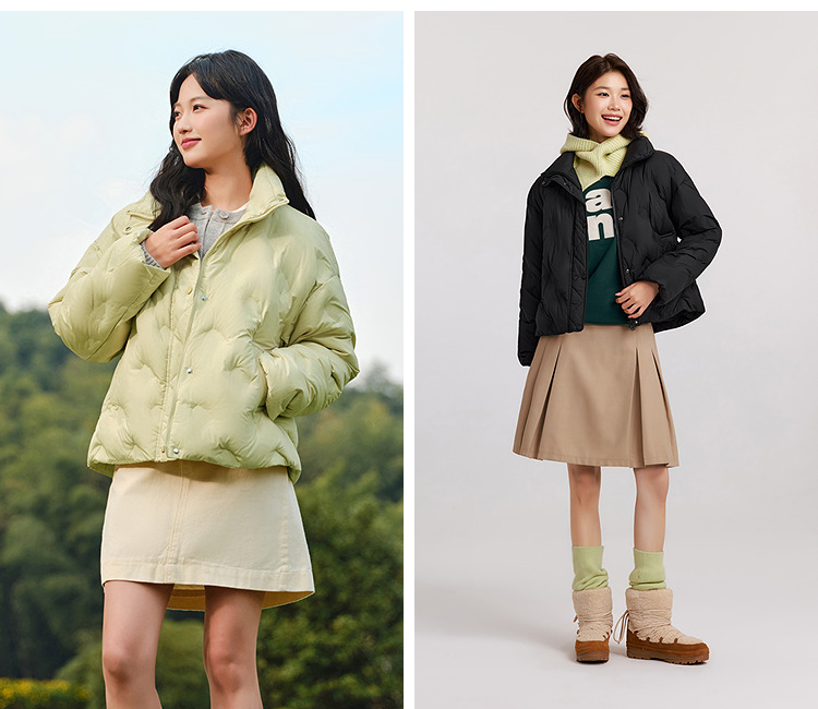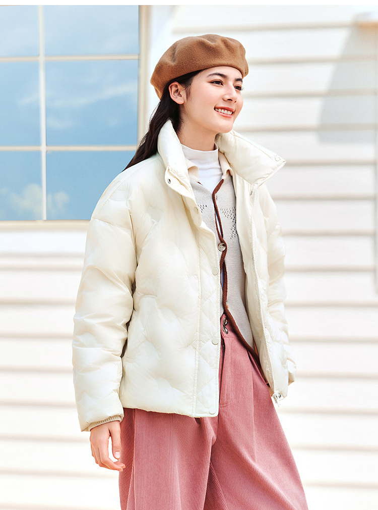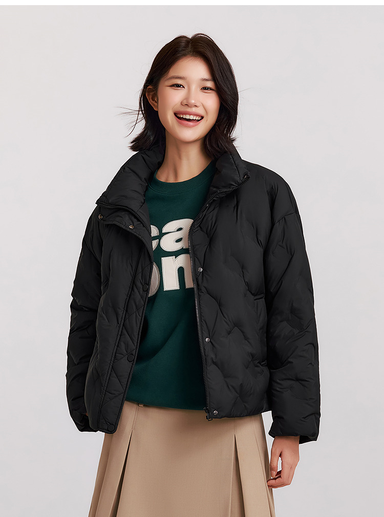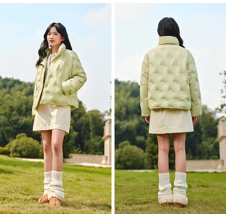 森马羽绒服女冬季薄款90绒子防泼水防风宽松千鸟格立领设计感外套
