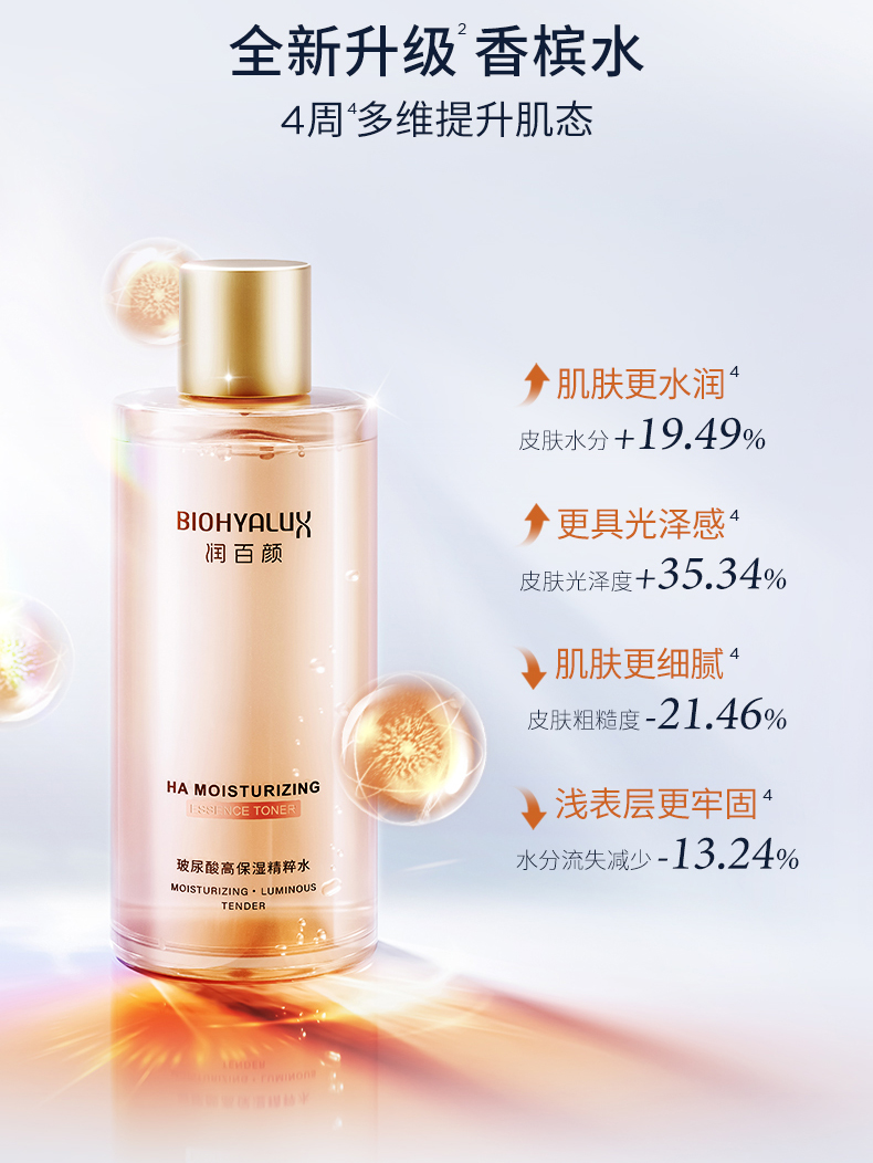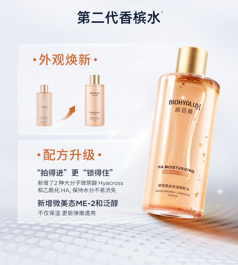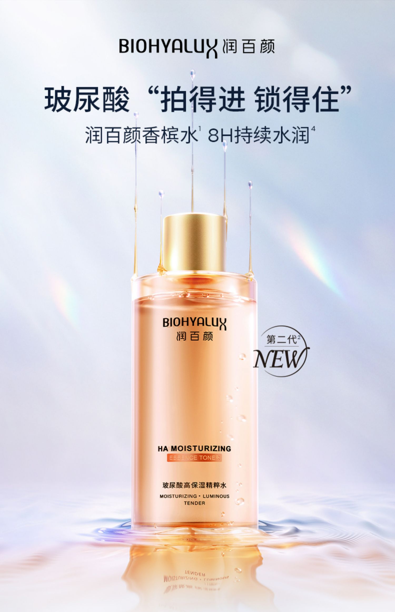 润百颜高保湿精粹水玻尿酸香槟水300ml 二裂酵母烟酰胺爽肤水补水保湿 修护紧致提亮肤色