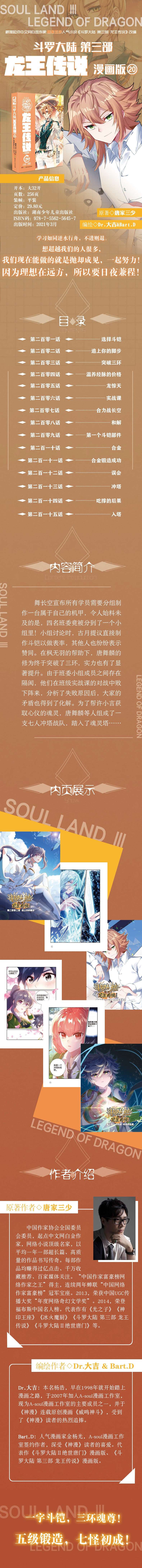 Dr.大吉& Bart.D,国内知名漫画家组合,A-soul漫画工作室成员,《神漫》超人气作者。他们超高的绘画技术以及充满想象力的创作,为他们赢得了众多读者的支持。其作品不仅制作精良,更呈现出多元化画风,无论是唯美柔和的画面,还是宏伟大气的场景,他们都能轻松驾驭。代表作《斗罗大陆第四部终极斗罗漫画版》。