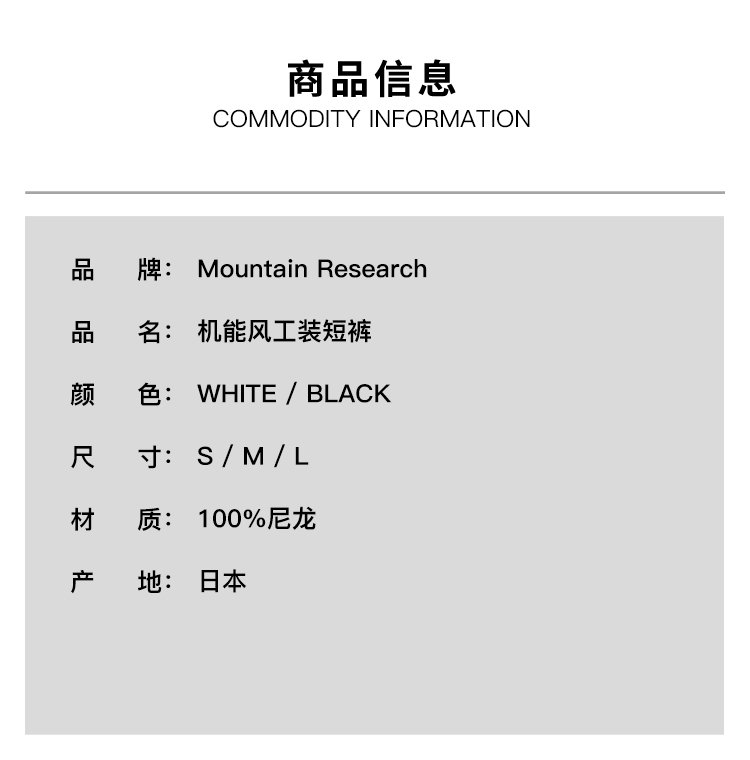 Mountain Research PCU Shorts 户外机能风工装短裤