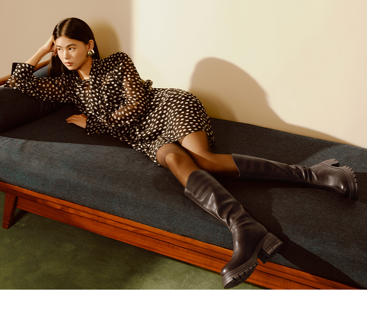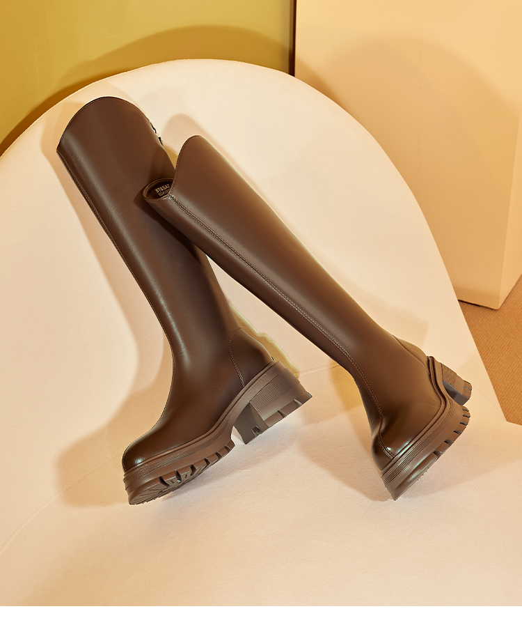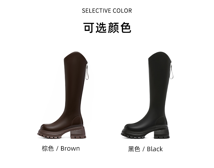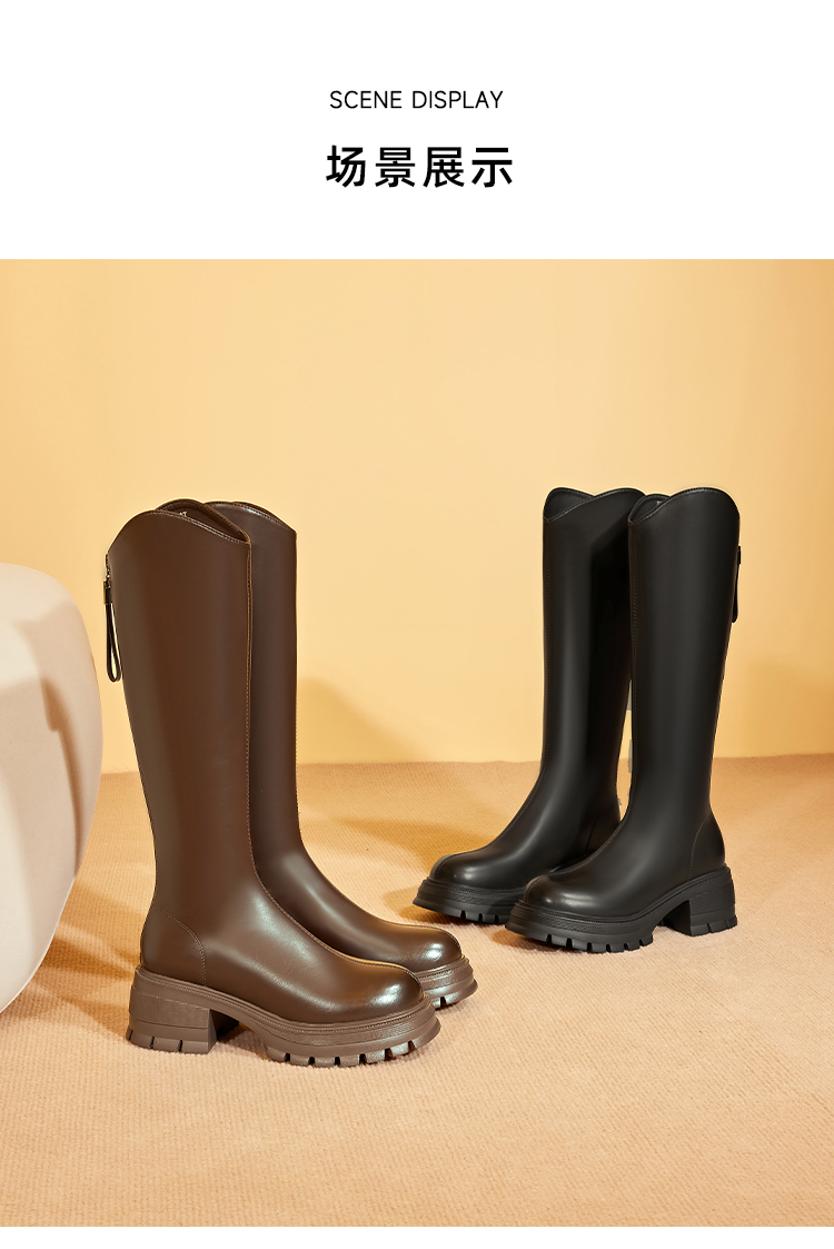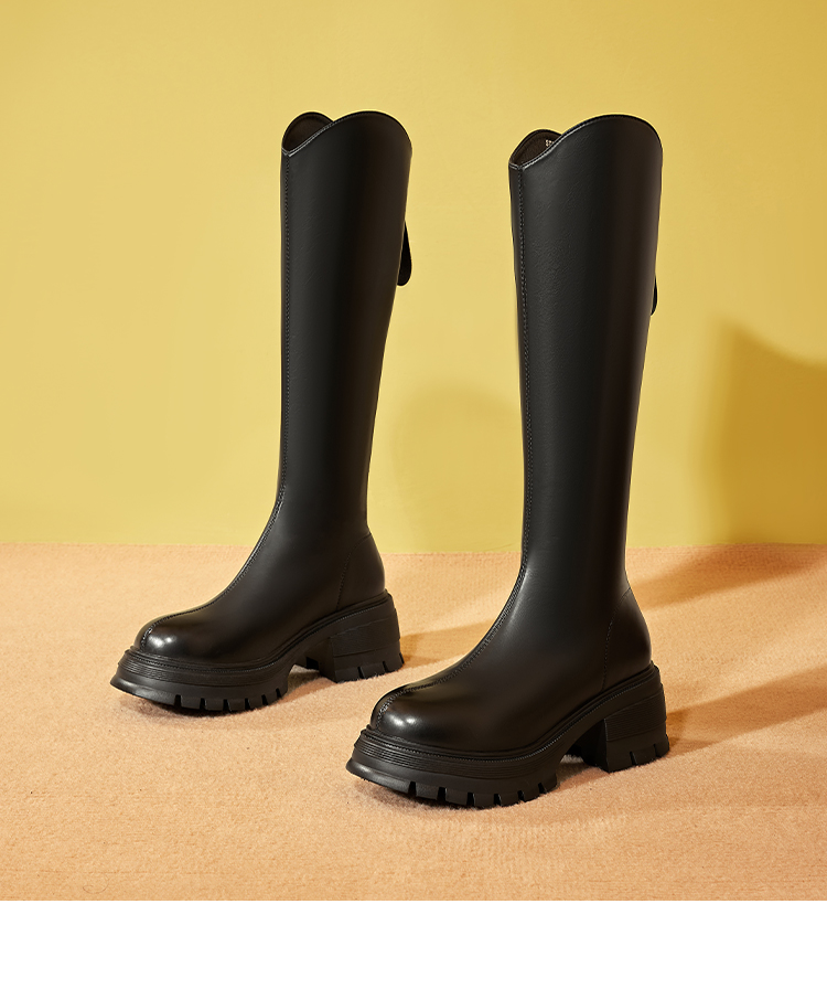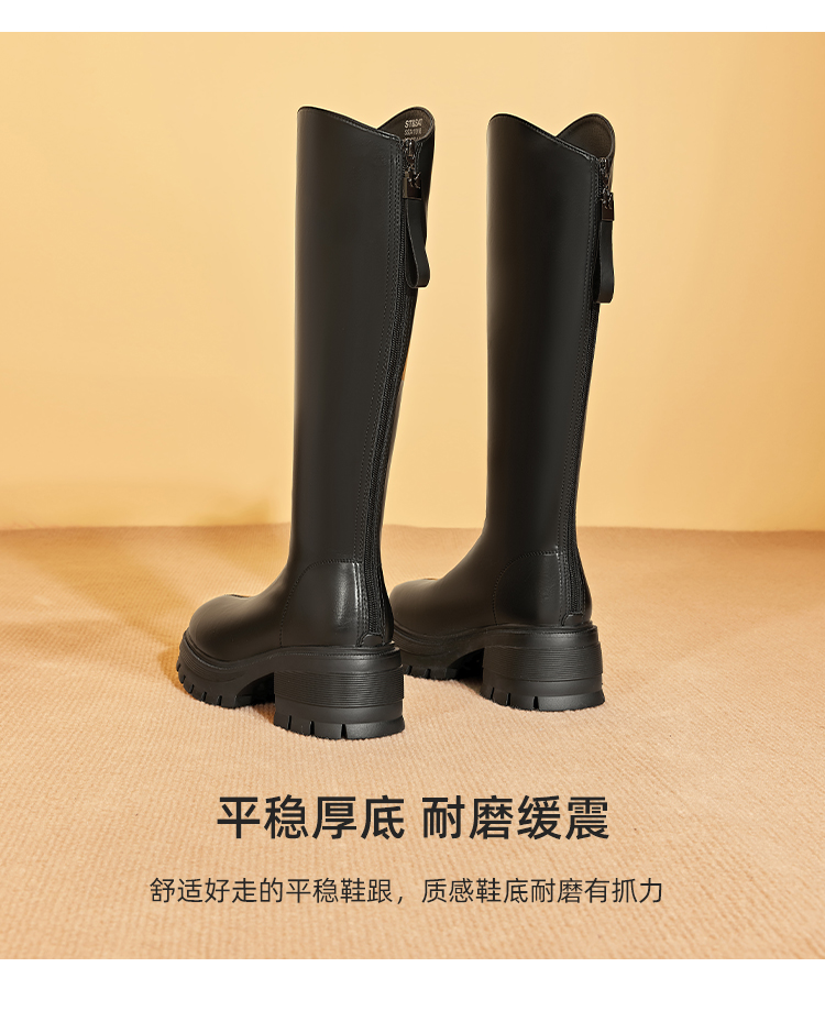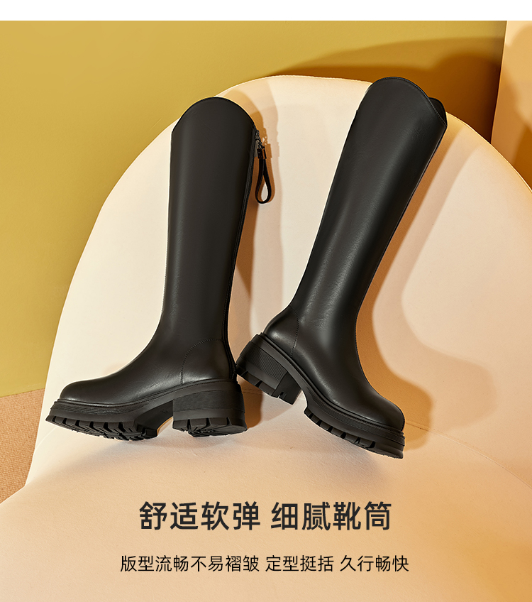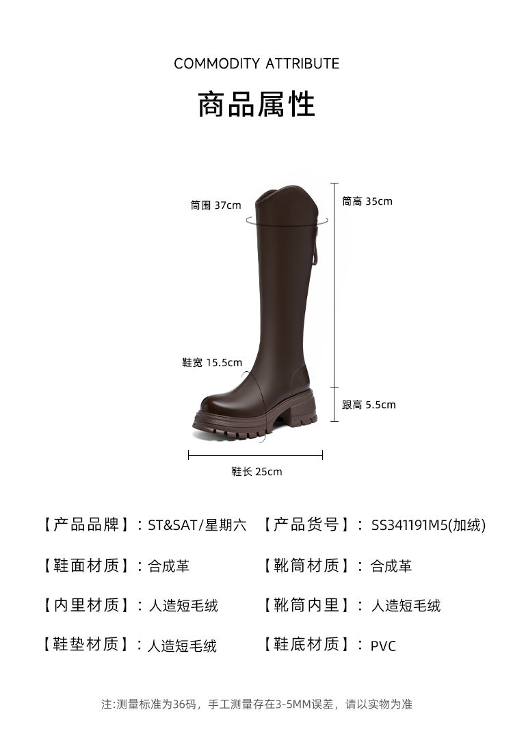 星期六英伦风V口厚底加绒骑士靴SS341191M5