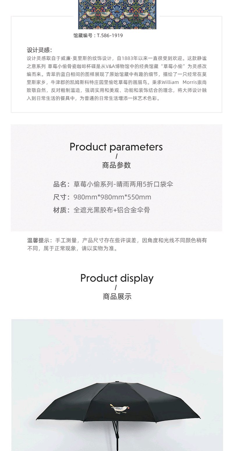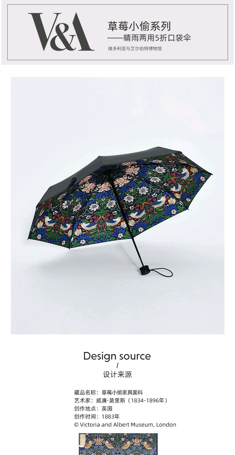【赠品勿拍】V&A博物馆草莓小偷系列晴雨两用5折口袋伞