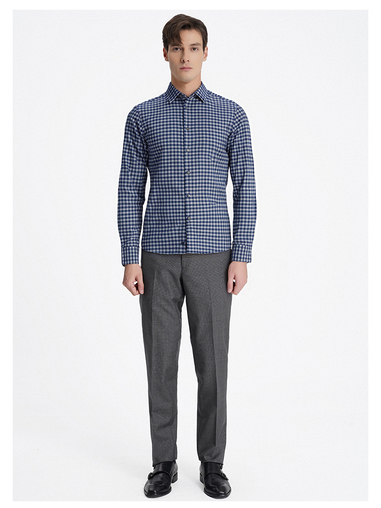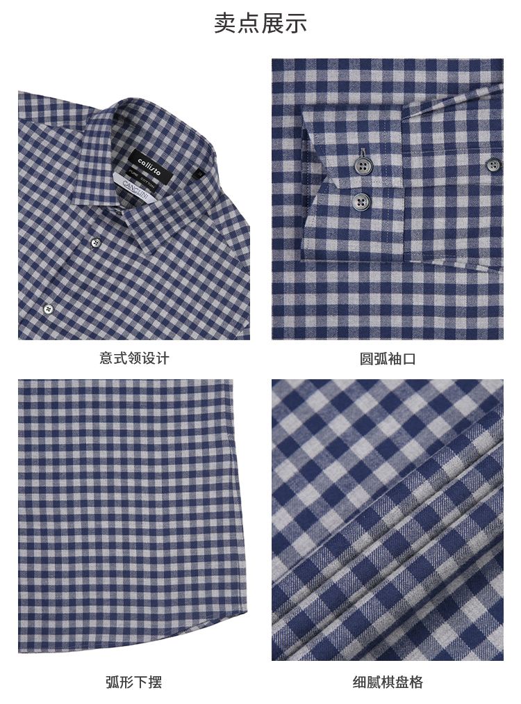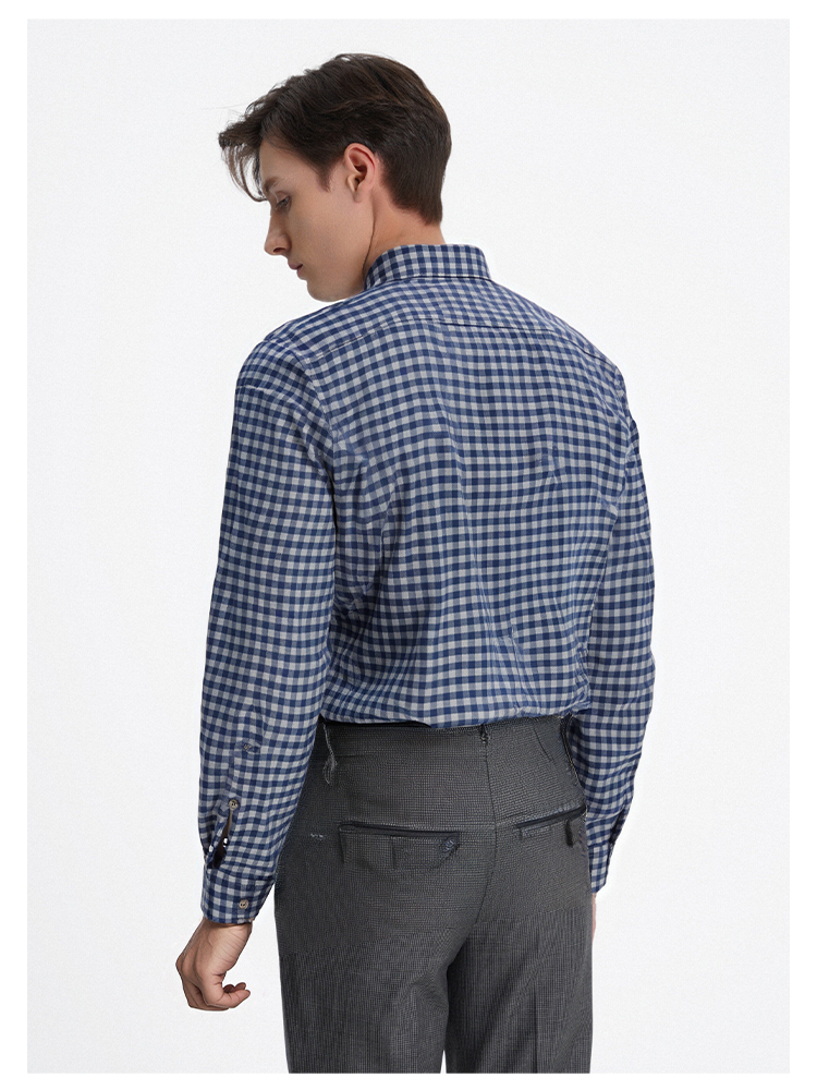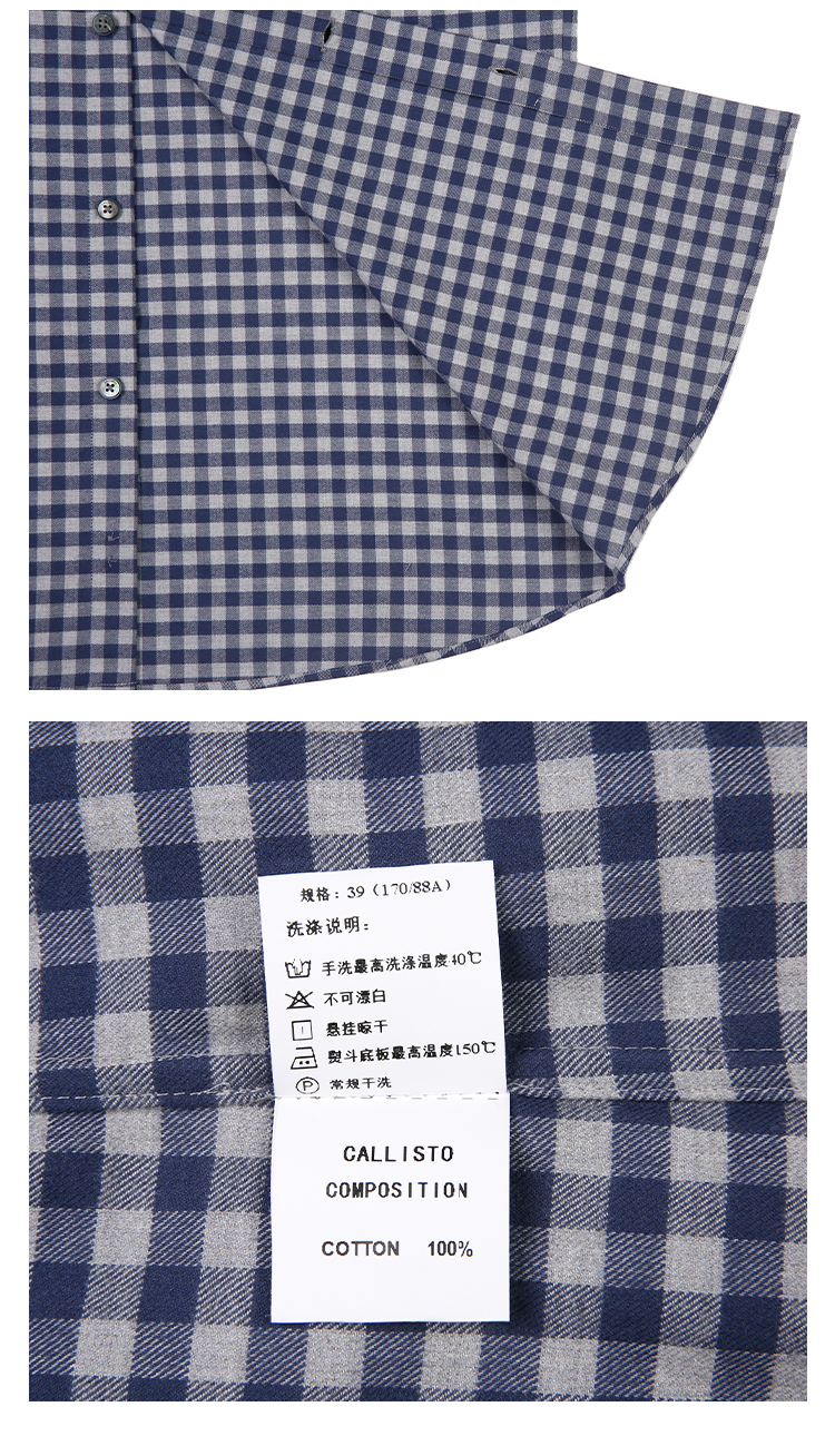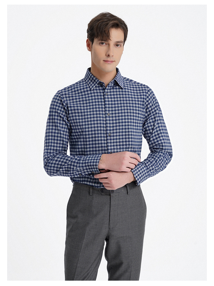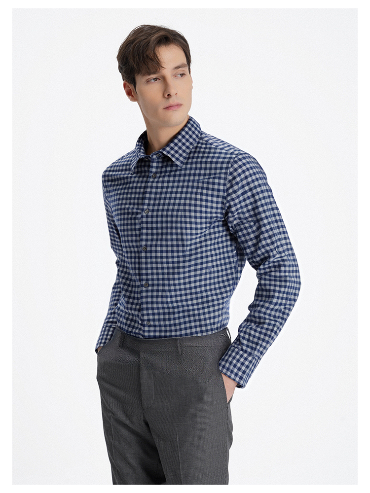 callisto蓝色全棉羊毛三色交织棋盘格长袖衬衫 FSSTL240C