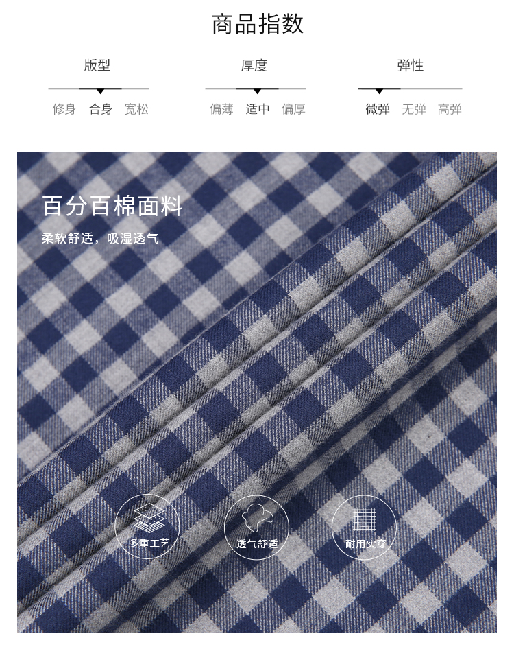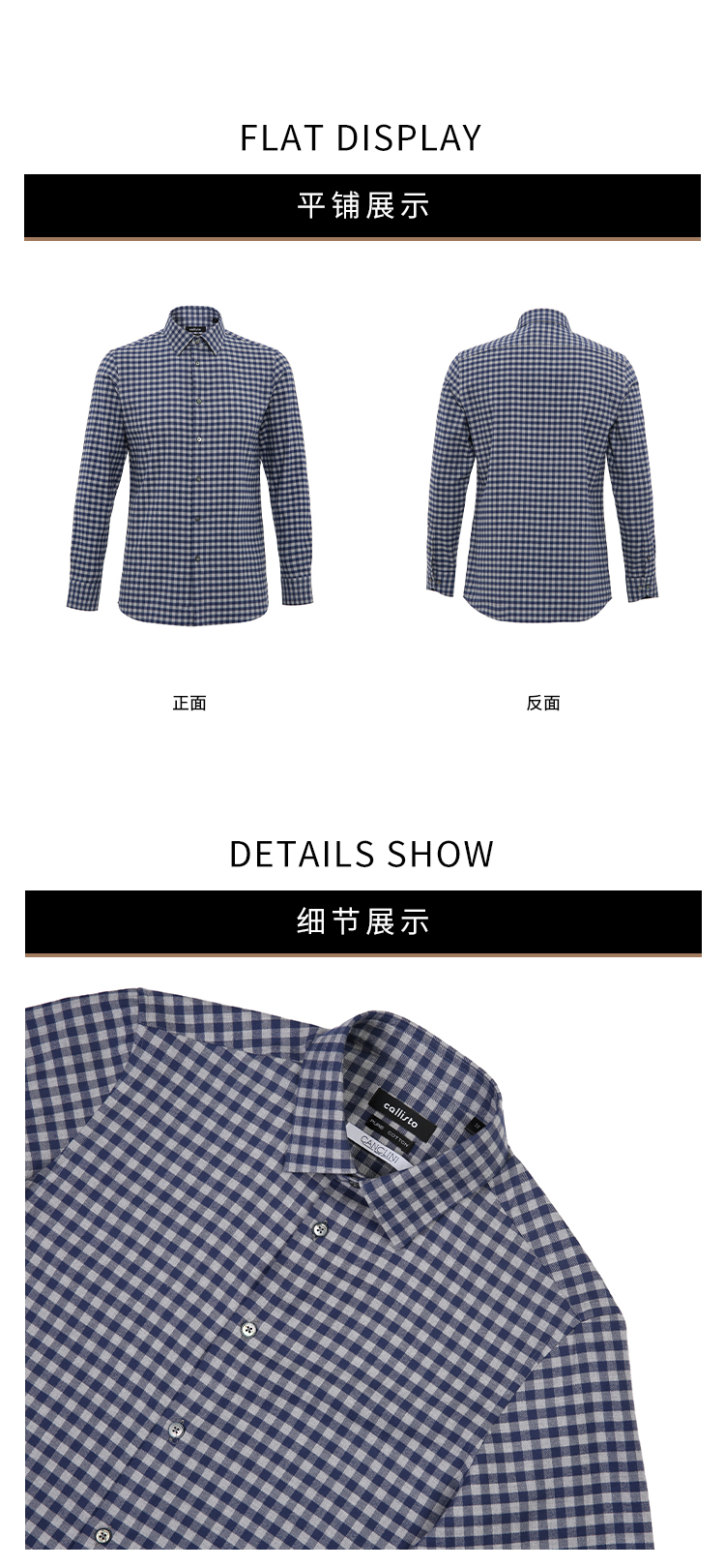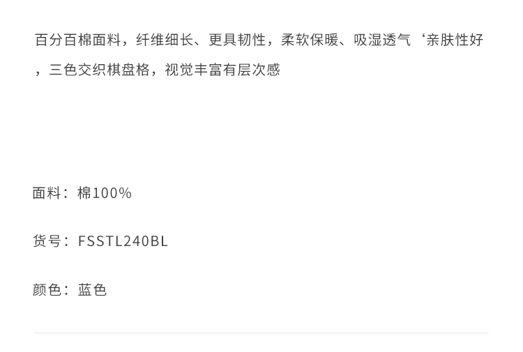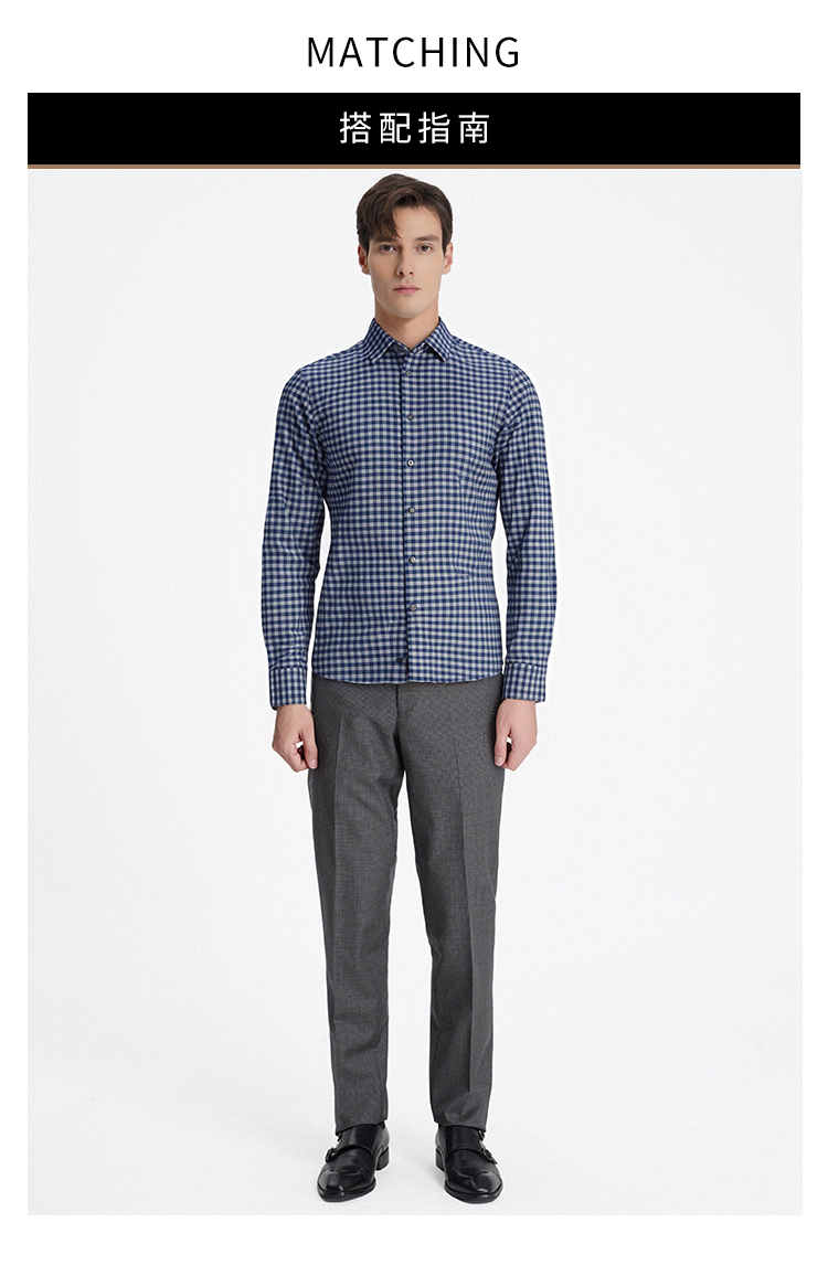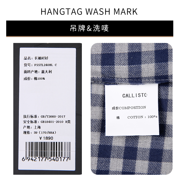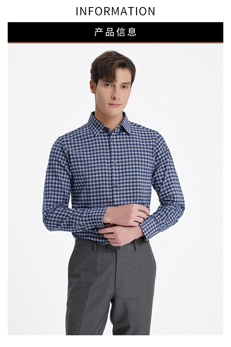 callisto蓝色全棉羊毛三色交织棋盘格长袖衬衫 FSSTL240C