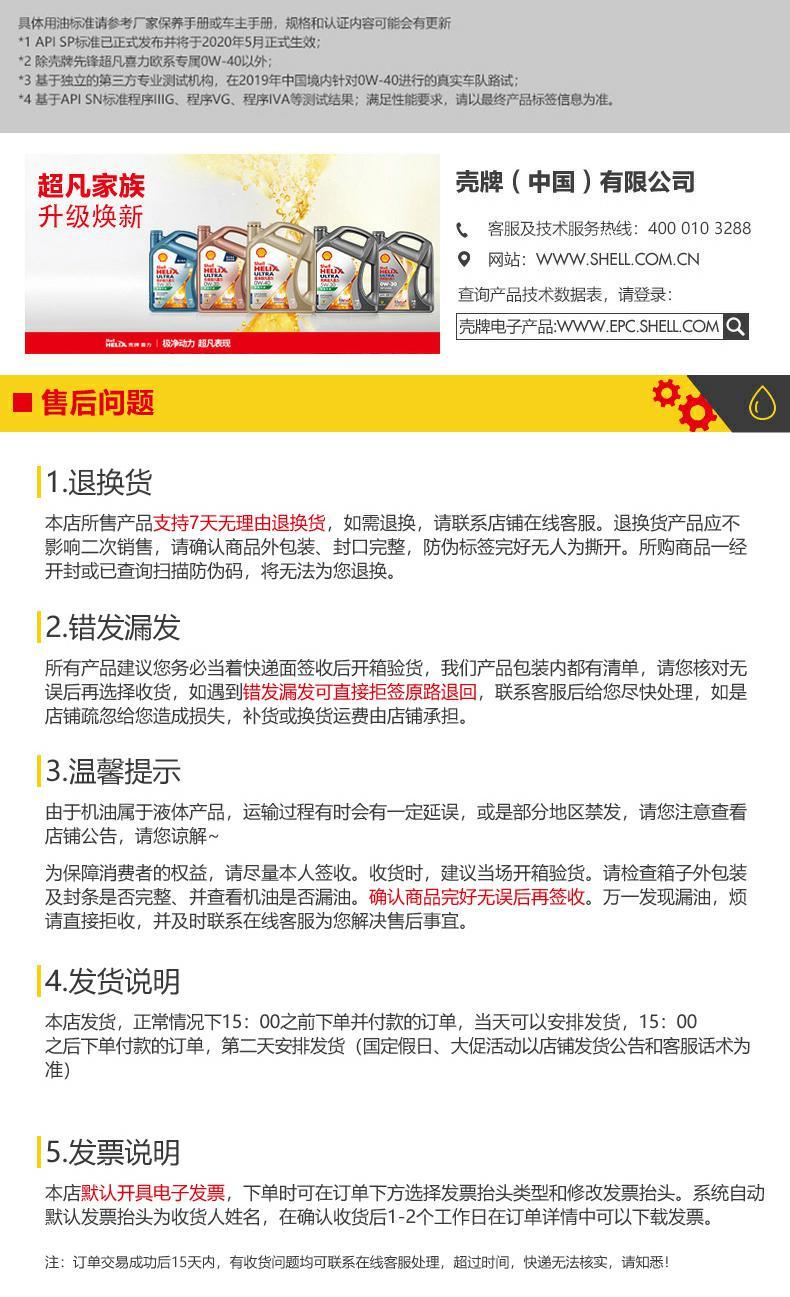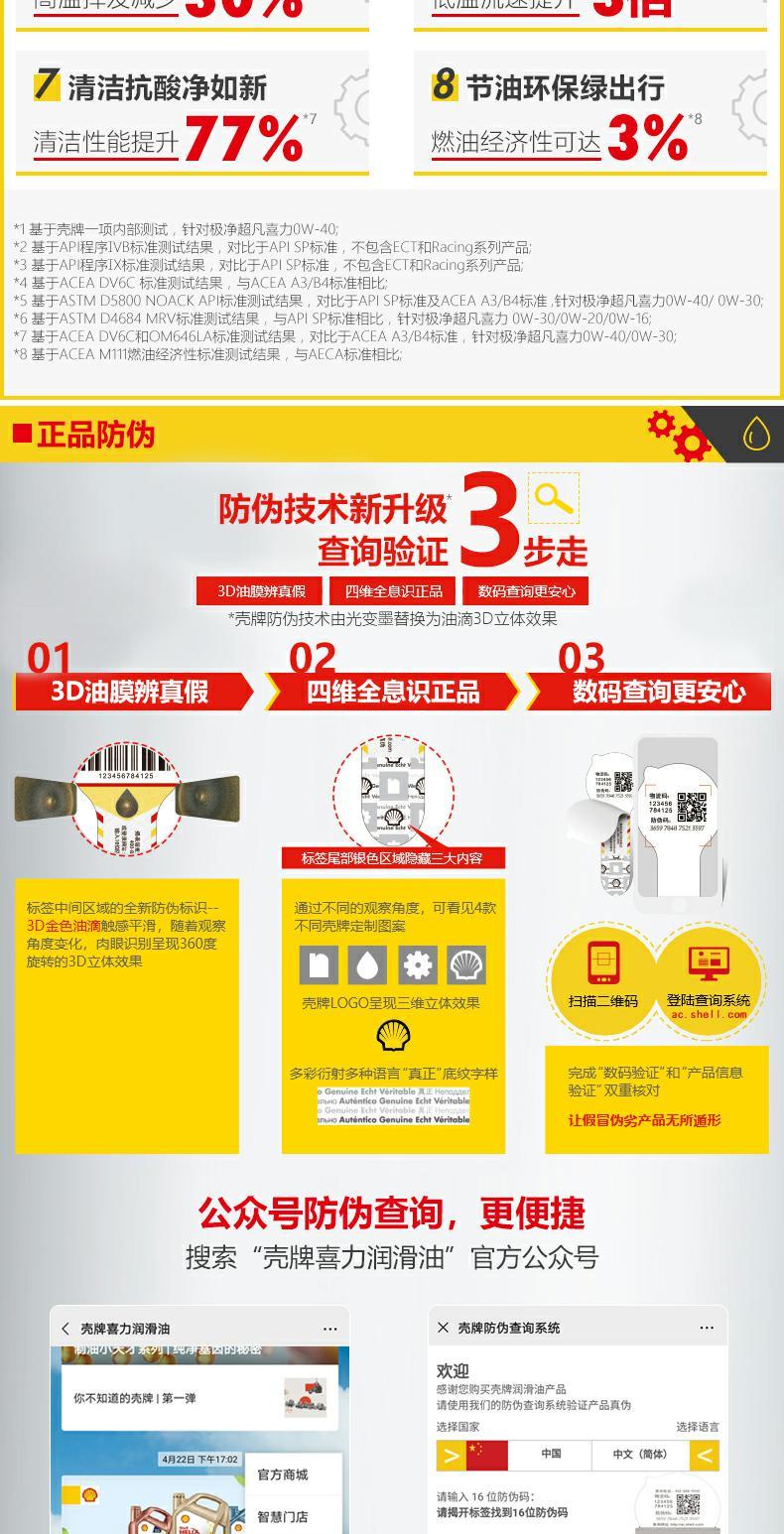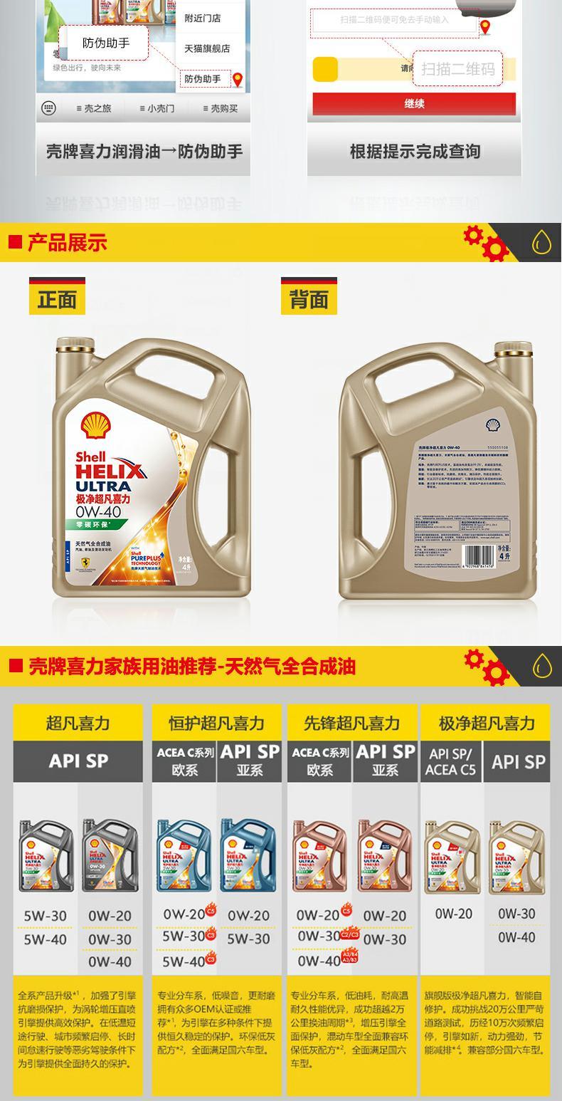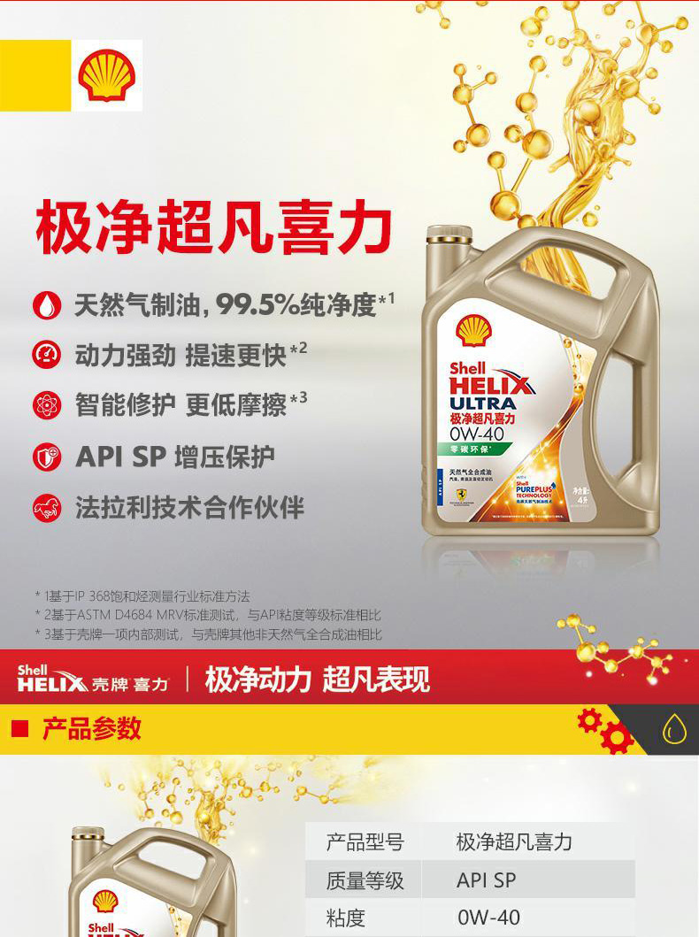 壳牌(Shell)极净超凡喜力0W-40 SP级 4L 汽车发动机润滑油