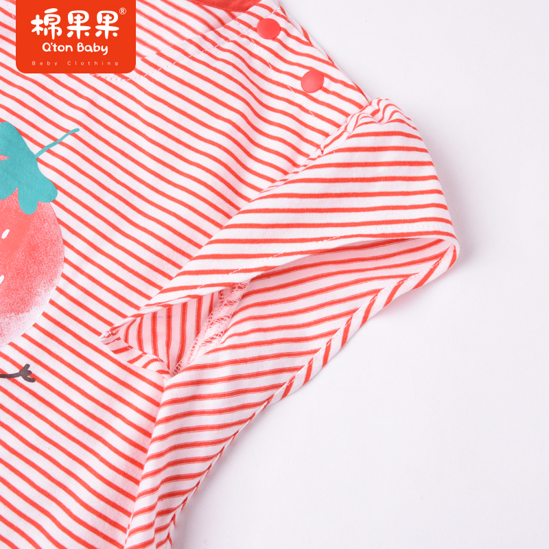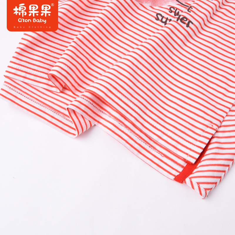 棉果果夏季女童纯棉莫代尔条纹短袖T恤M222140222253