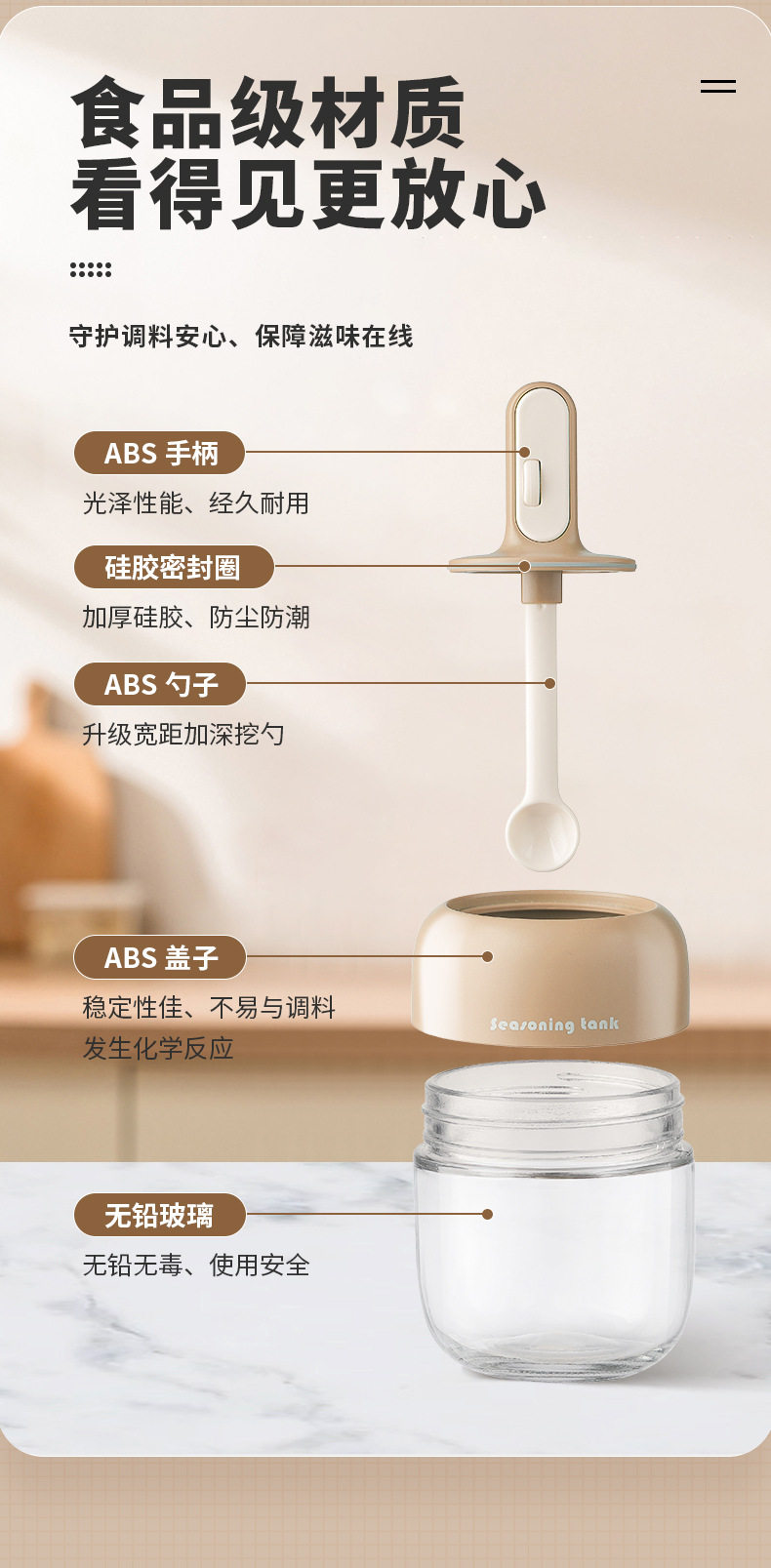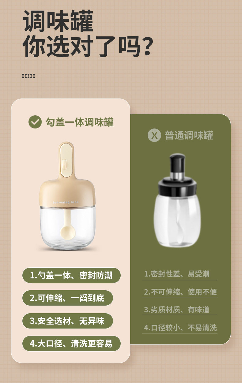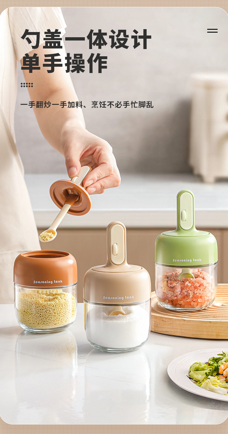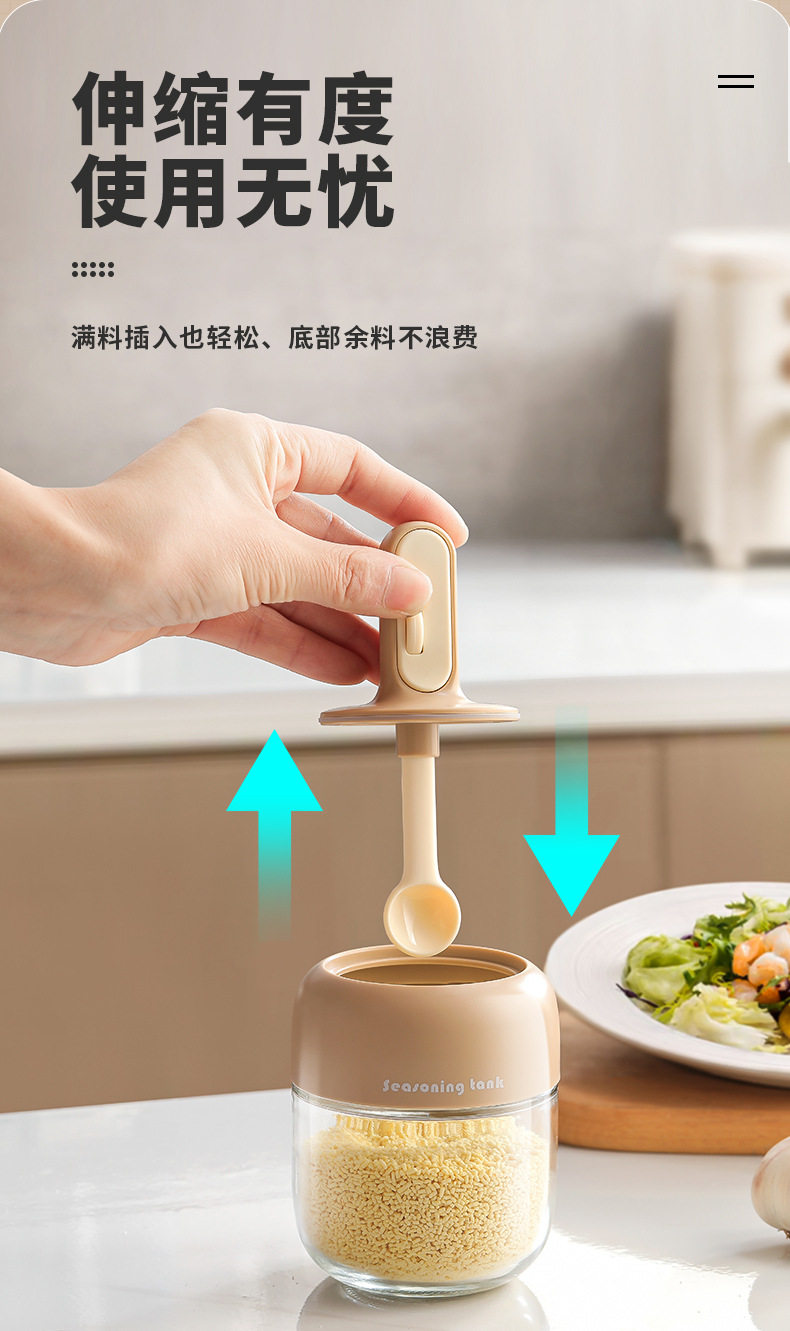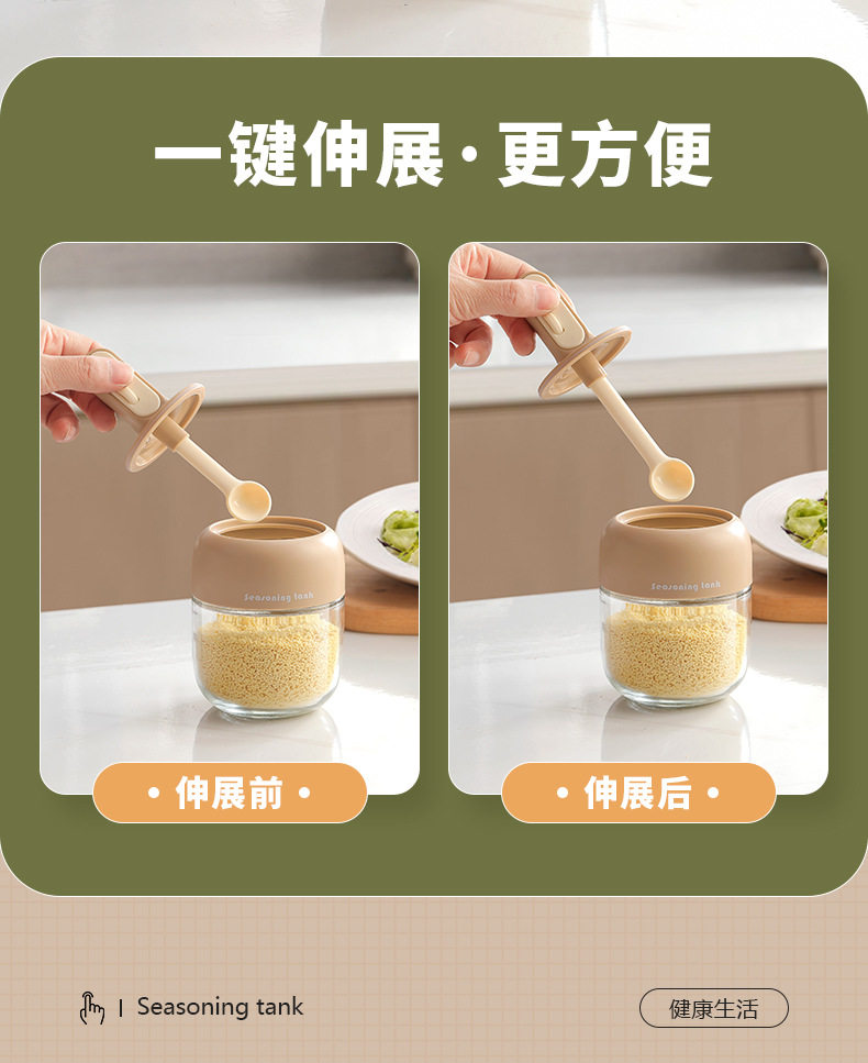 家用伸缩一体罐玻璃勺盖调料瓶密封盒调味瓶厨房调料调料2025新款