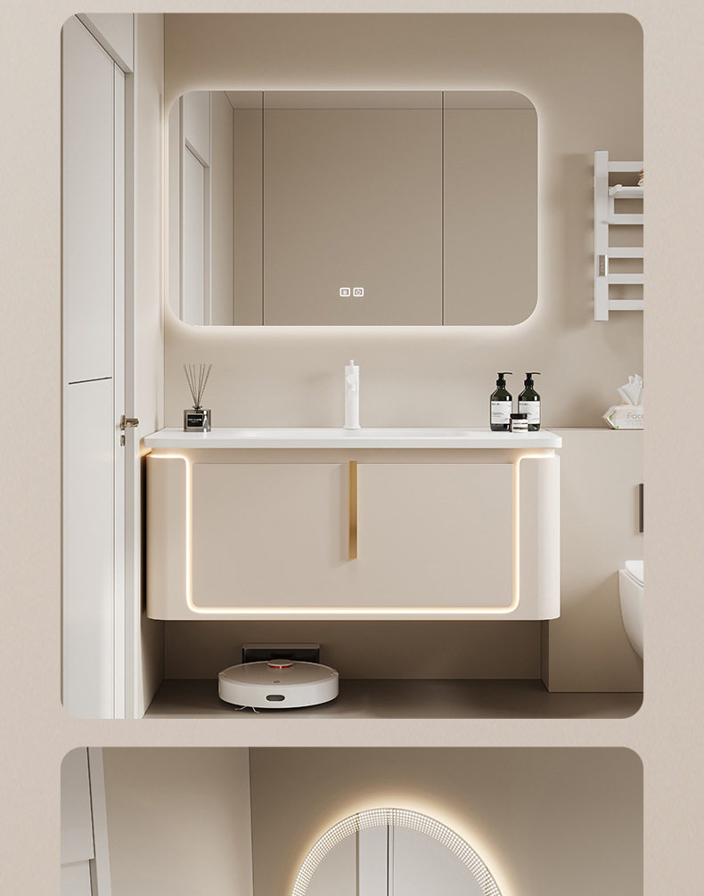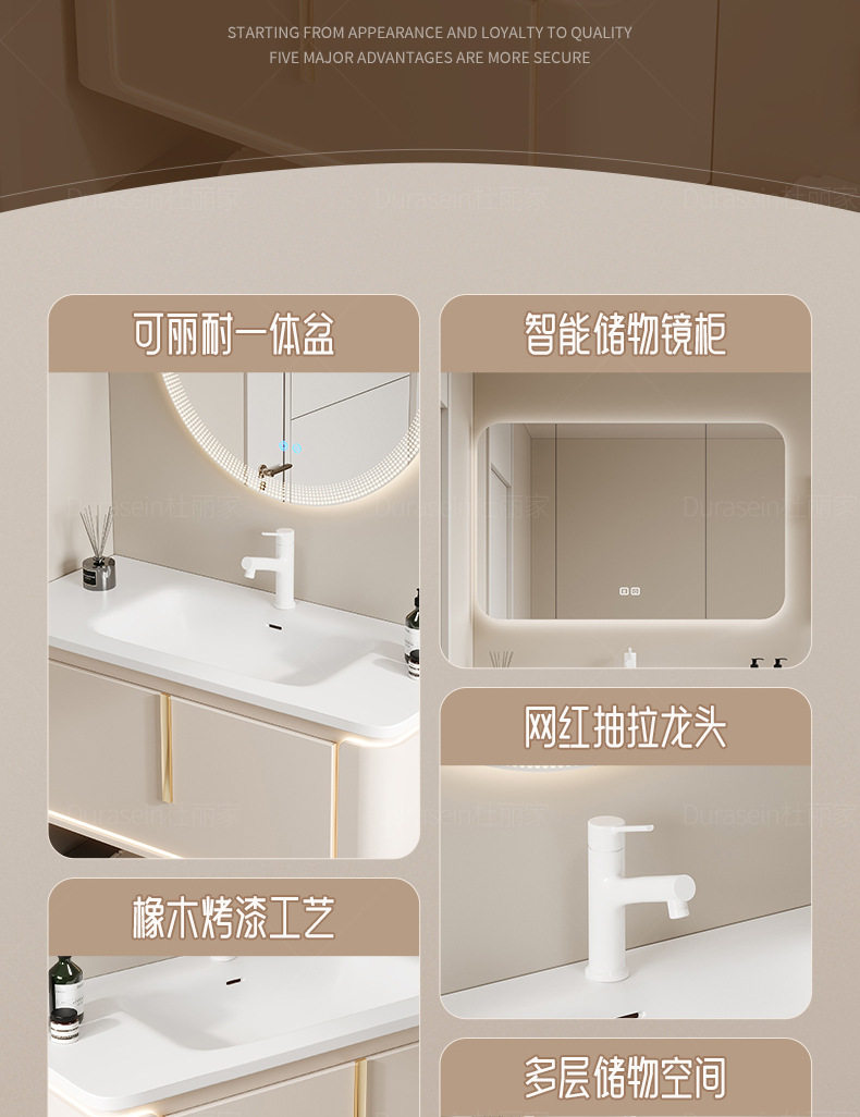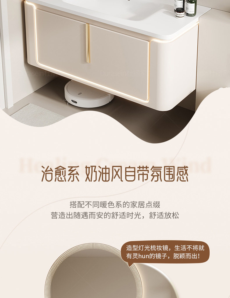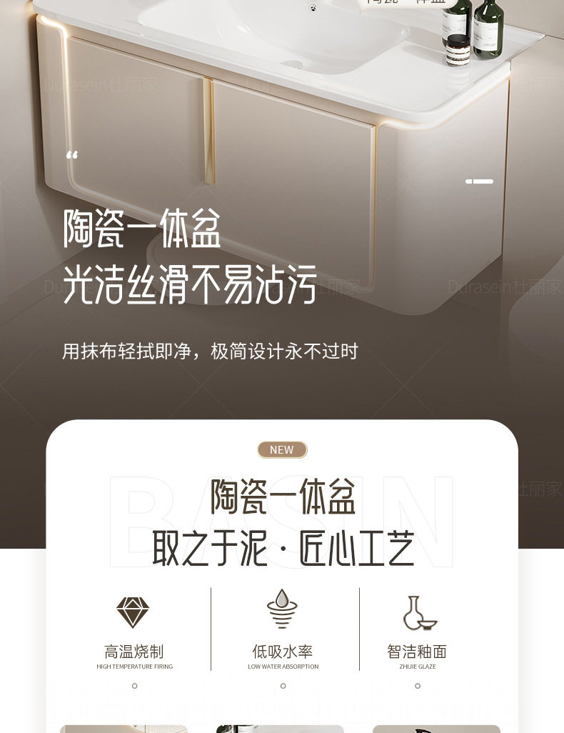 台一体洗脸盆陶瓷橡木浴室柜卫生间可丽耐洗漱奶油小户型风组合盆
