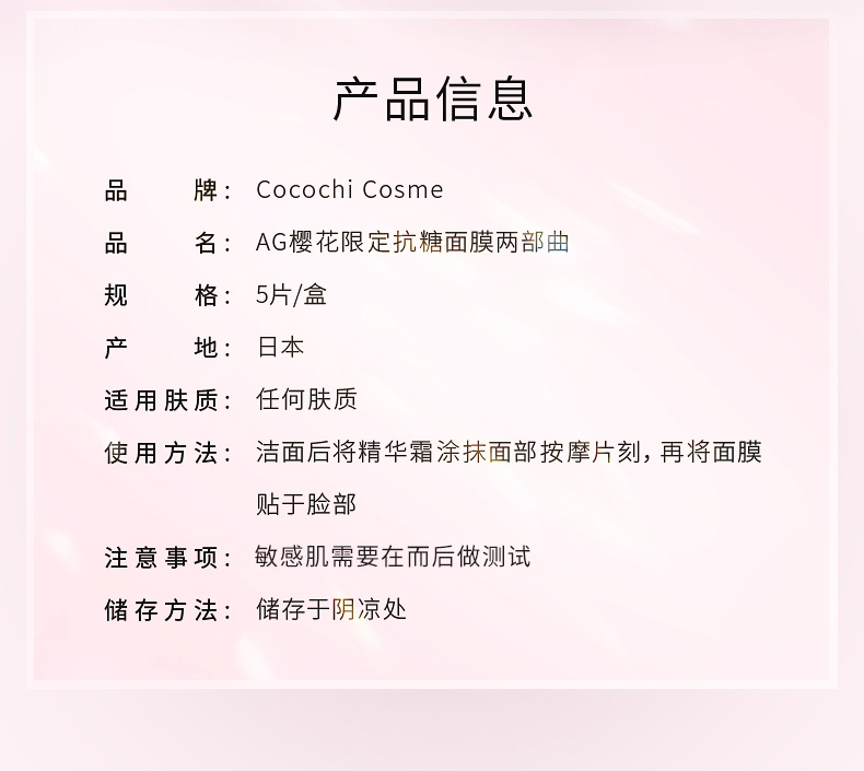 BF日本AG抗糖面膜樱花限定款抗衰紧致修护5片