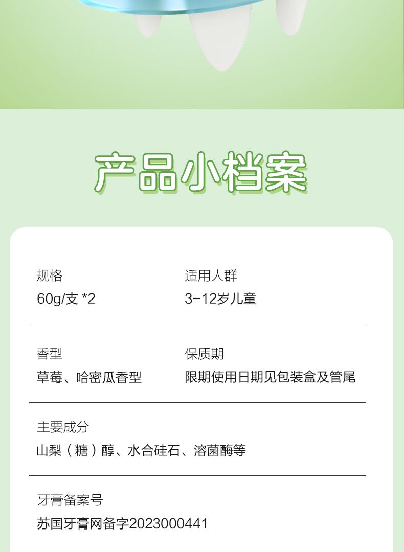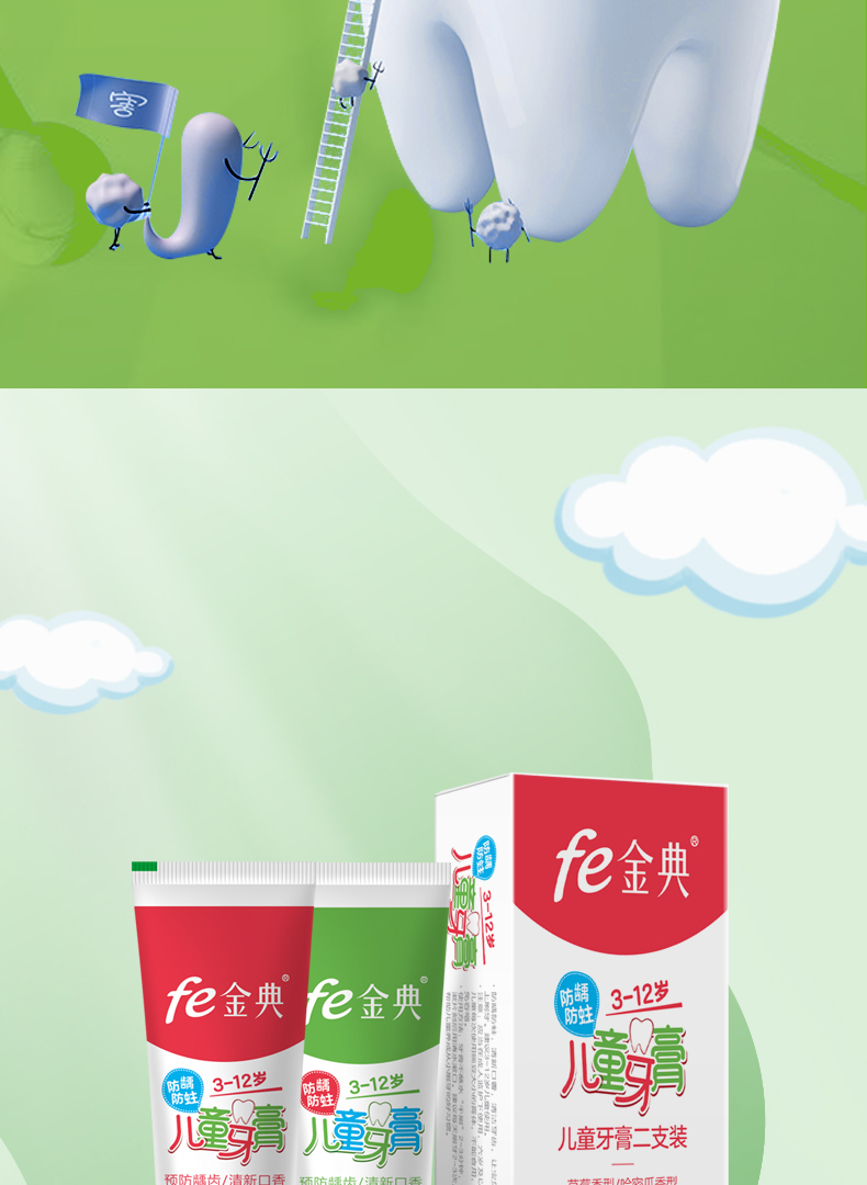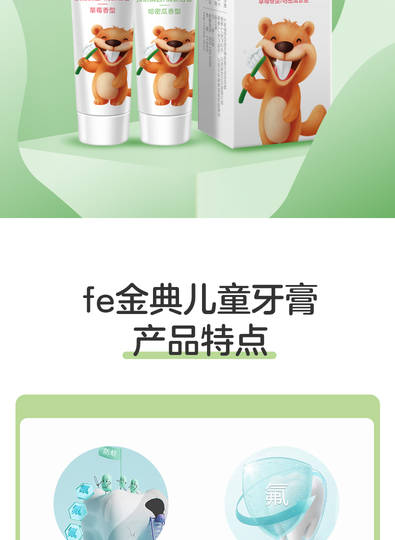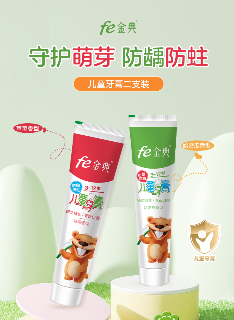 fe金典生物溶菌酶牙膏 3~12岁儿童早晚牙膏 fe8.8(草莓/哈密瓜) 9117-A
