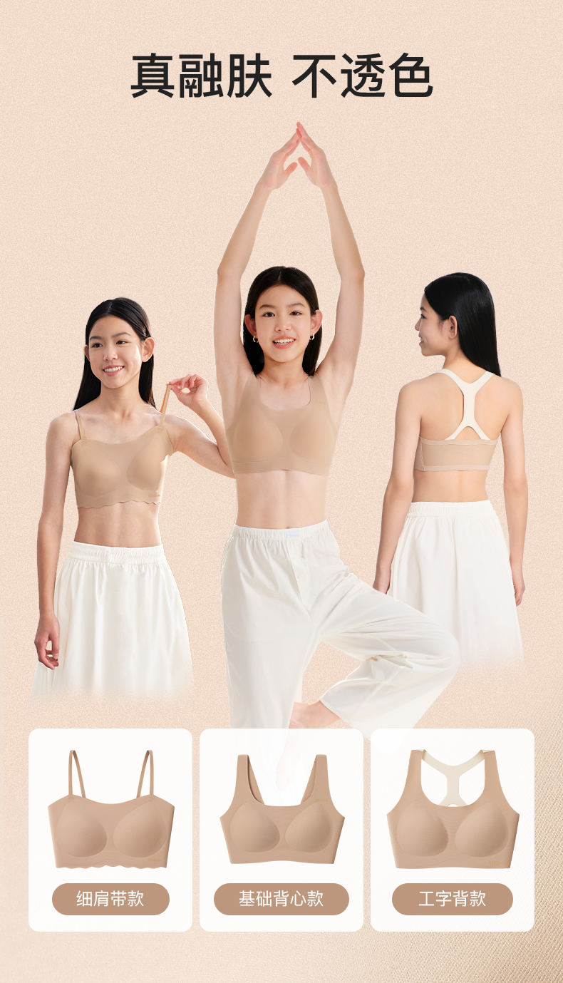 ubras旗下likeuu少女内衣隐形无尺码三阶段女大童文胸发育期学生dr-LC1152054