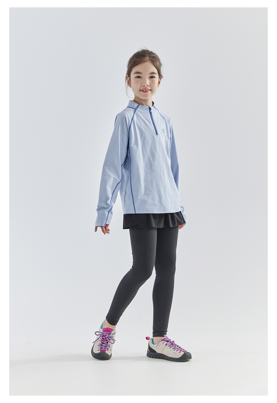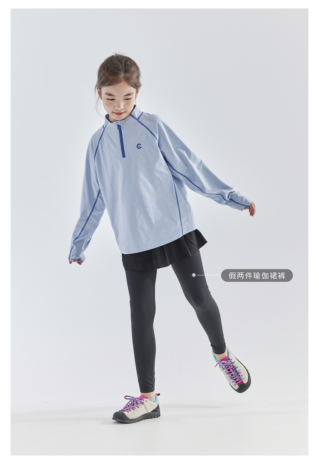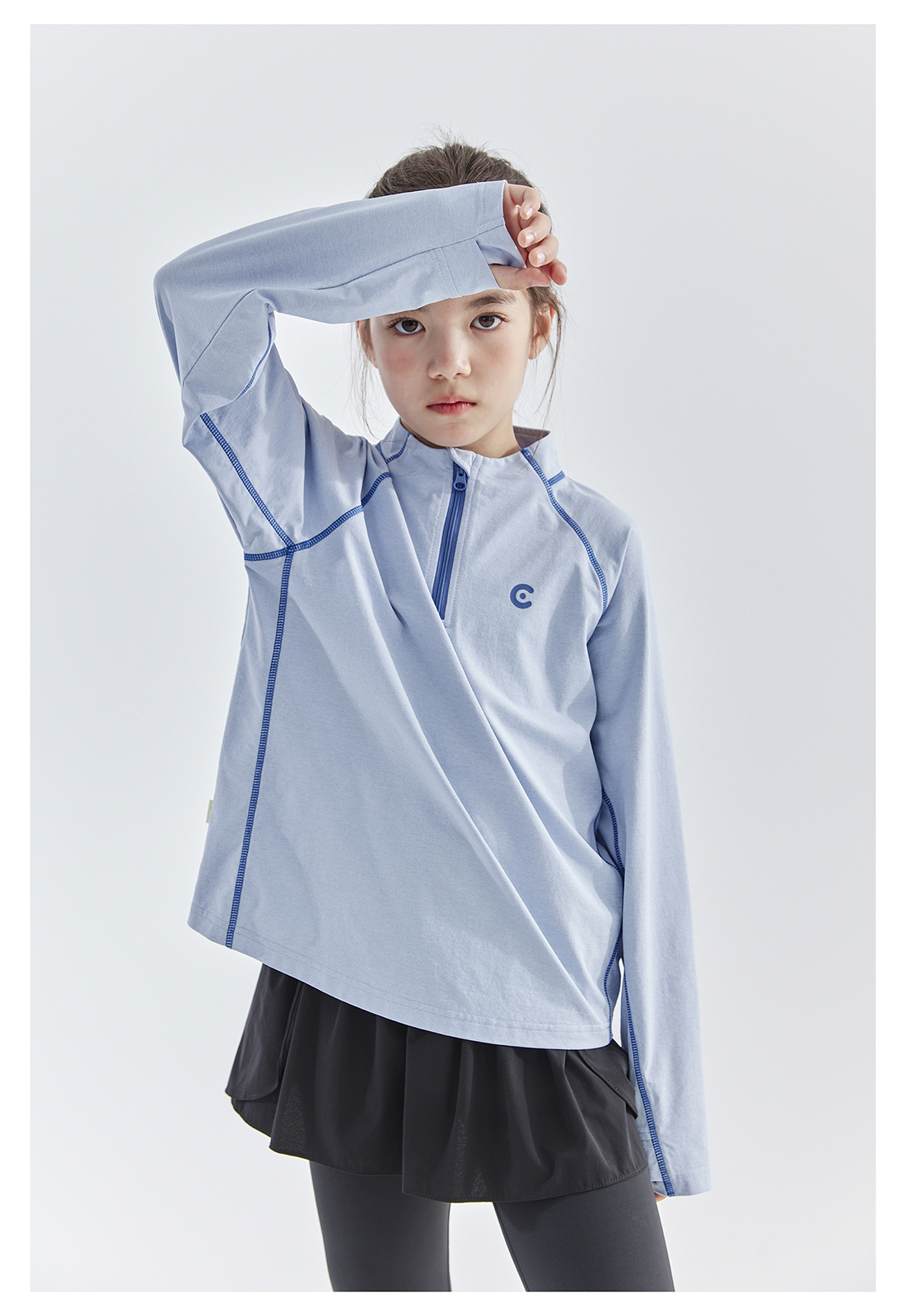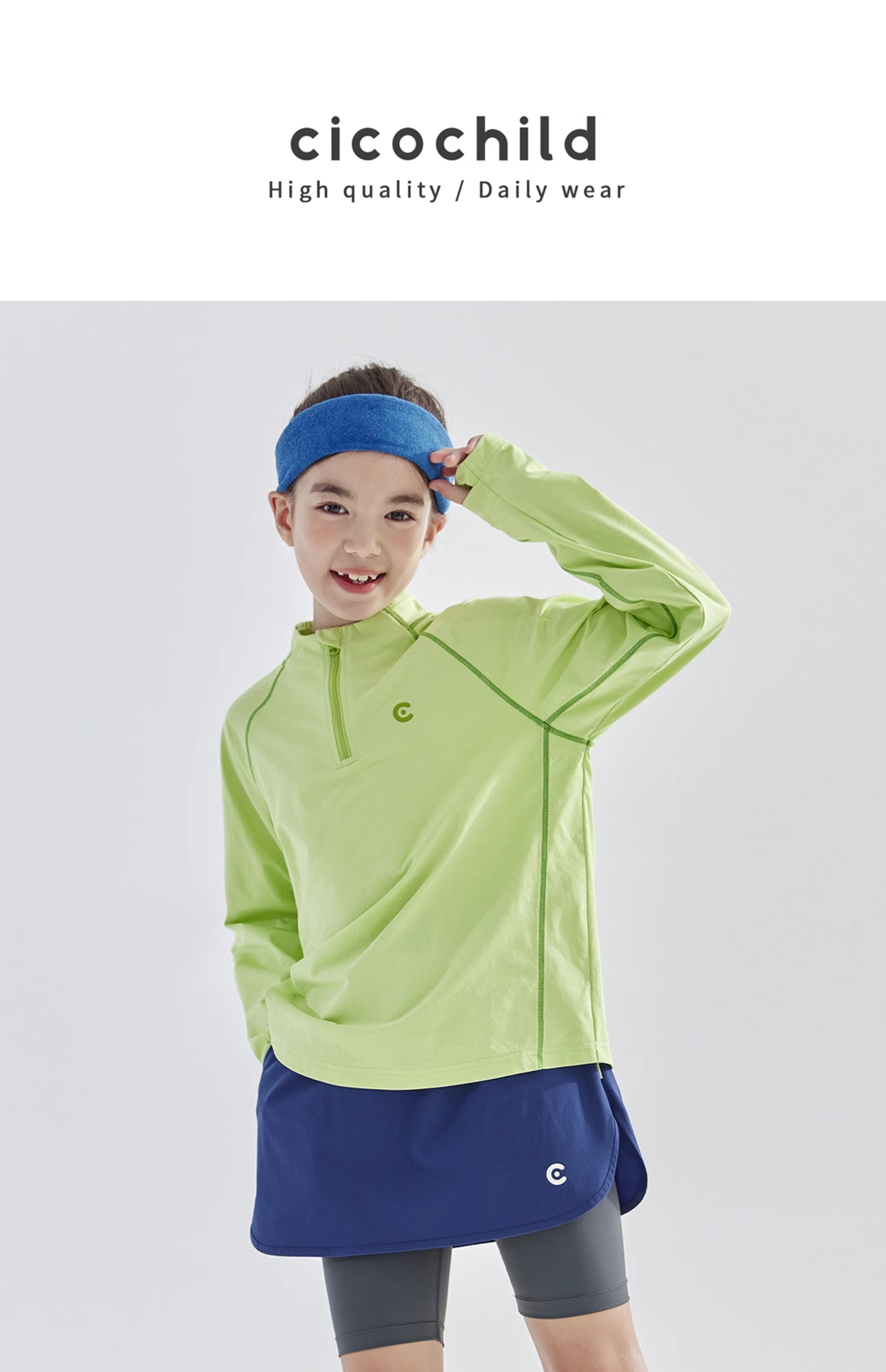 cicochild 25年春季新款儿童运动速干长袖t恤女童户外小立领上衣