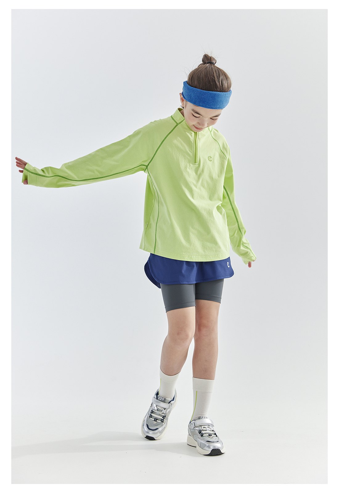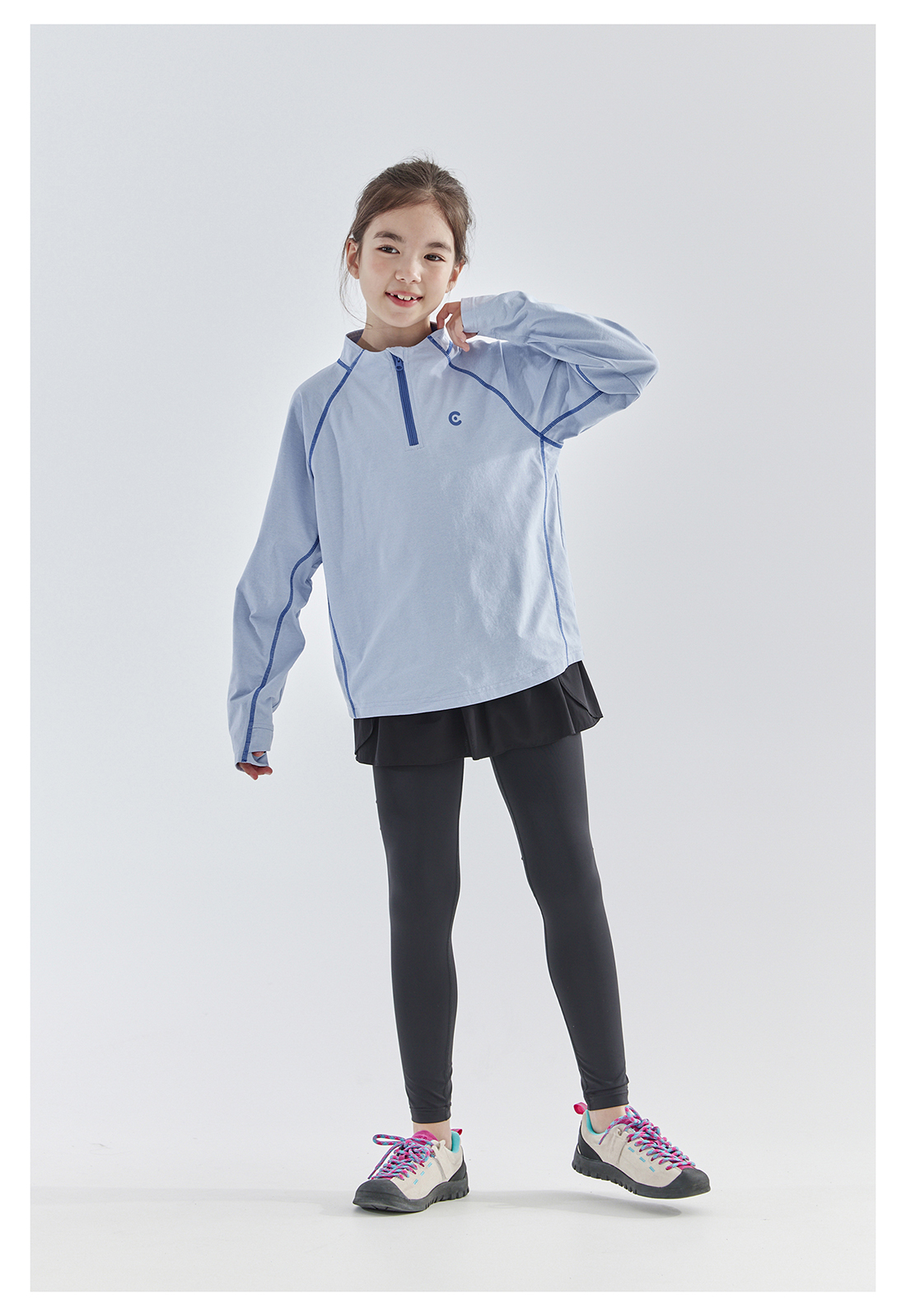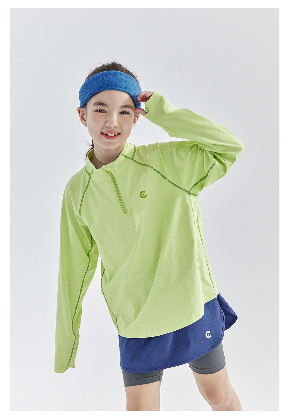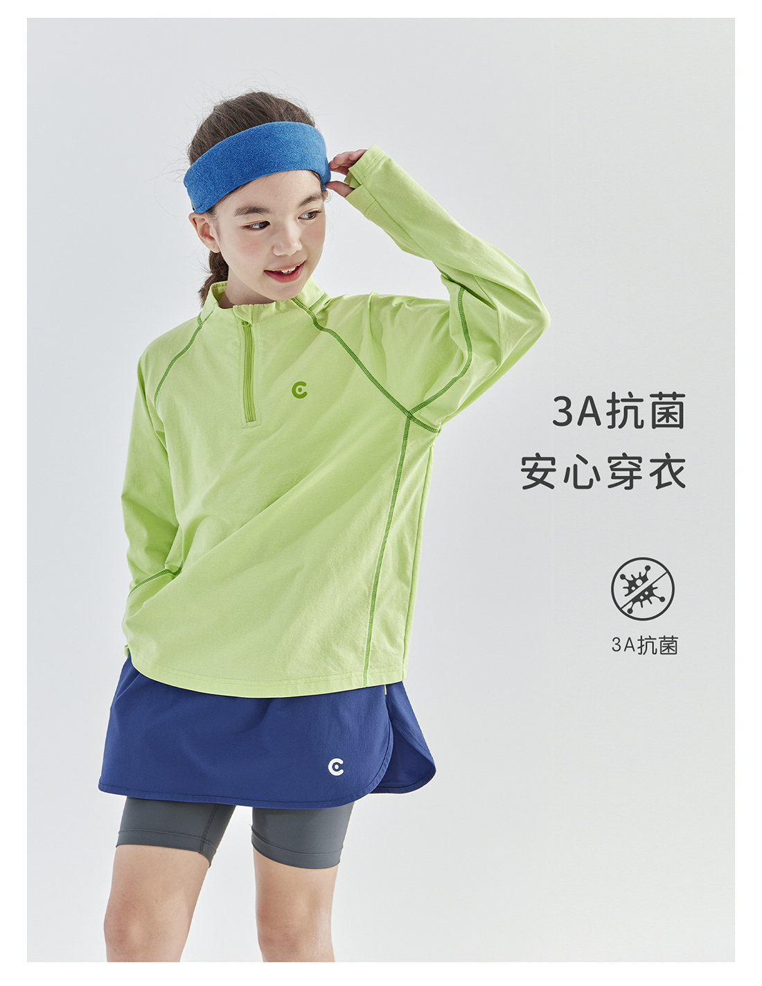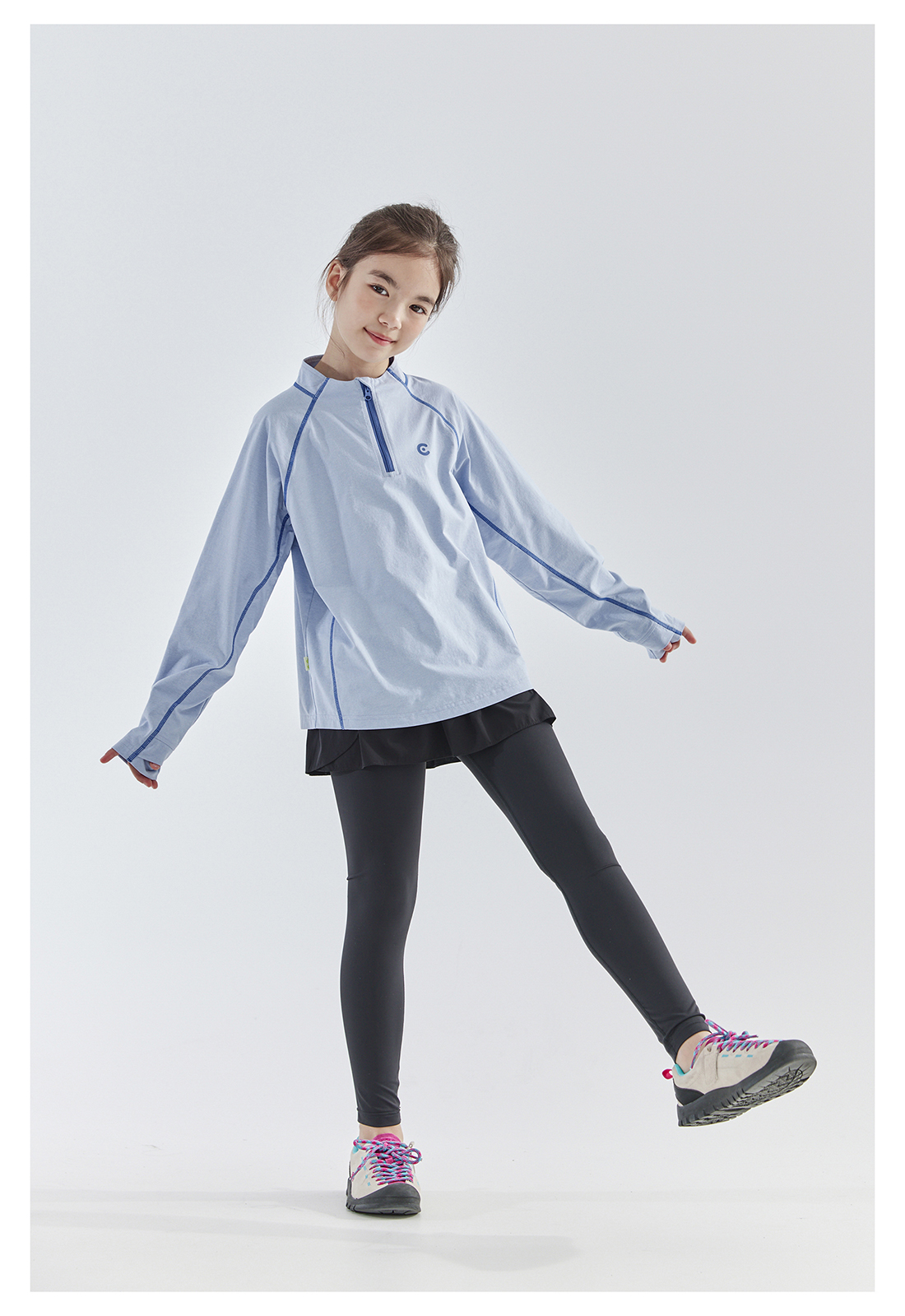 cicochild 25年春季新款儿童运动速干长袖t恤女童户外小立领上衣