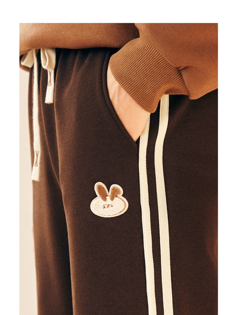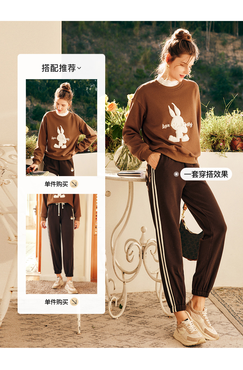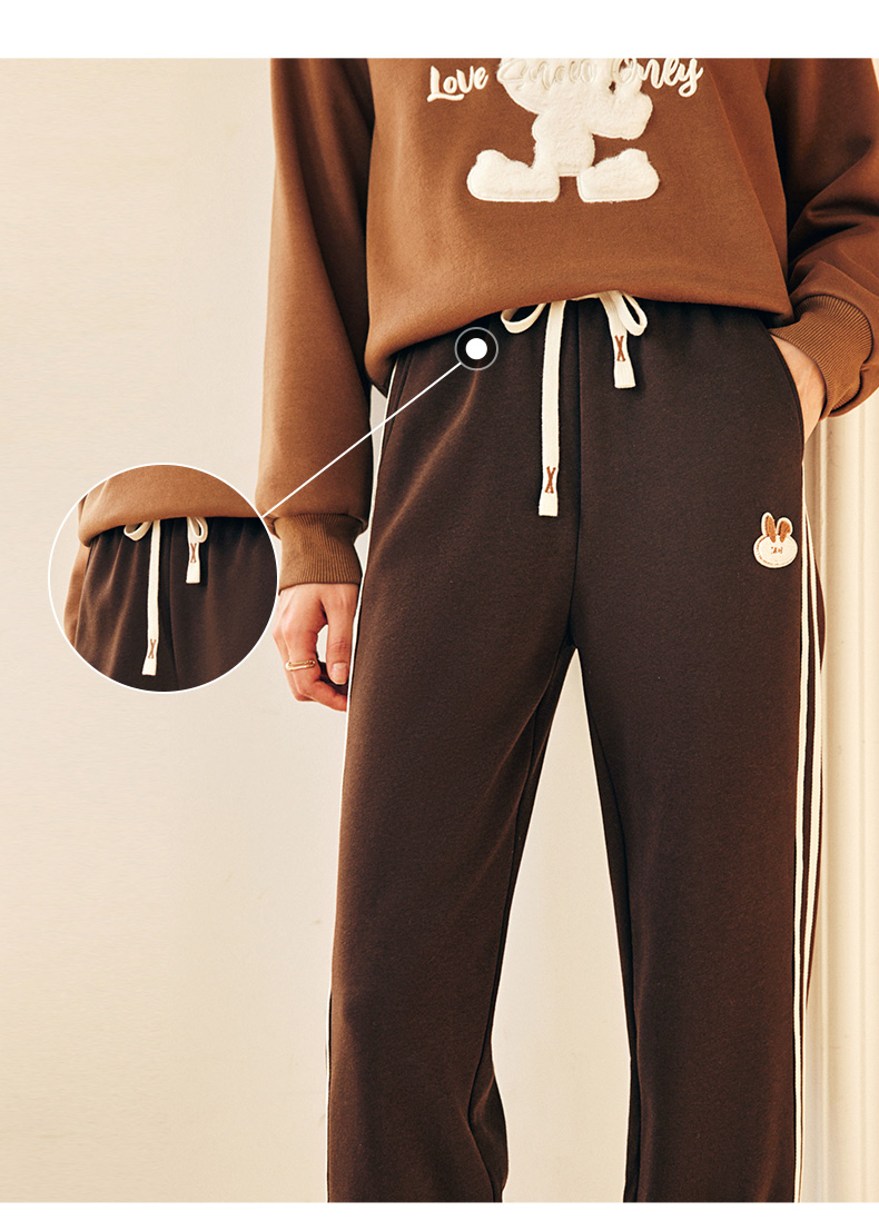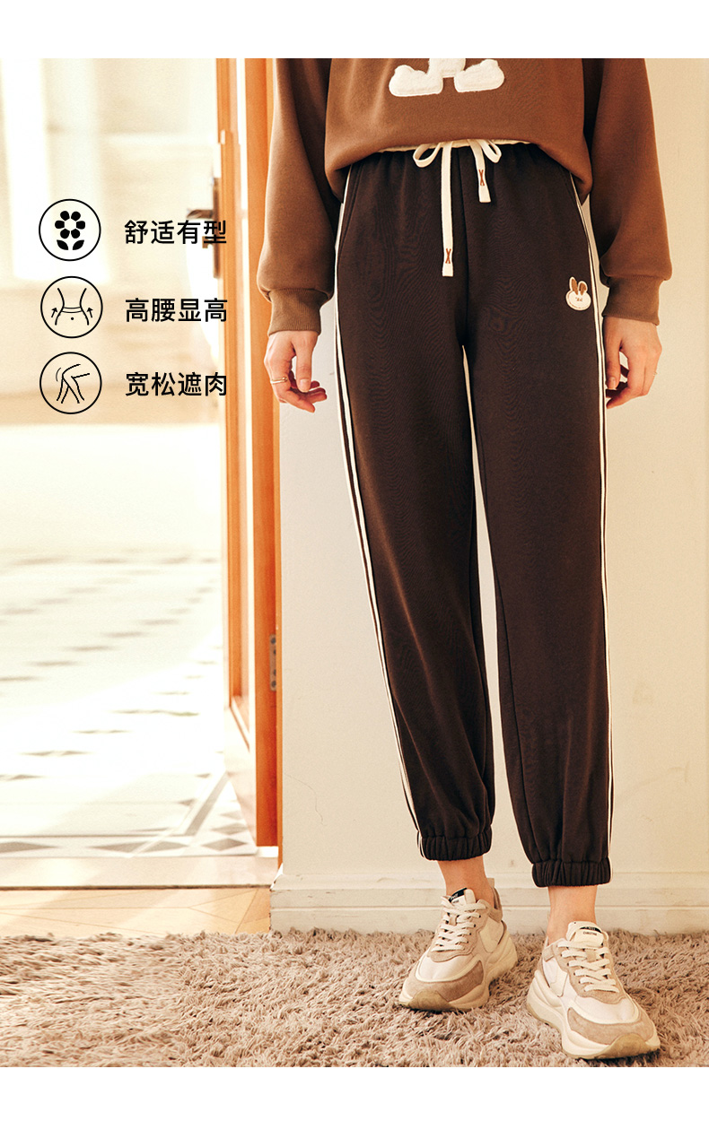 OLrain欧芮儿法式加绒休闲裤女春季2025新款高腰直筒束脚运动卫裤