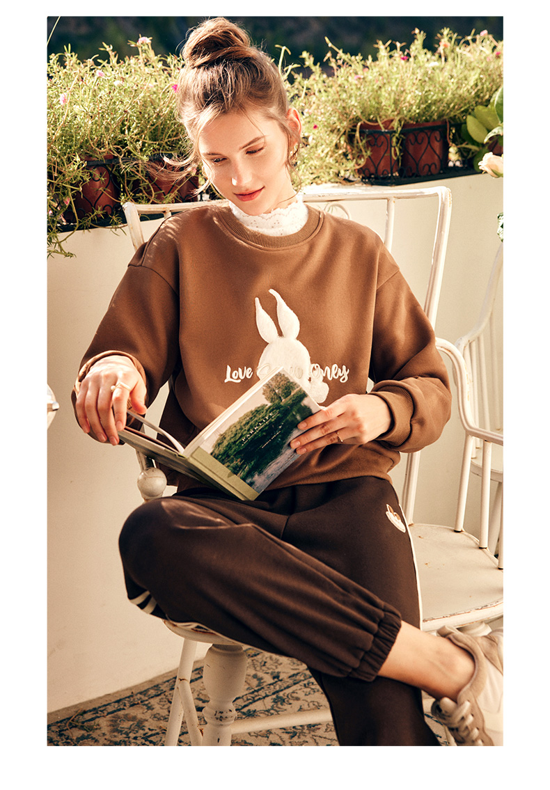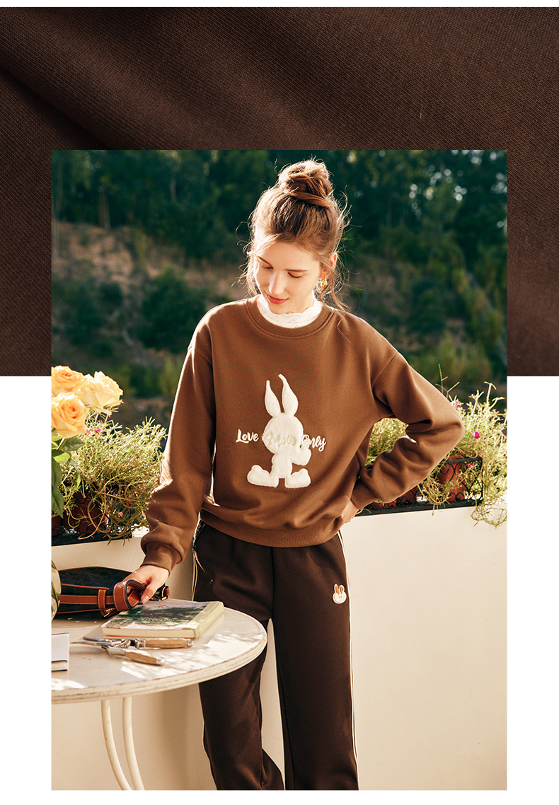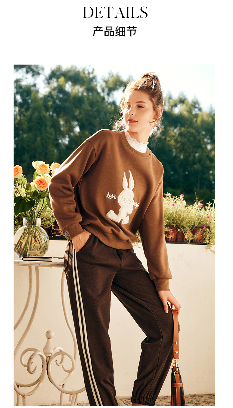 OLrain欧芮儿法式加绒休闲裤女春季2025新款高腰直筒束脚运动卫裤