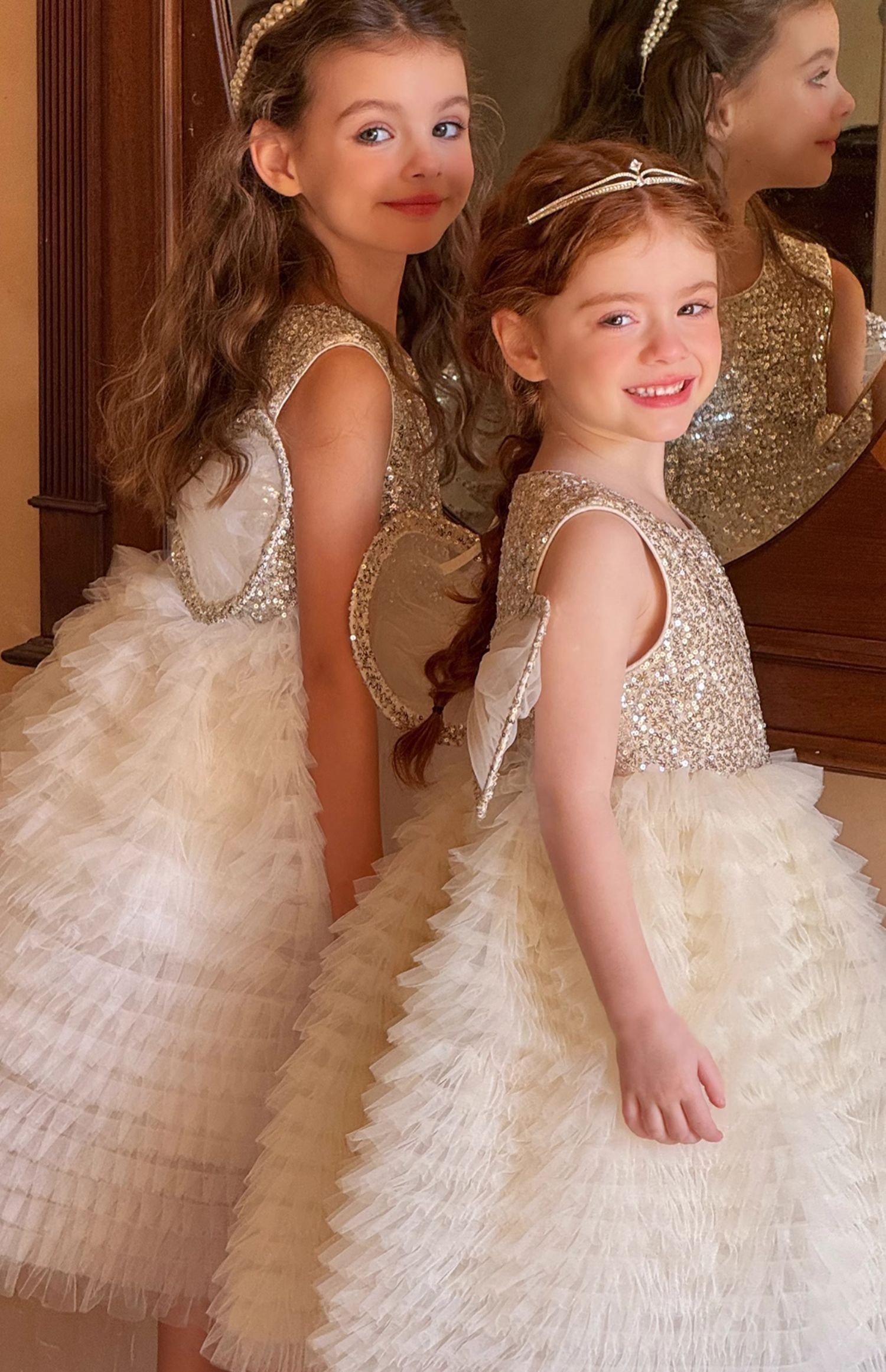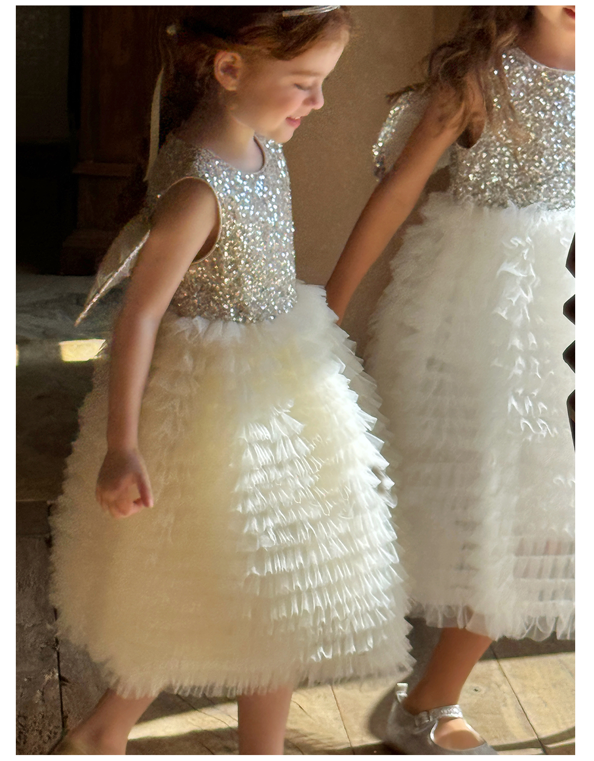 Littletime女童连衣裙2025春夏公主裙礼服儿童甜美网纱亮片蛋糕裙