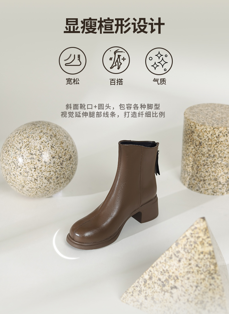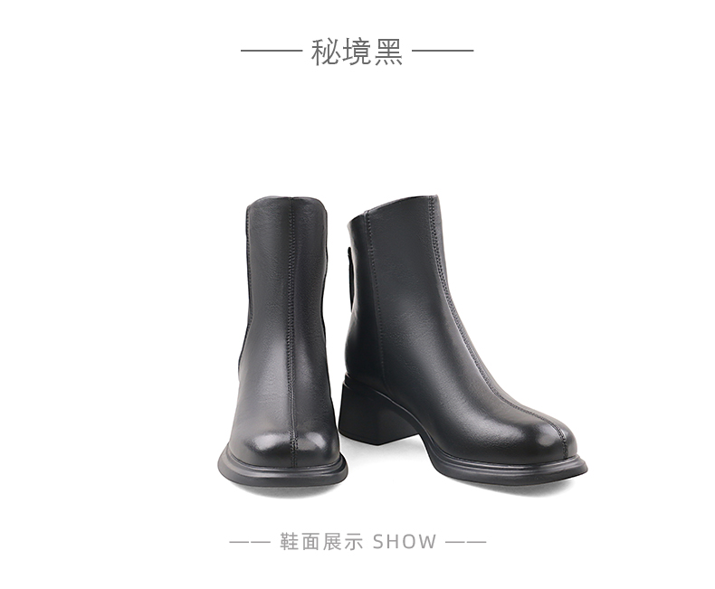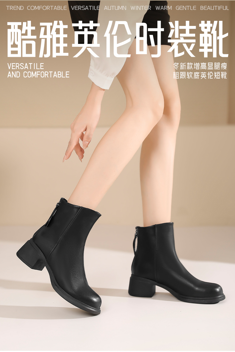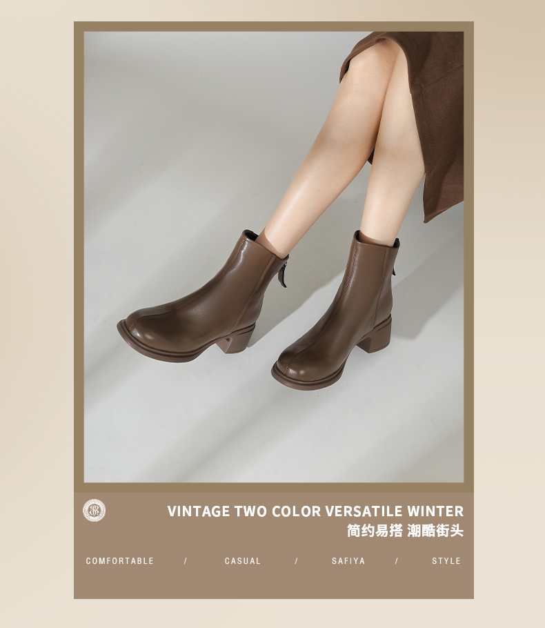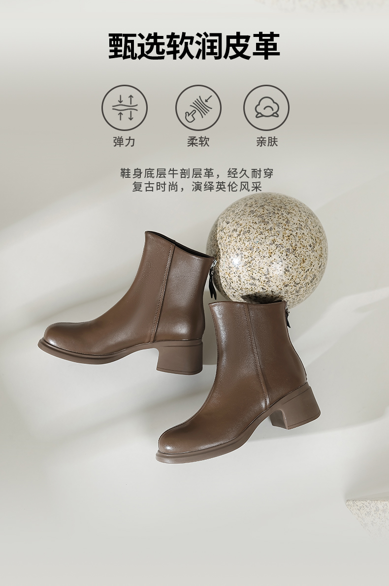 Safiya/索菲娅2024英伦风百搭粗跟时尚圆头短筒粗腿显瘦弹力靴 SF44116130/SF44118130
