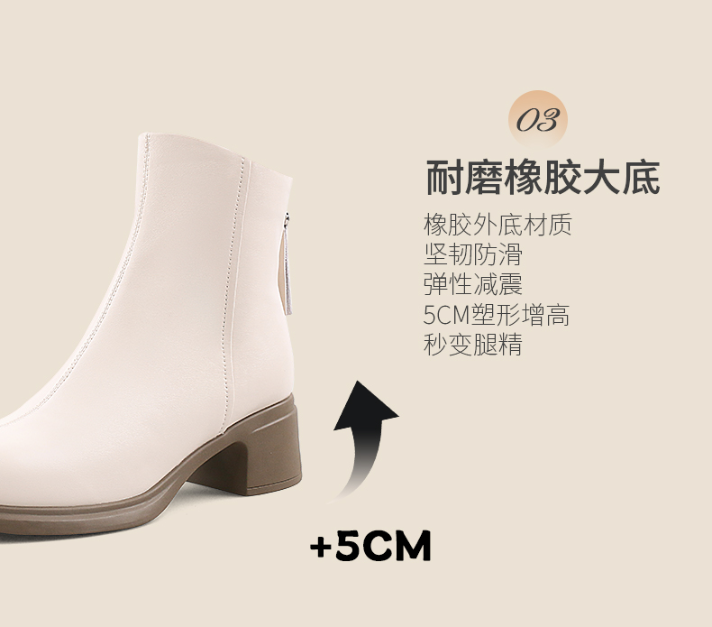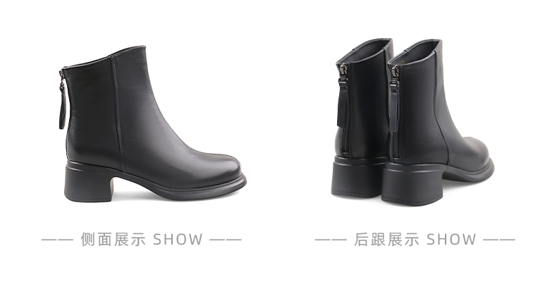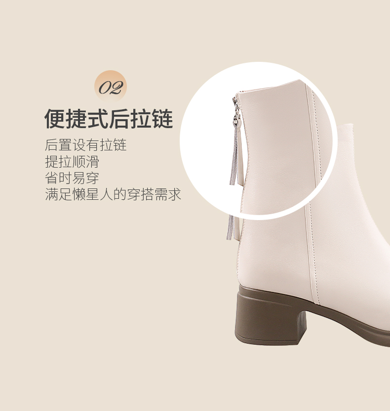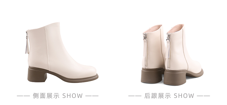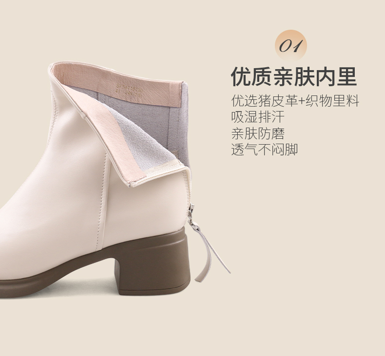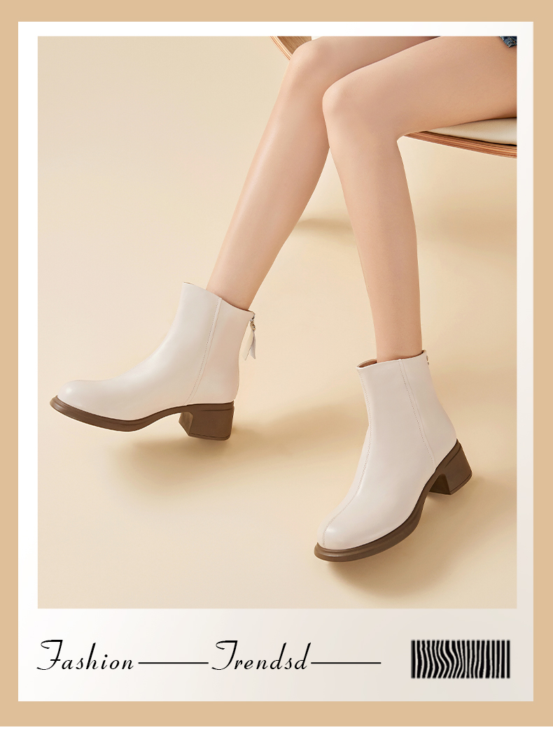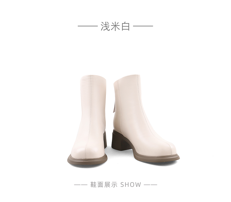 Safiya/索菲娅2024英伦风百搭粗跟时尚圆头短筒粗腿显瘦弹力靴 SF44116130/SF44118130