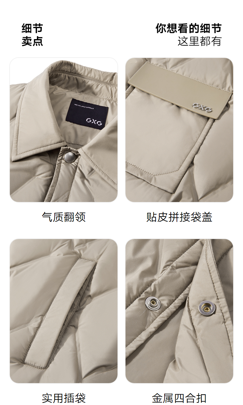 【衬衫式】GXG男装 pu袋盖休闲轻薄羽绒服男保暖外套 24冬季热卖