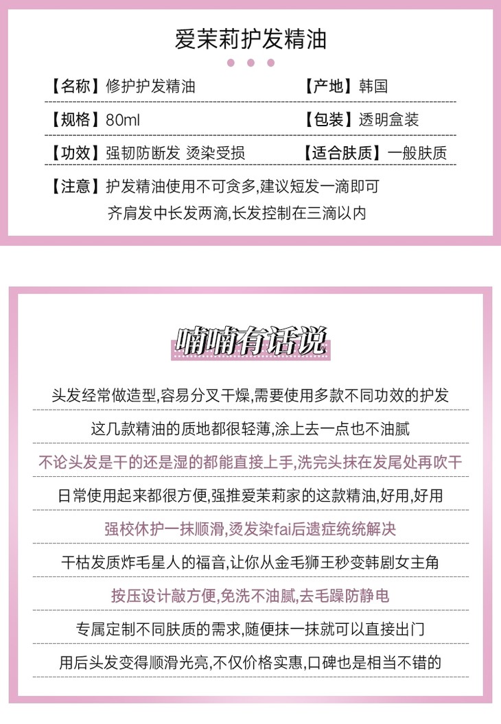 Amore/爱茉莉修复干枯改善毛躁头发免洗100ml