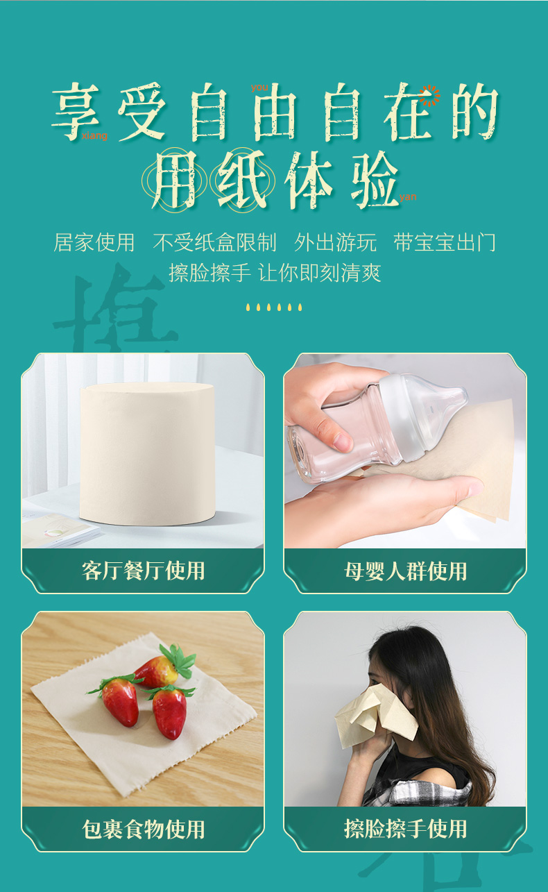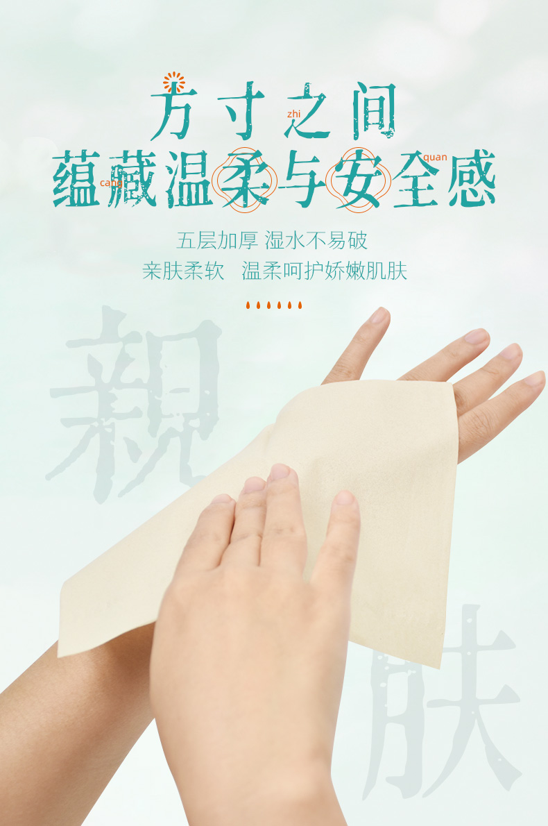 若禺软抽纸国潮竹韧系列5层加厚380张/包原生竹浆湿水可用6包/提到手4提RR1402