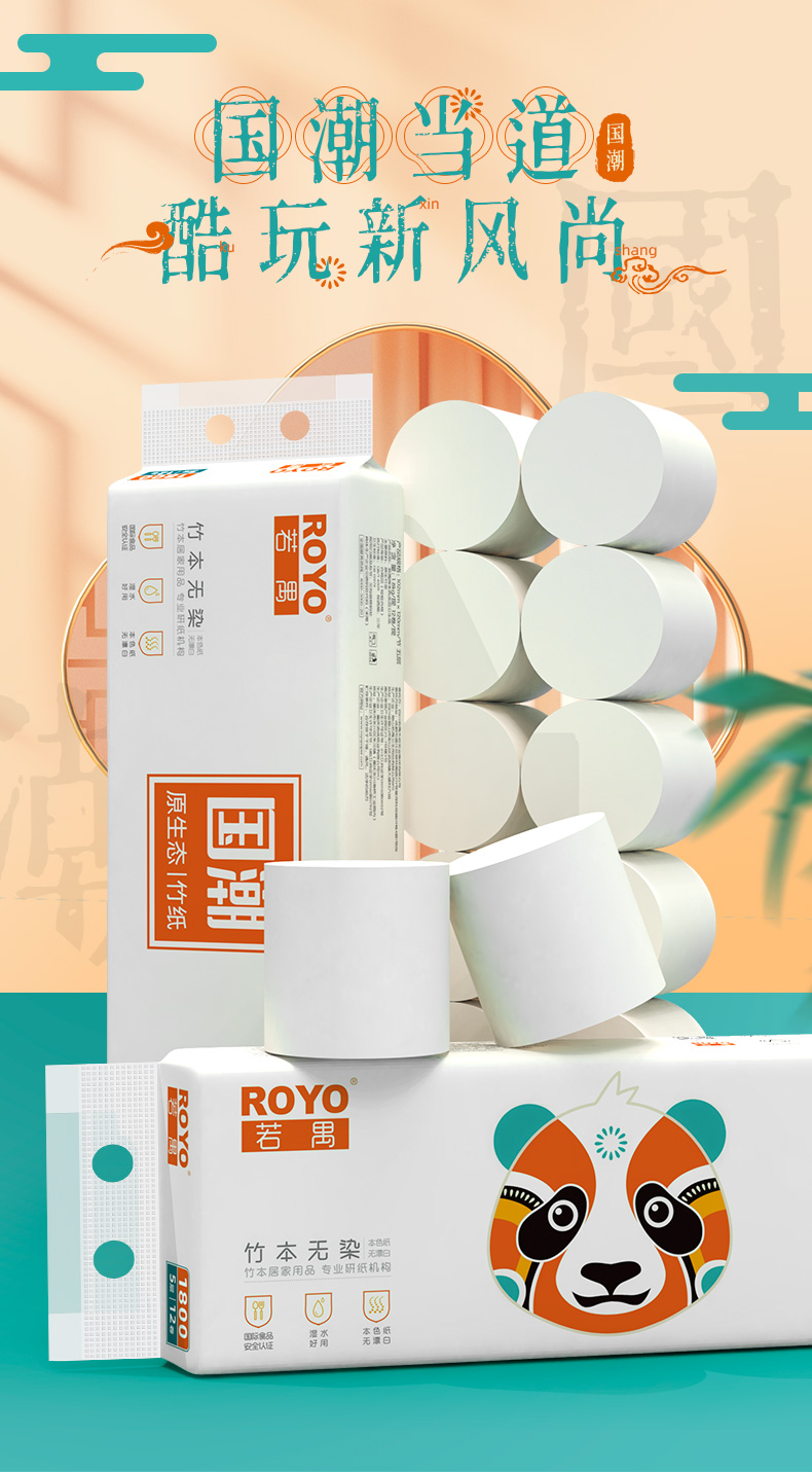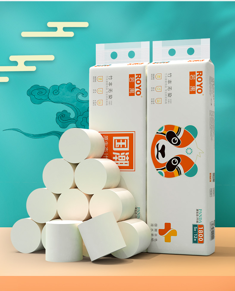 若禺无芯卷纸竹本系列5层1800克/提本色原生竹浆1件12卷6提RJ1502