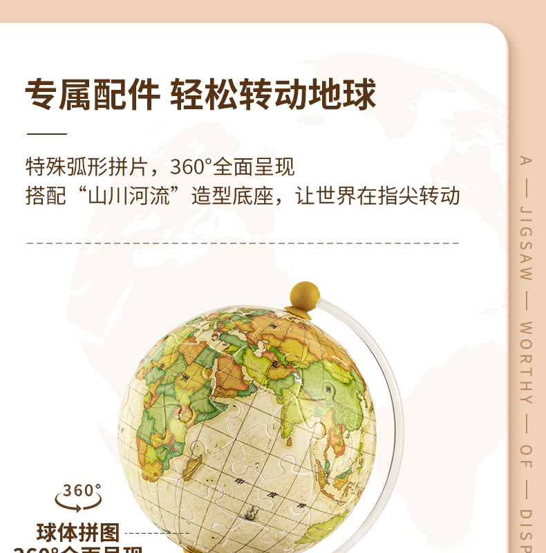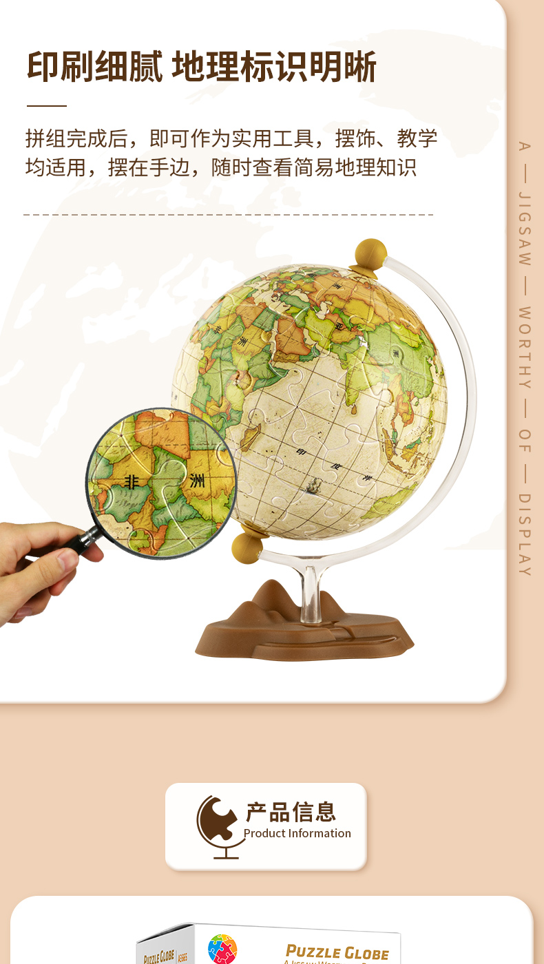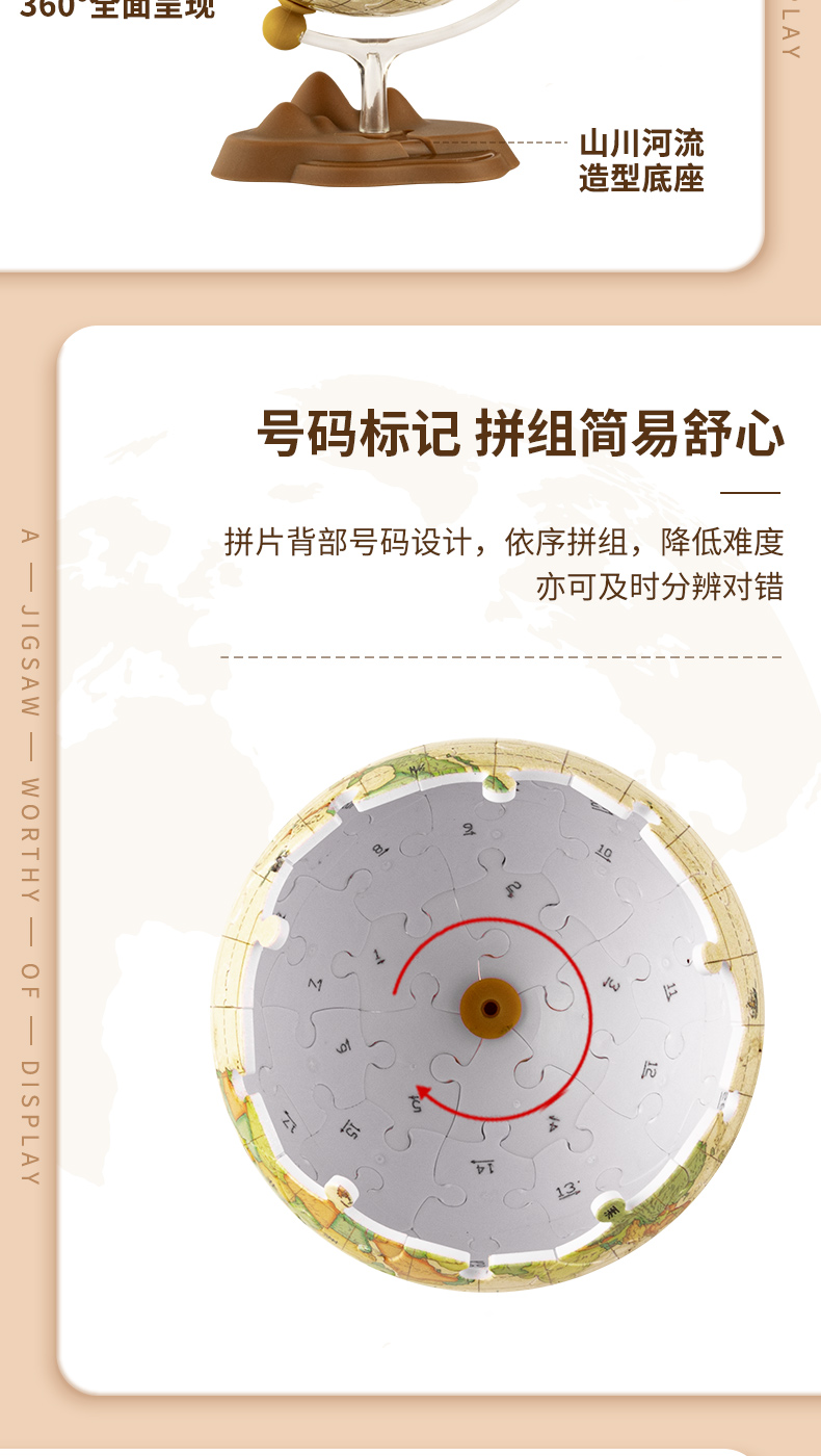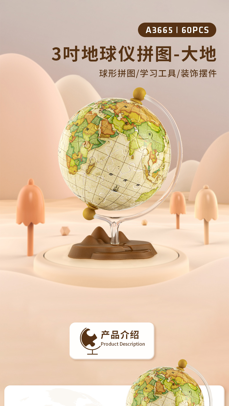【折扣商品 不退不换】3寸60片 新版地球仪拼图 塑料拼图 A3665 黄色简体中文