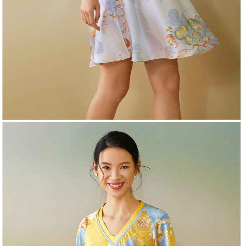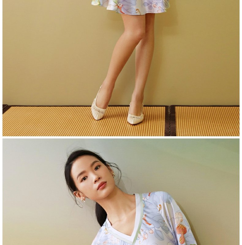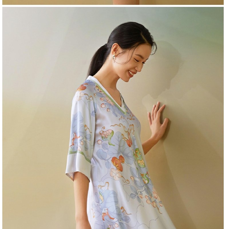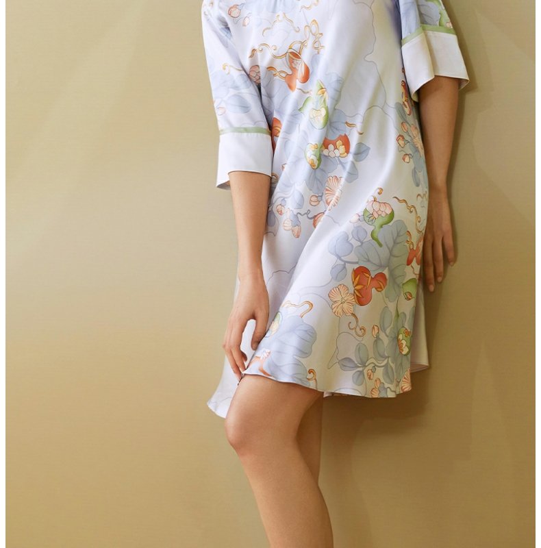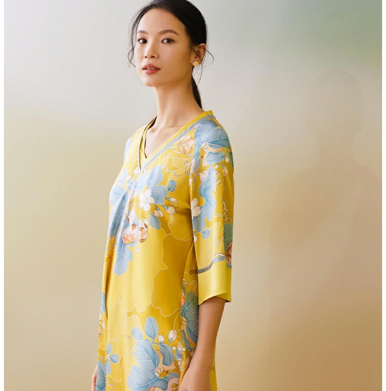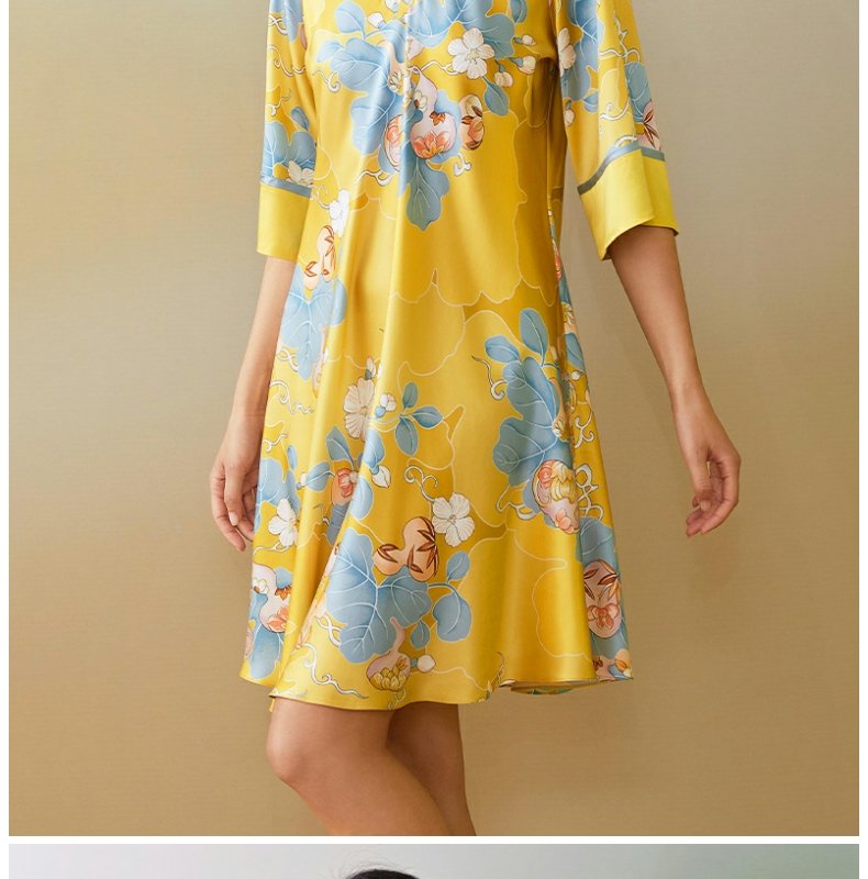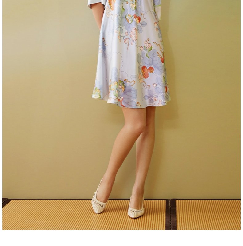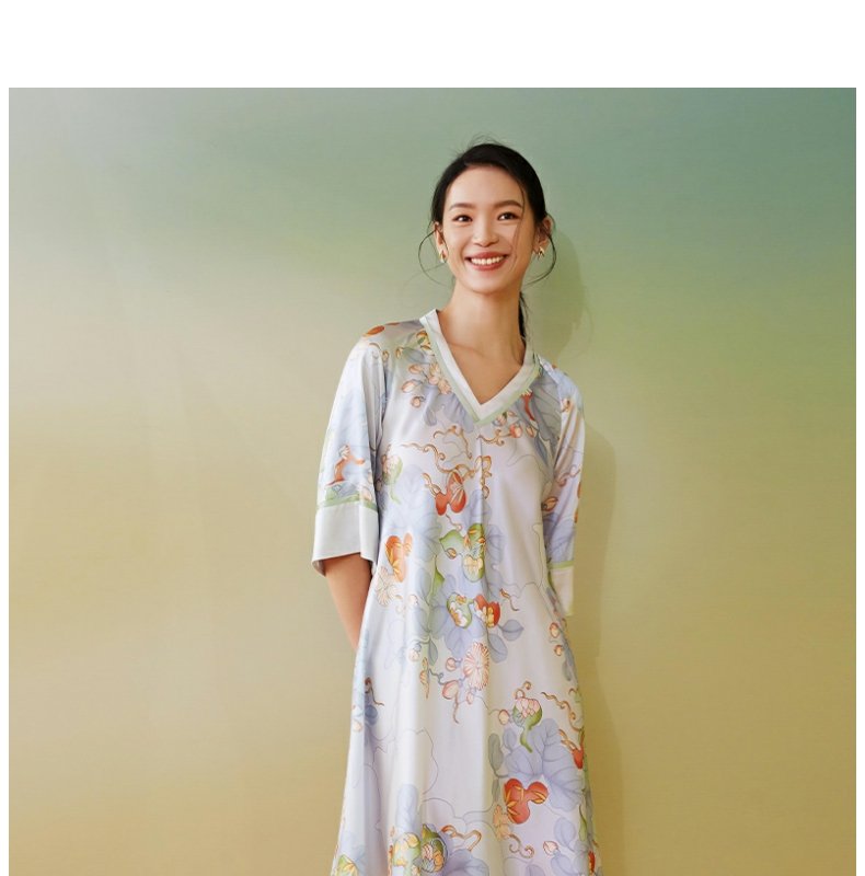 【皇锦】七分袖交叠领连衣裙