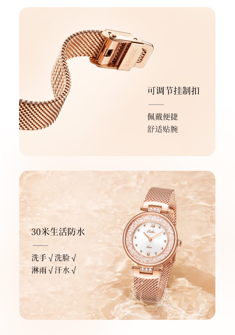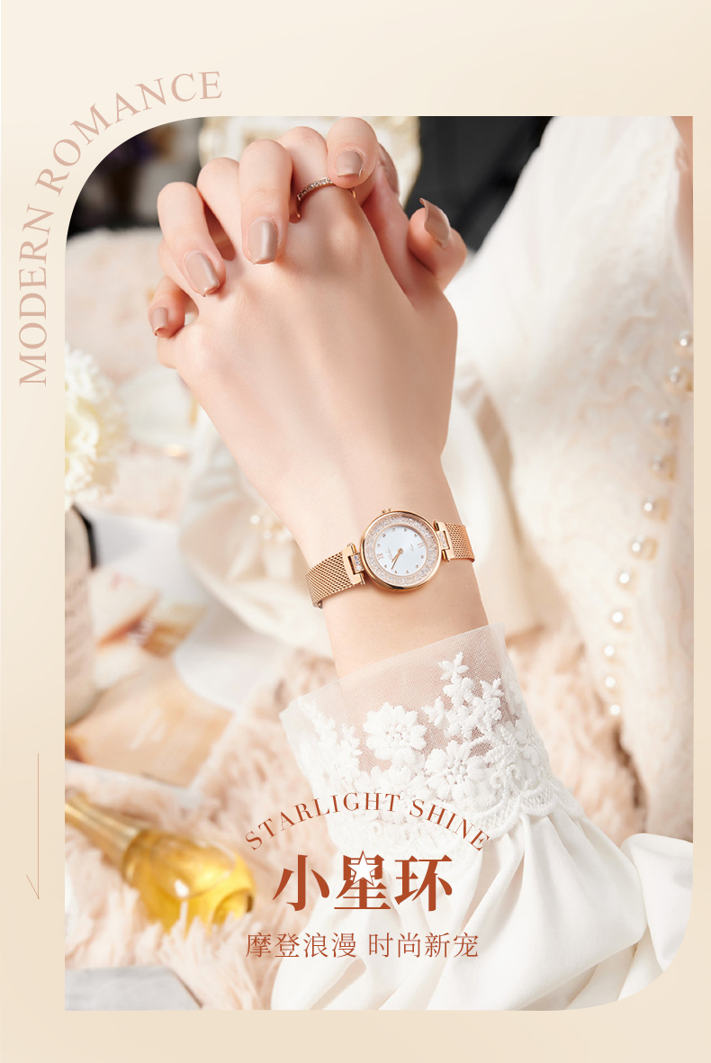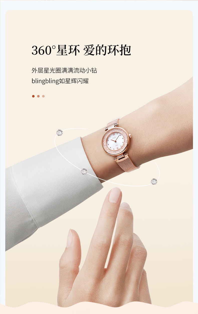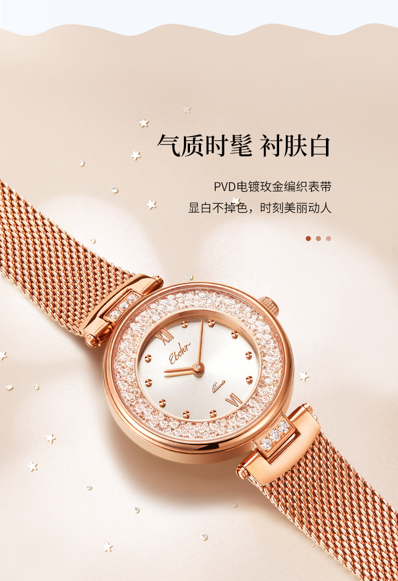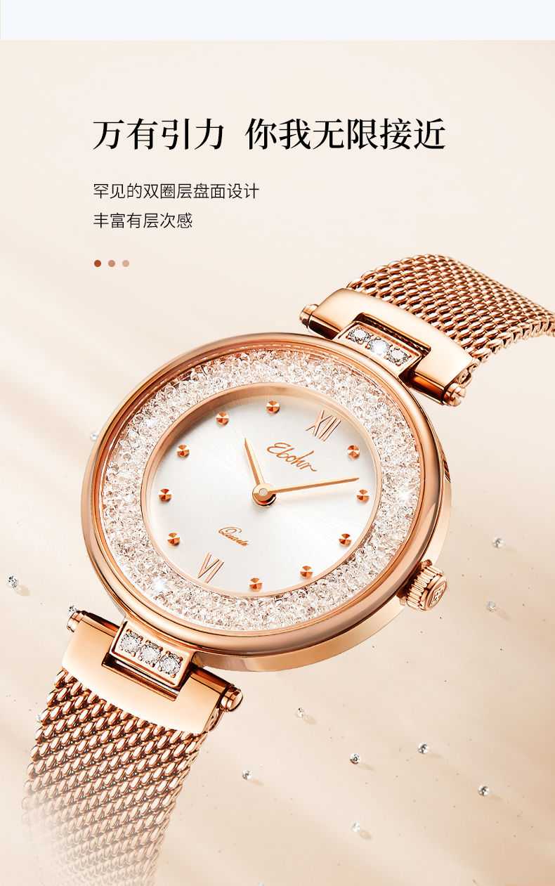 依波(EBOHR)卡纳系列时尚女表石英表小星环防水表女5155