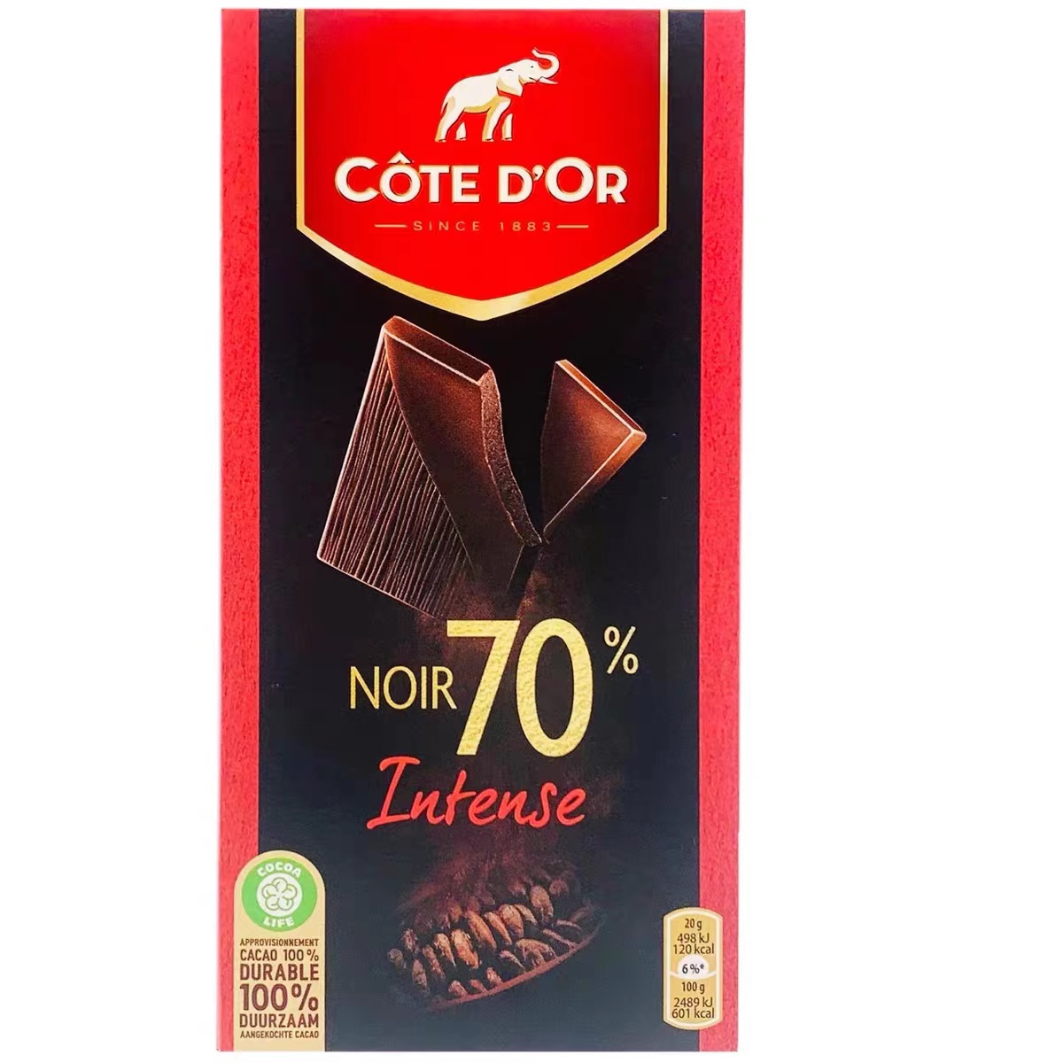 克特多金象70%可可黑巧克力排装100g
